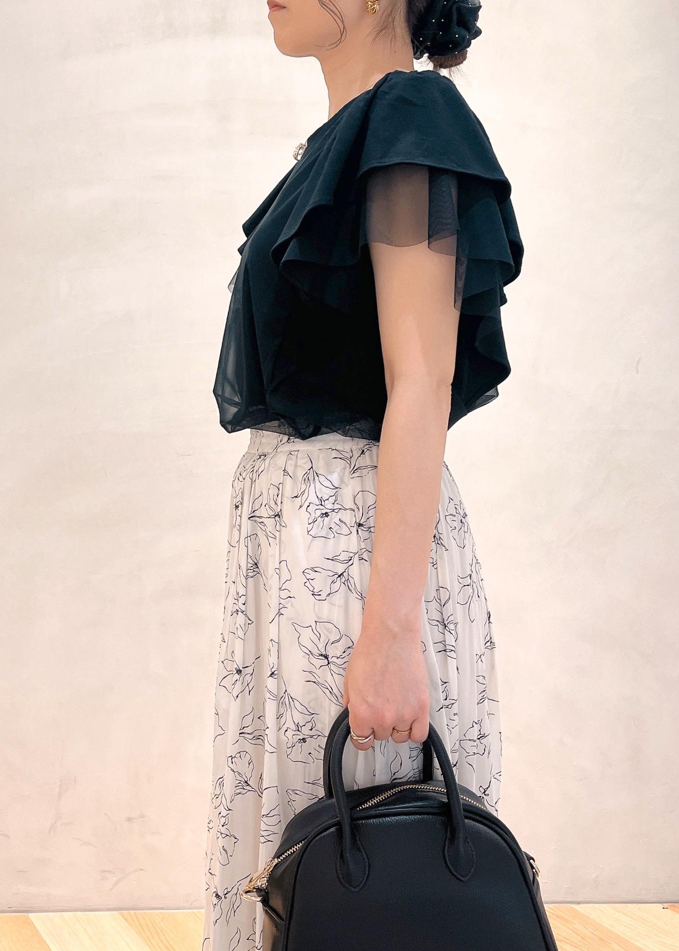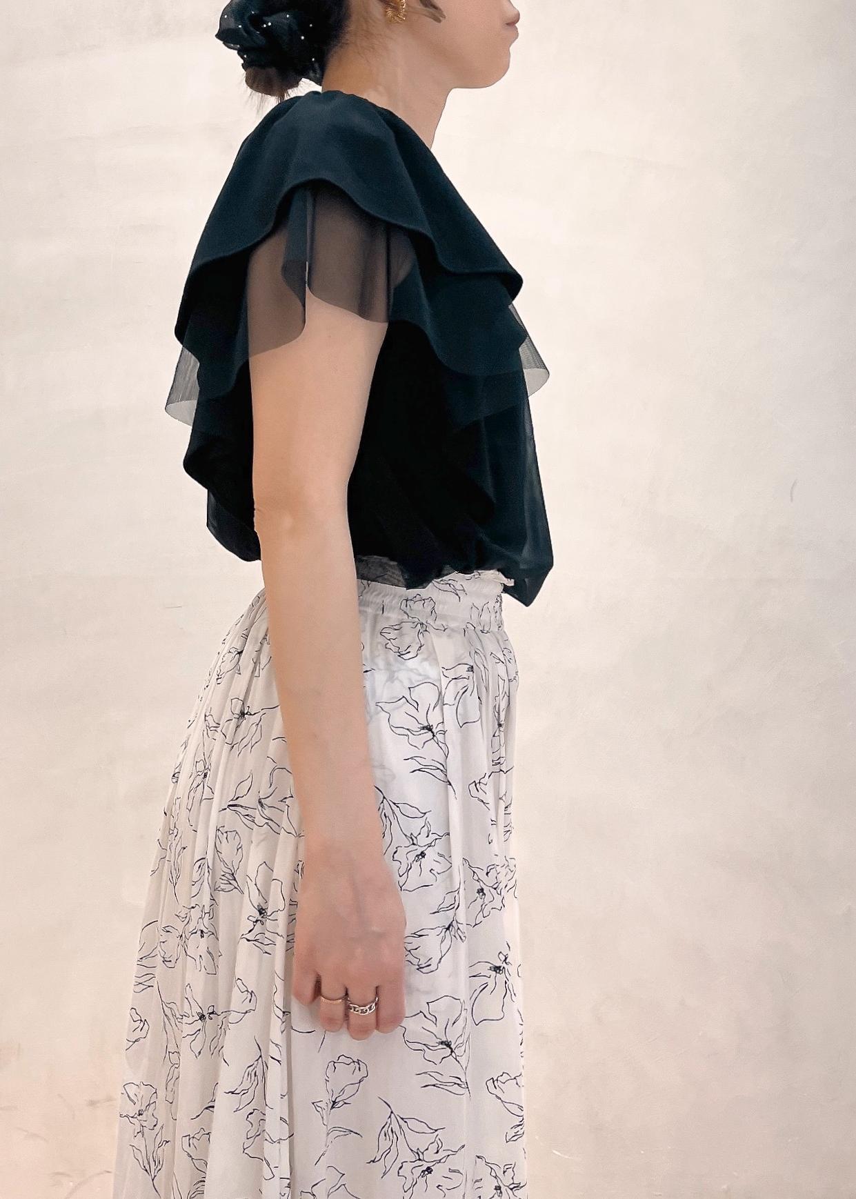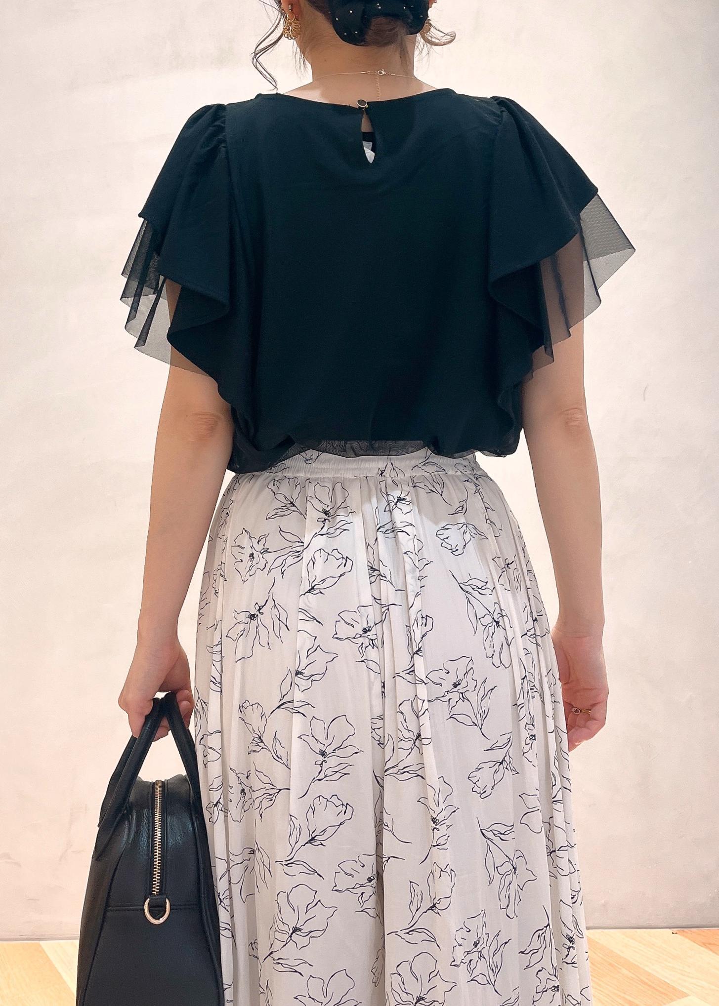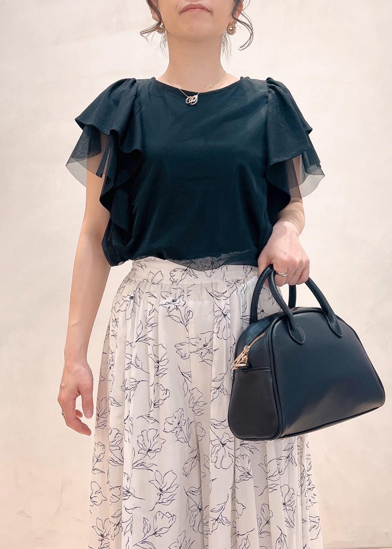 フリルは気になる二の腕をカバーをしてくれて、デコルテがきれいに見えて抜け感のある浅めなVネックがこだわり。