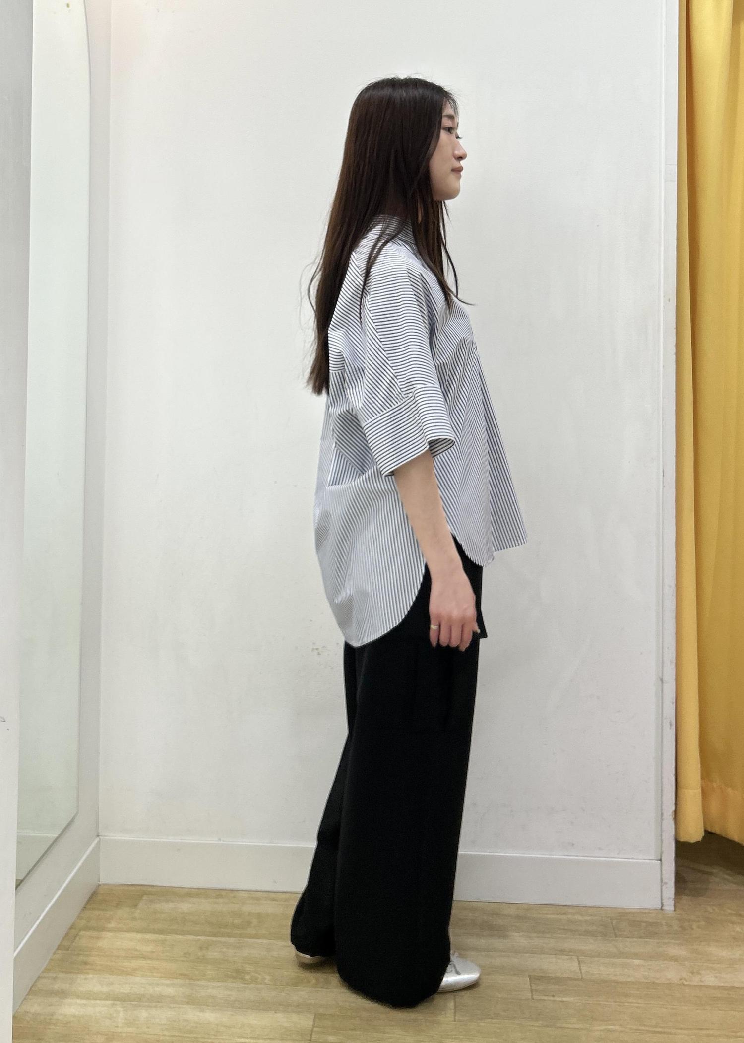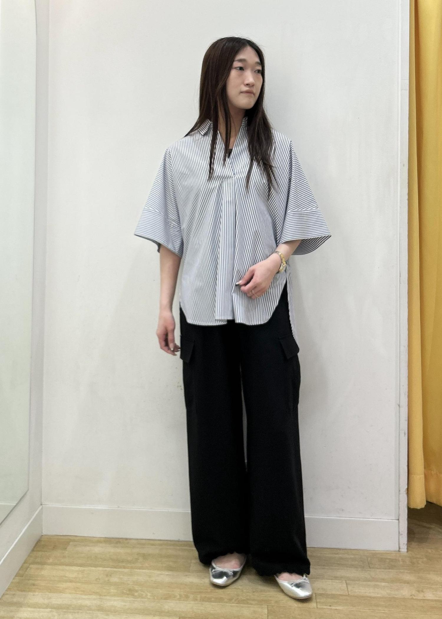 着丈はヒップが隠れる長さでサラッと涼しい生地感です。