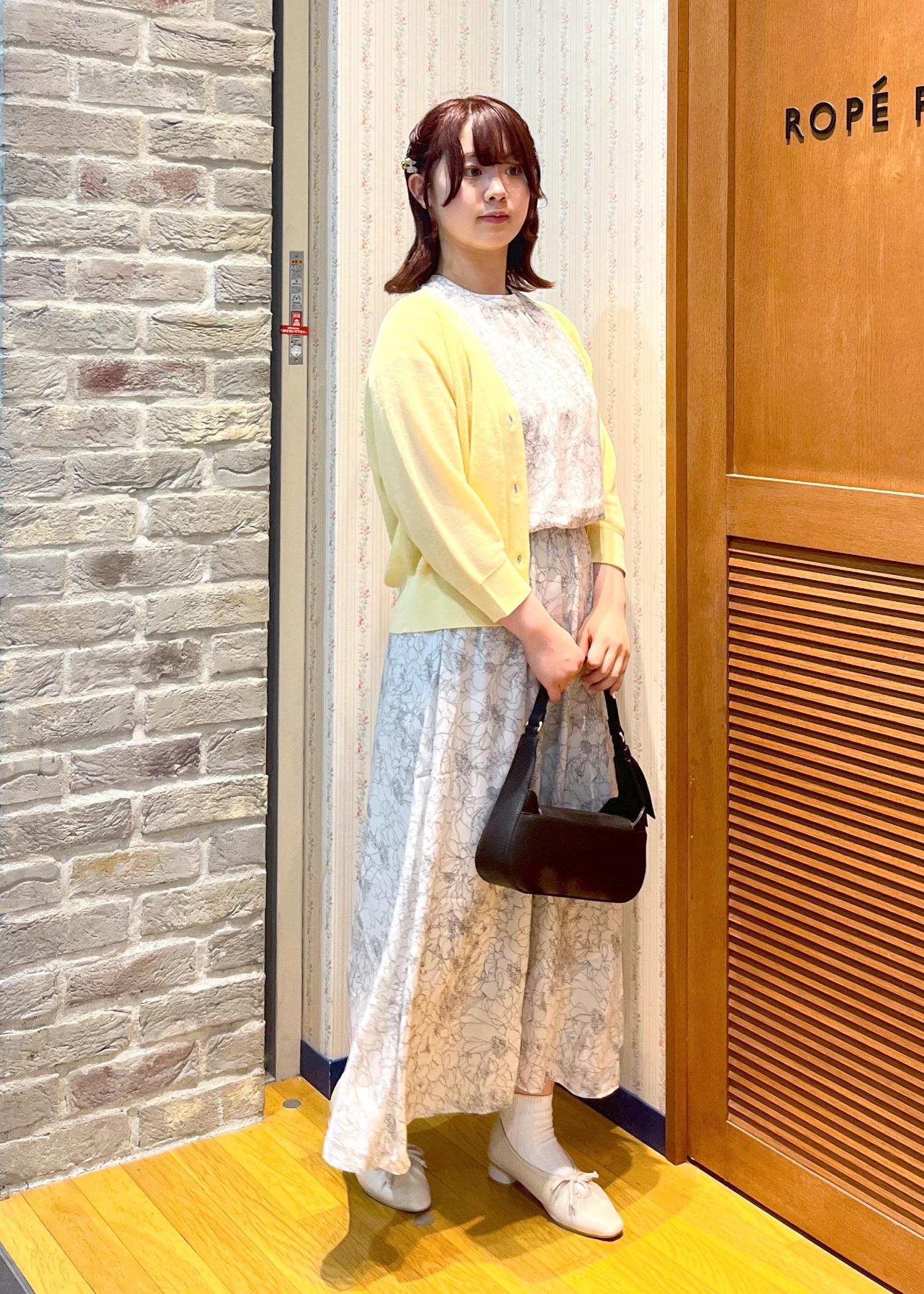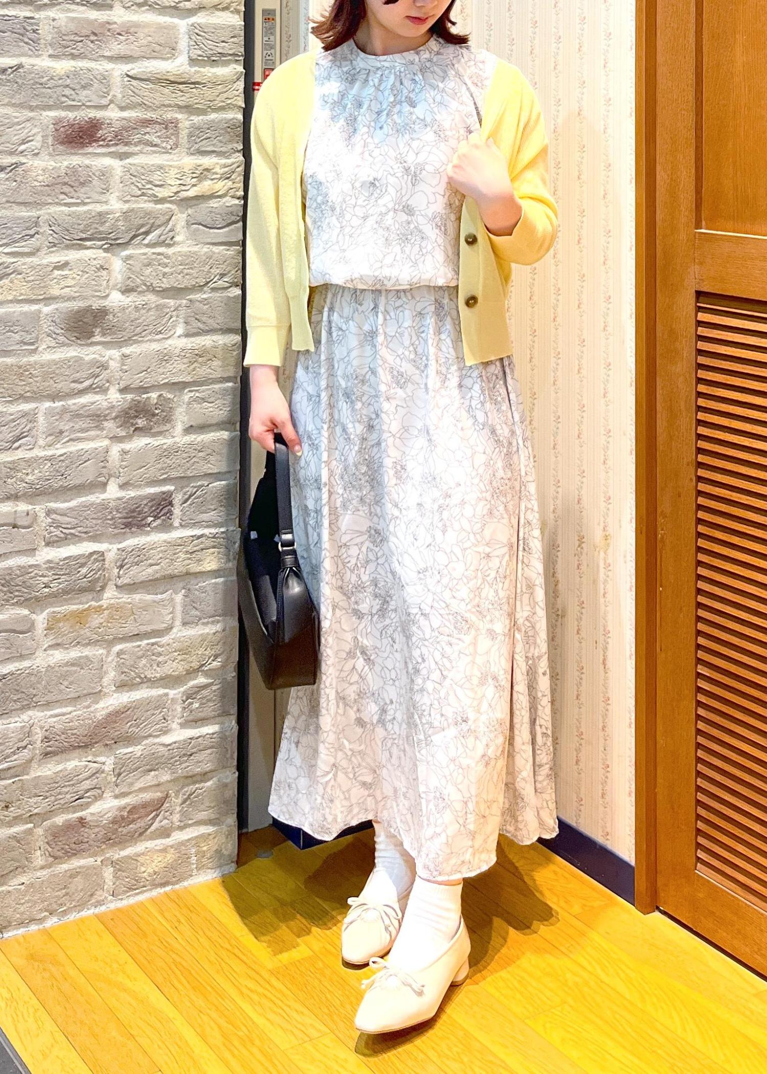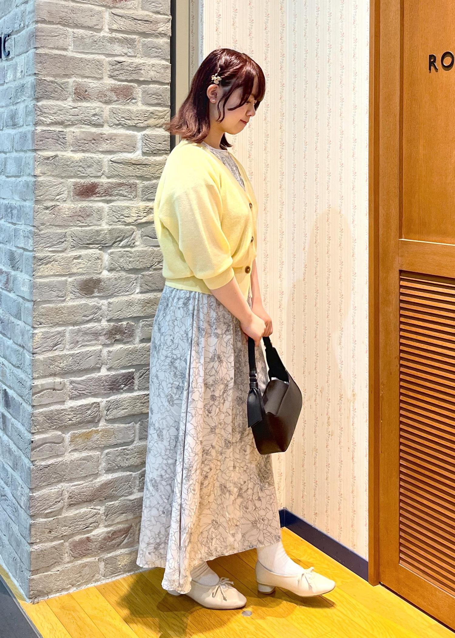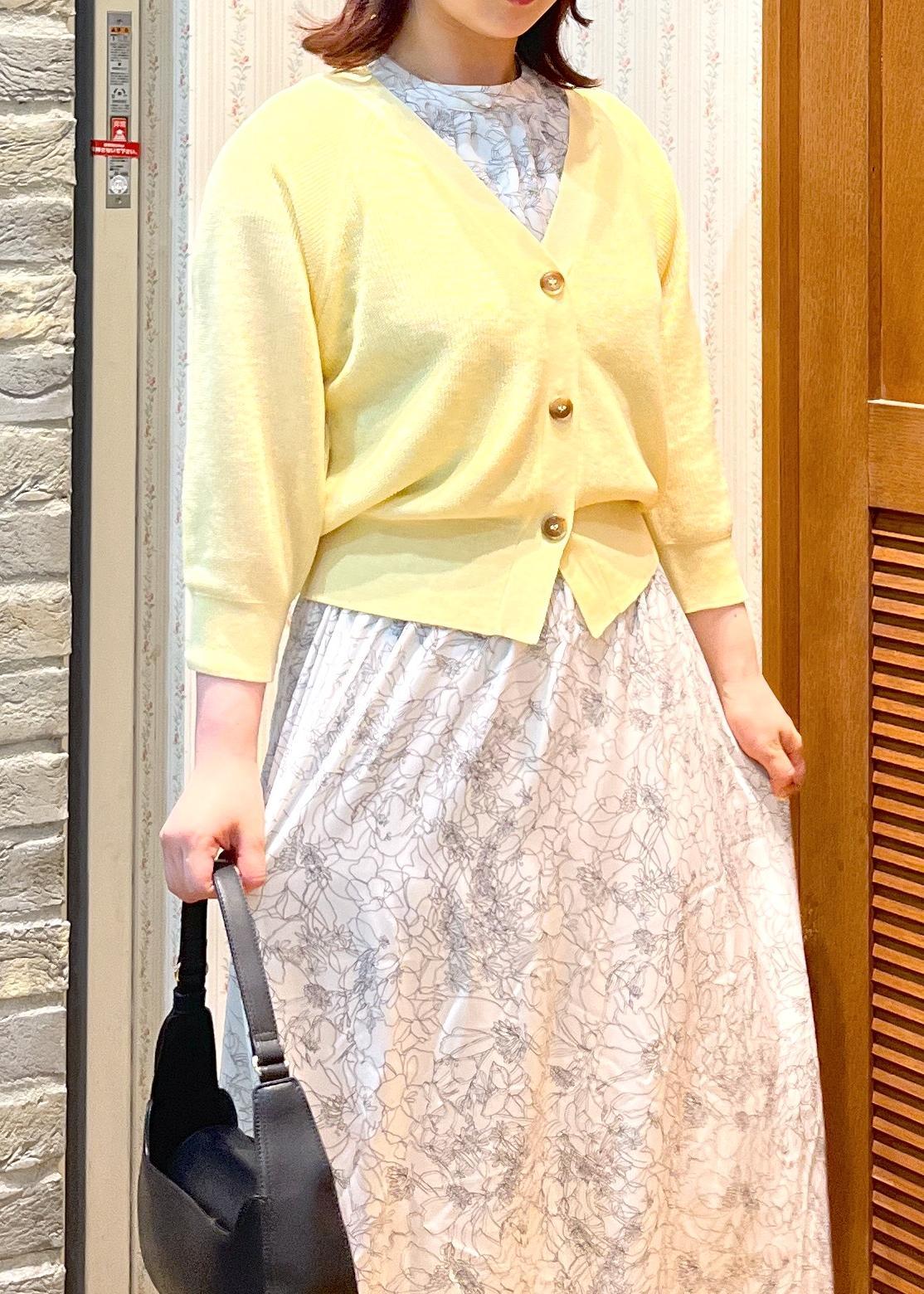 カーディガンを羽織ってかわいく二の腕をカバーしてます◎
