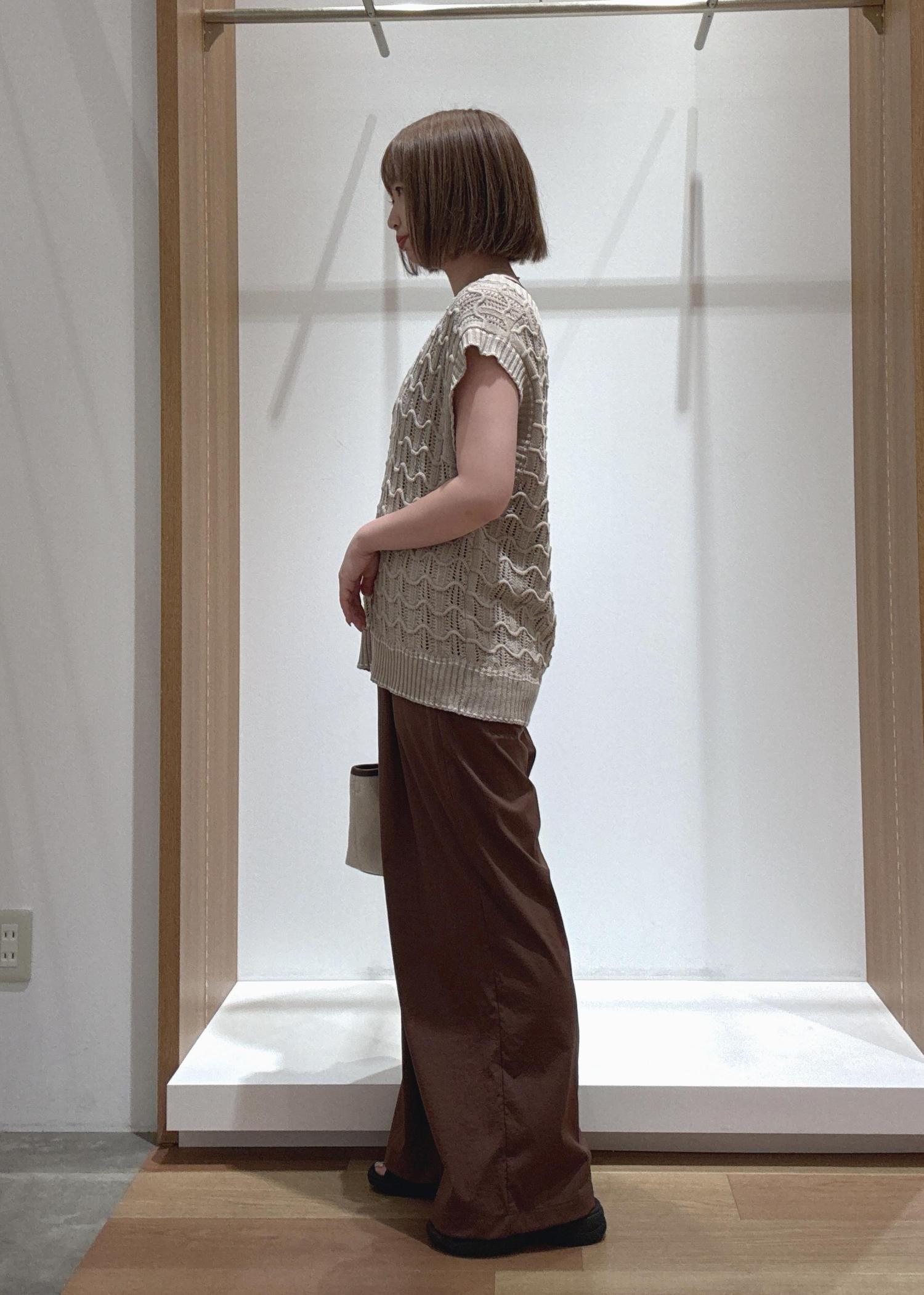 トップスはゆったりめで二の腕もすっぽり隠れるので、暑い時期はキャミソールやタンクトップなどのインナーに1枚で着るのがおすすめです。