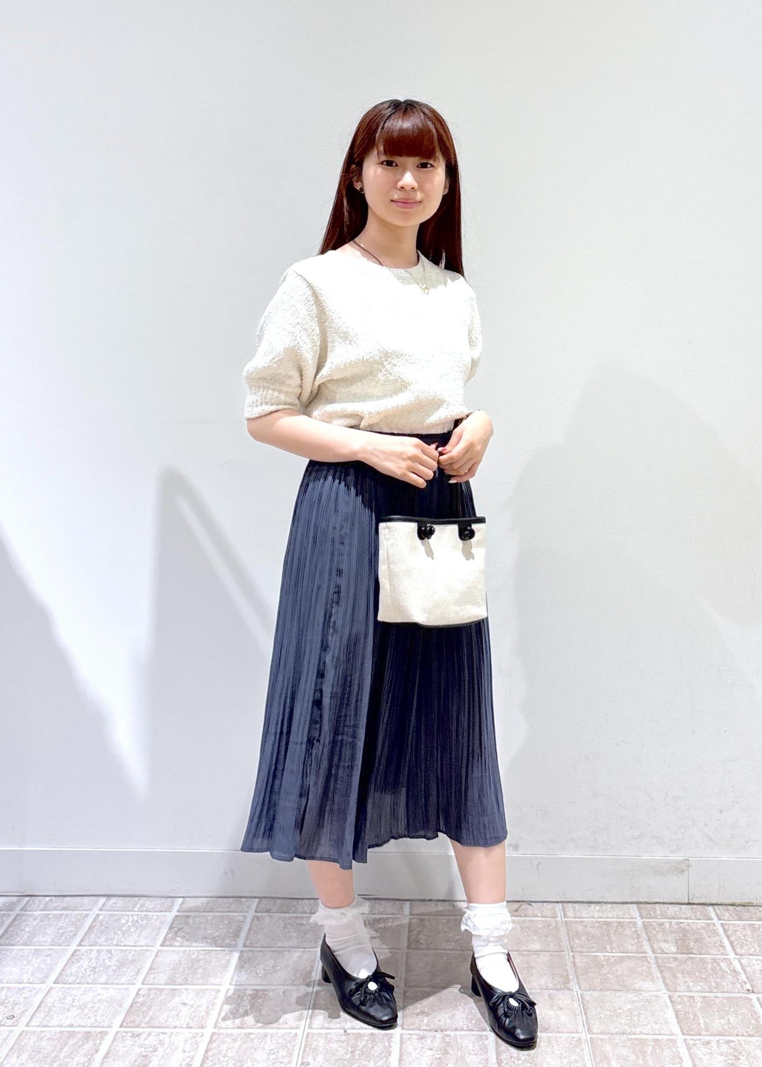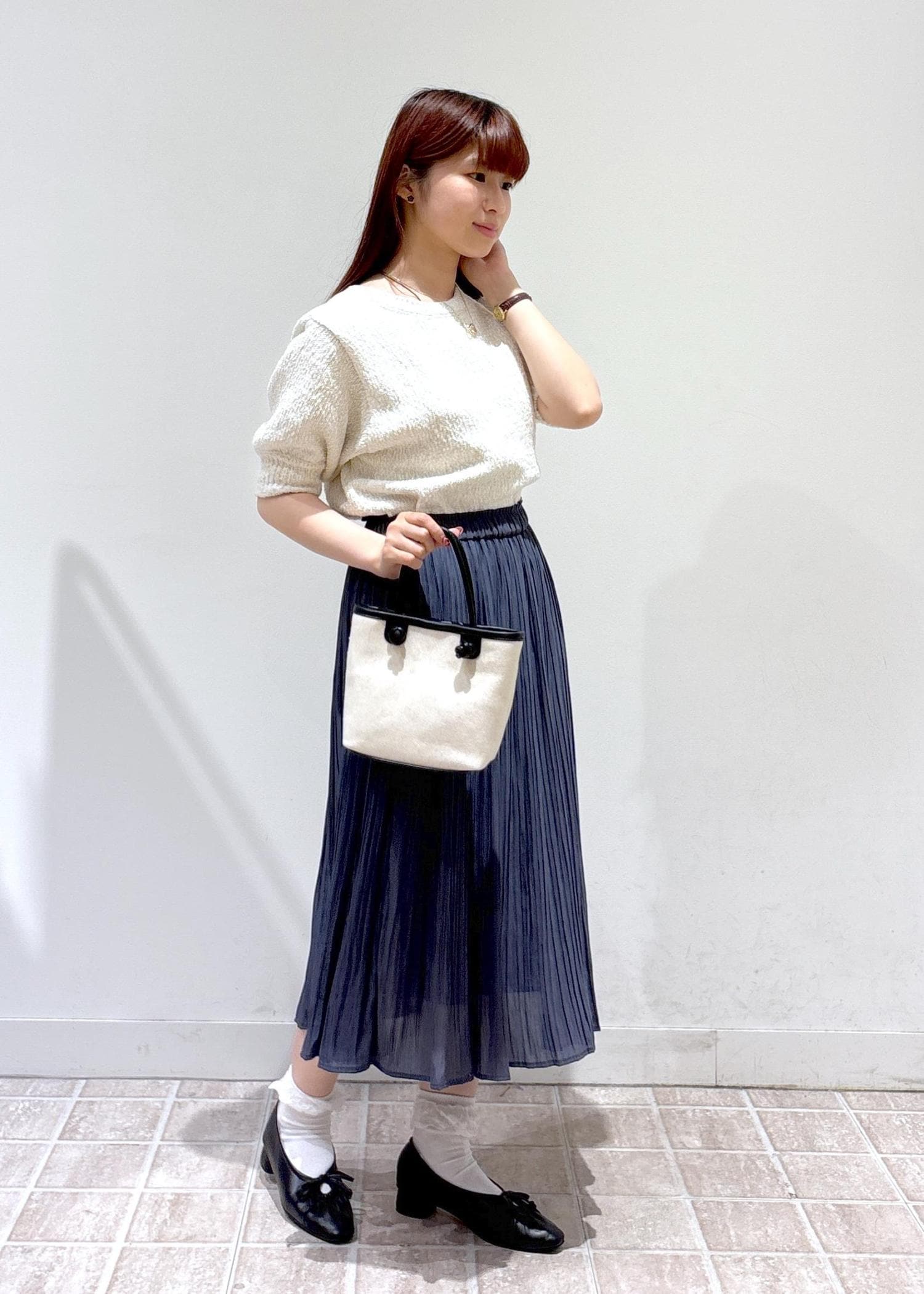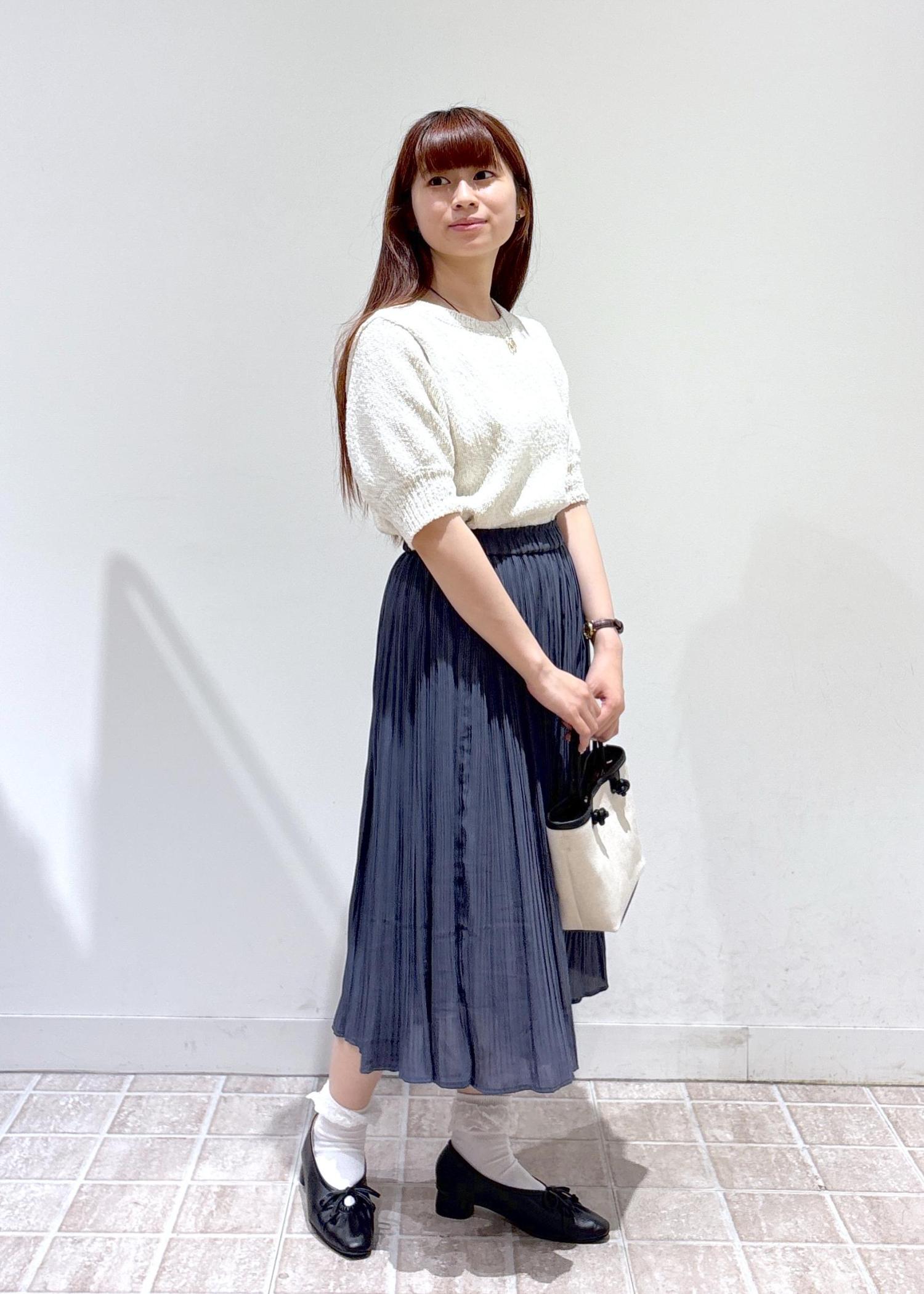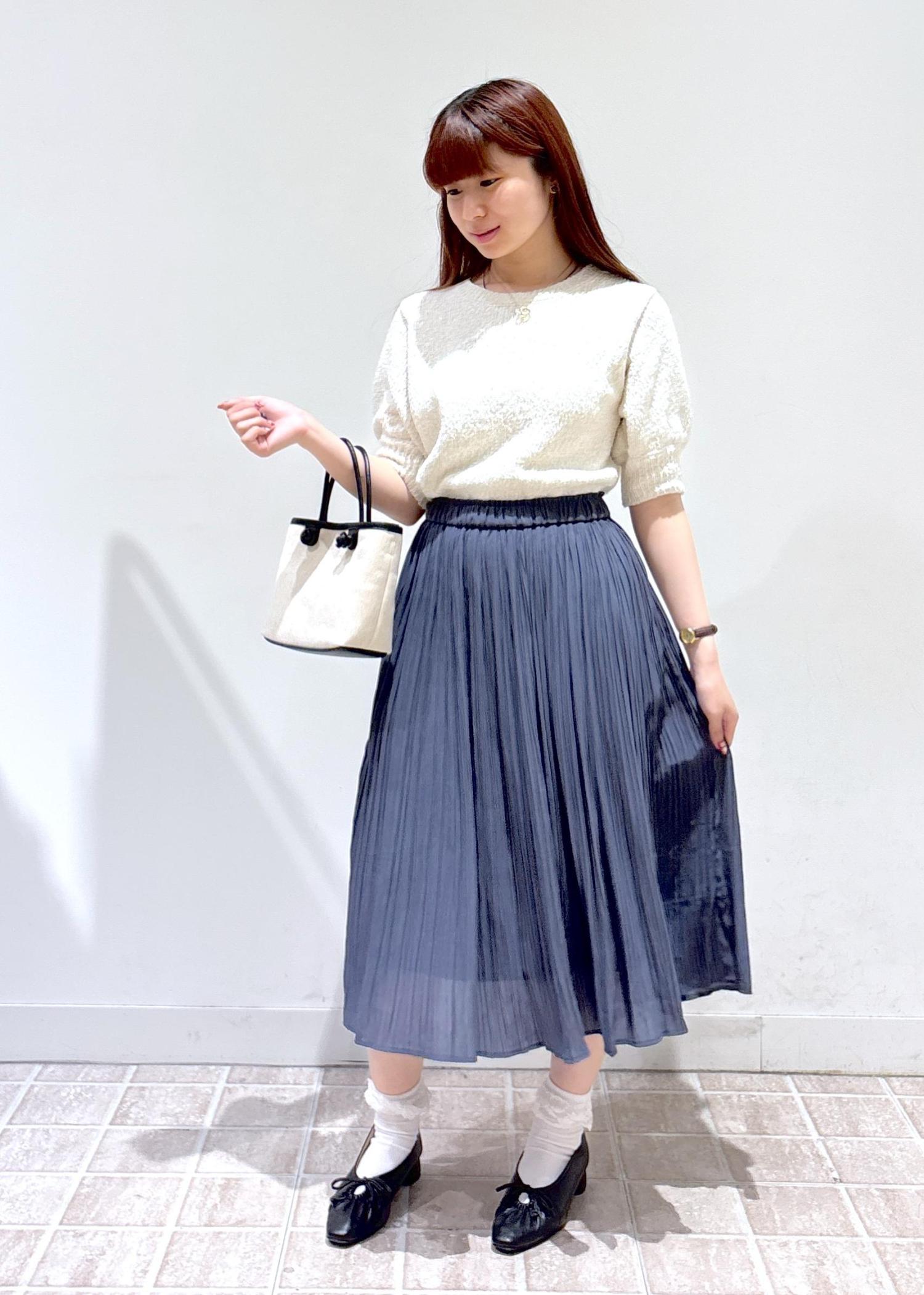 トップスがシンプルなのでプリーツスカートでキレイめ感をたくさん出しました。色もホワイトとブルーのコーデで夏らしさをだした爽やかなコーデです。