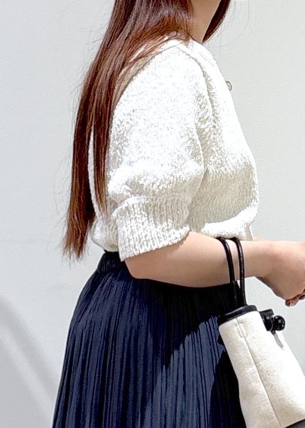 程よくラメ感が入っているので1枚でも着映えするアイテムです。袖は二の腕が隠れる長さなので二の腕気になる方にはオススメです。