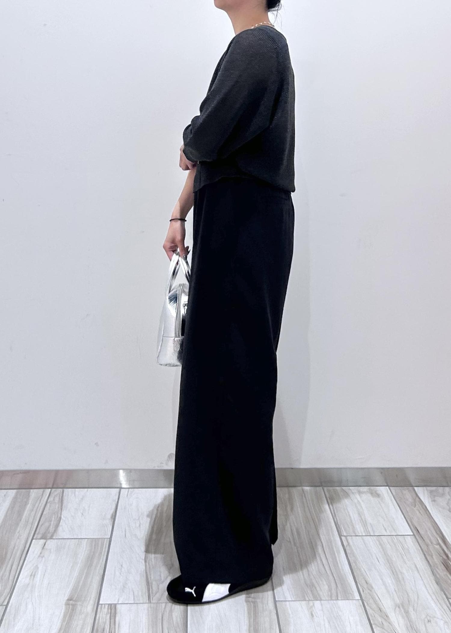 丈はお尻に乗っかるくらいの長さ。横にゆったりめのシルエットが短くても美シルエットです!