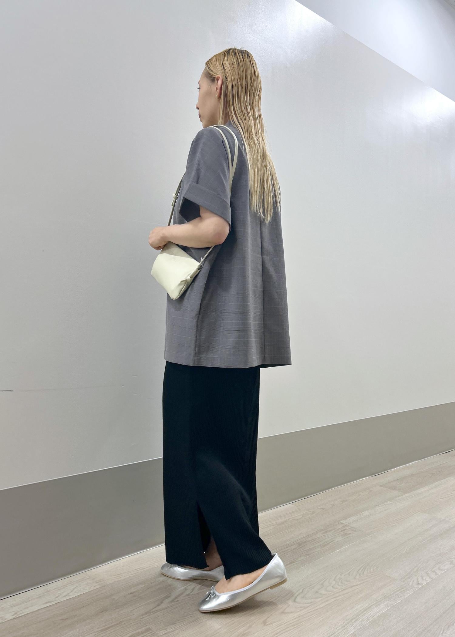 154㎝で着丈はヒップ隠れるくらい、袖丈は肘に掛かるくらいです。 -