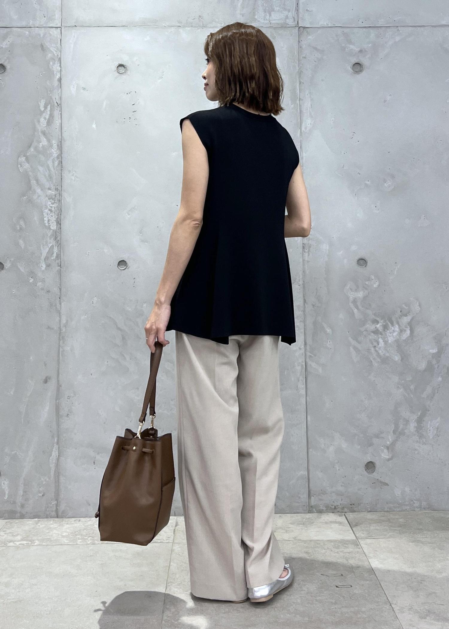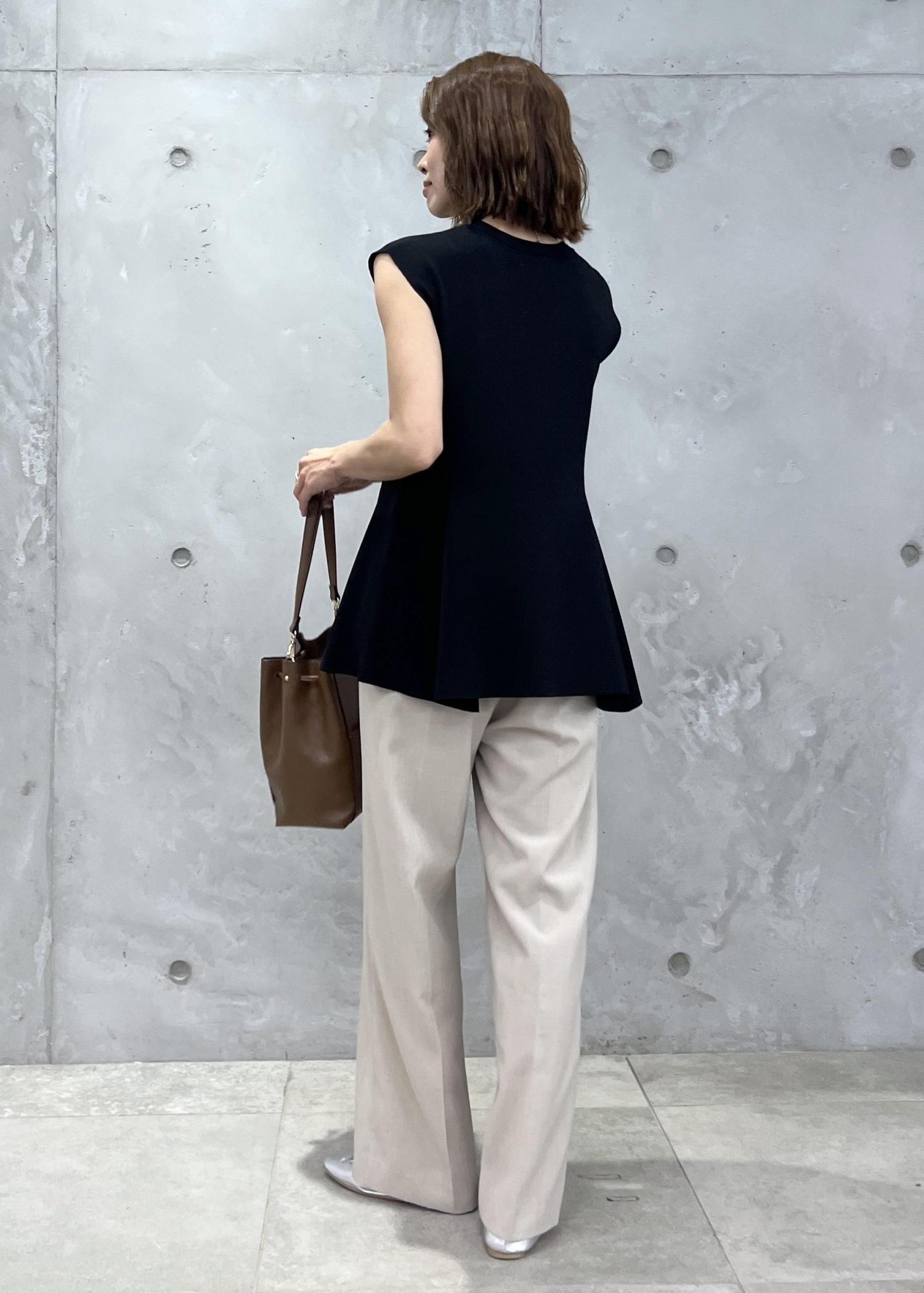 柔らかくしなやかなサマーニットは、今季トレンドのぺプラムシルエットがポイント。