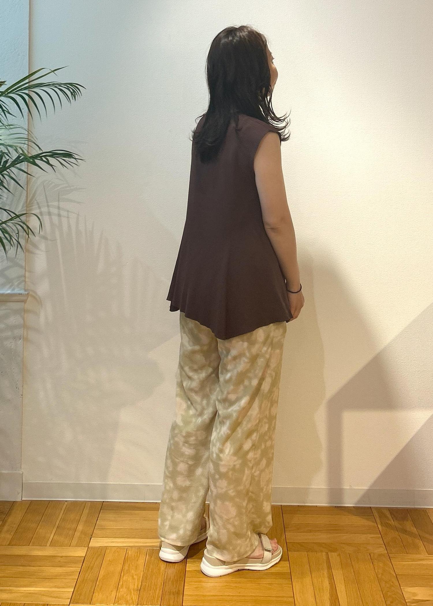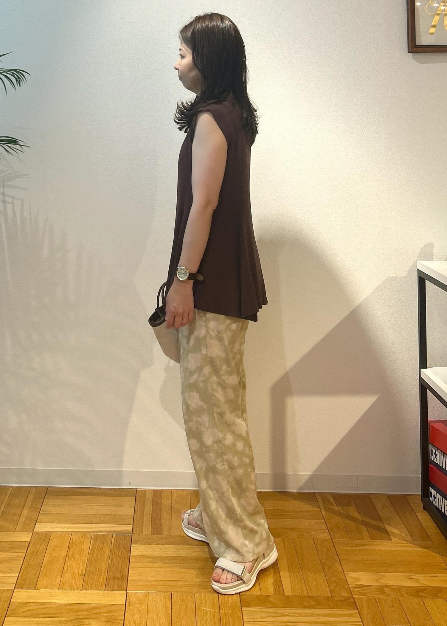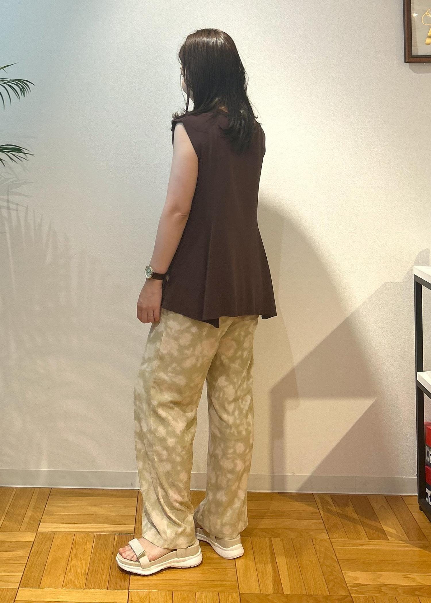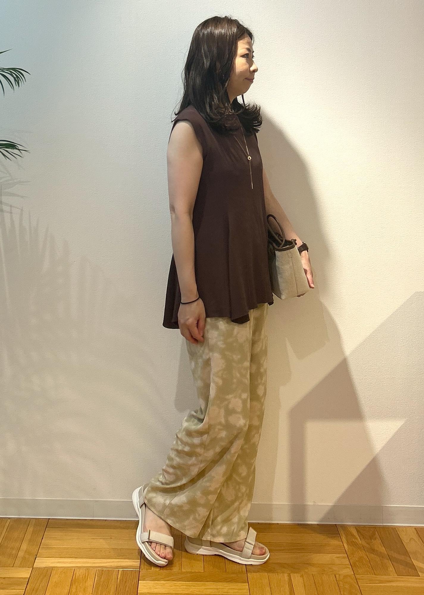 このアイテムを着て、常夏の場所へ行きたいなと思いながらコーディネートしてみました。落ち着きのあるカラーでまとめましたが、心はウキウキな気分。