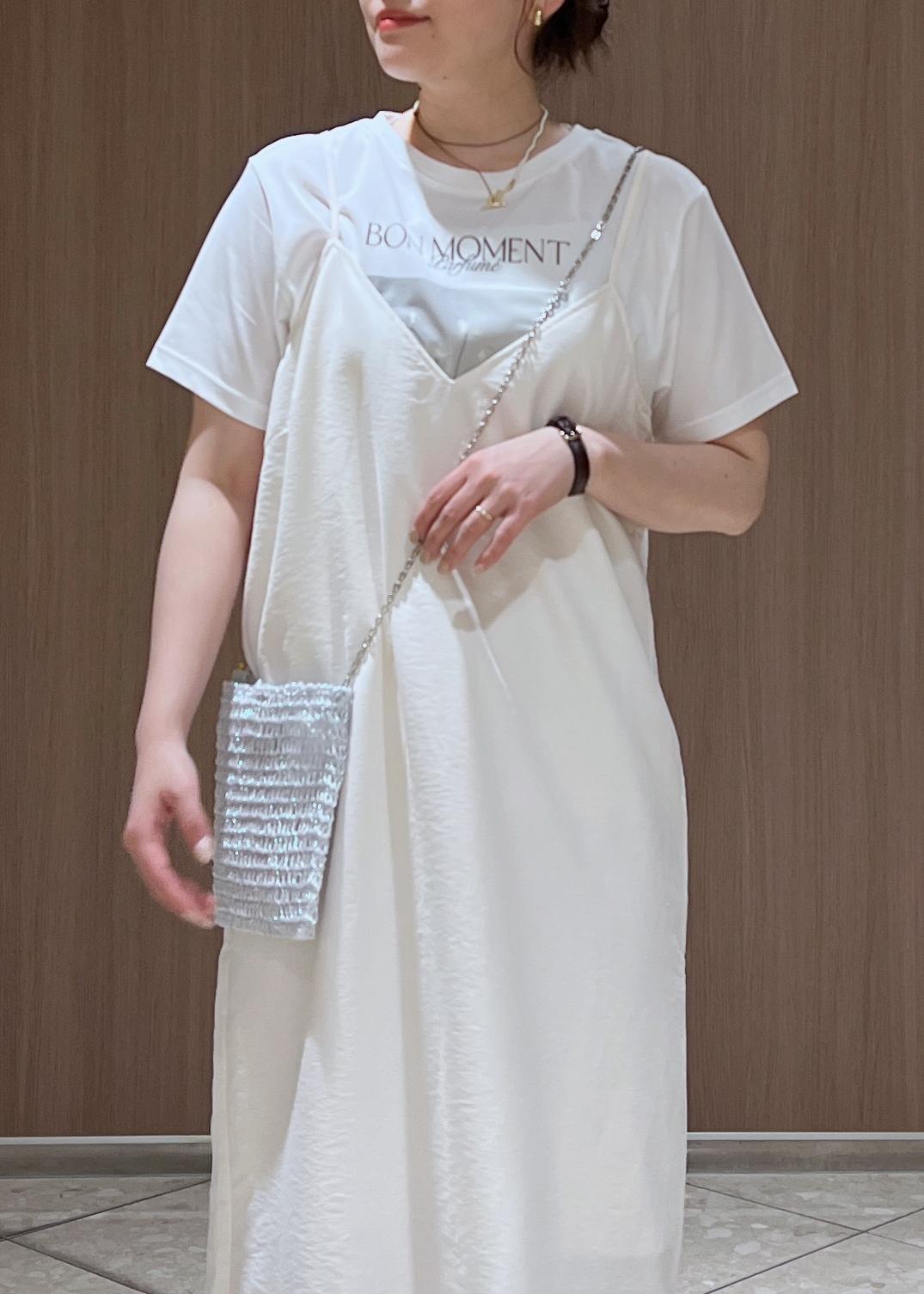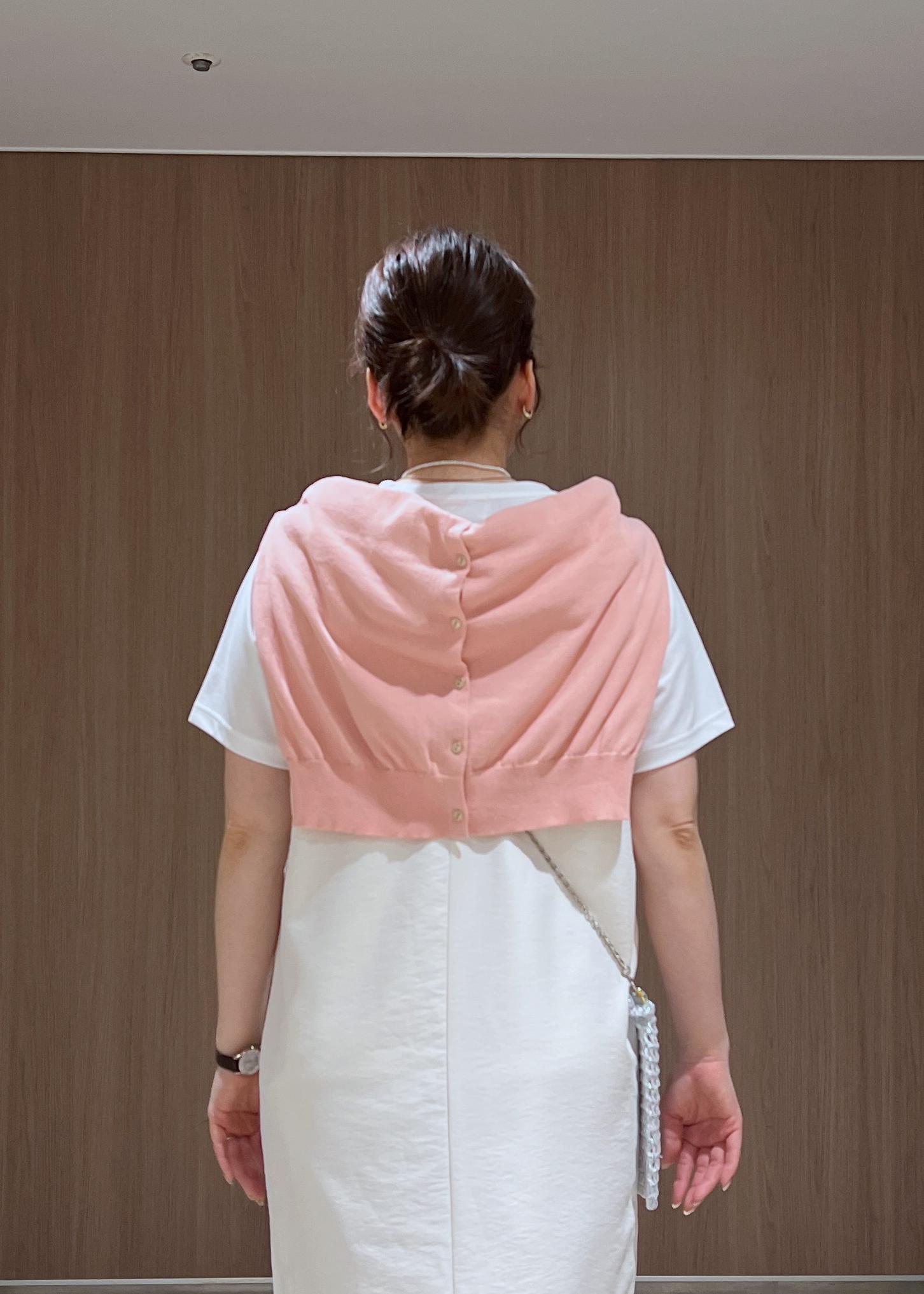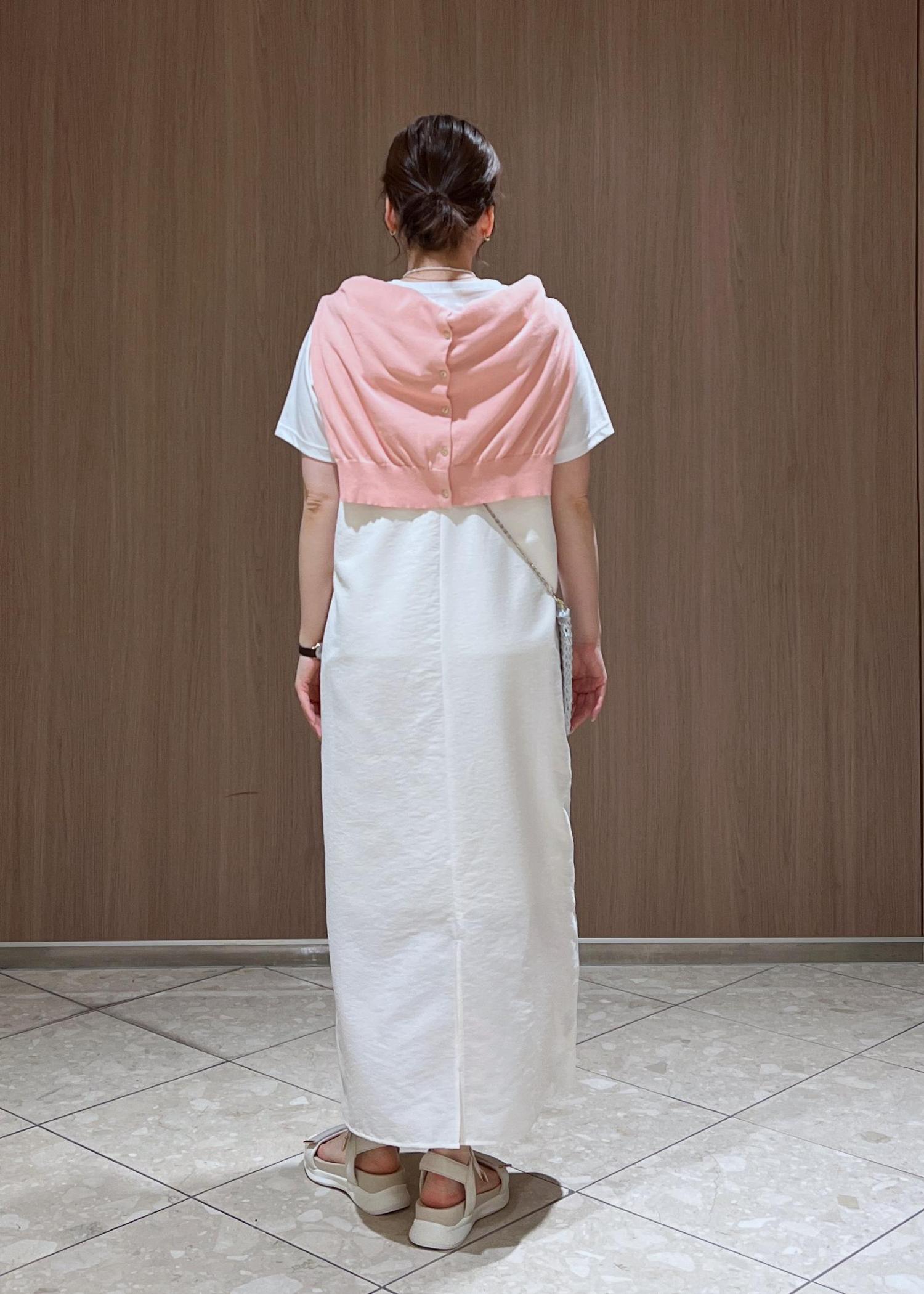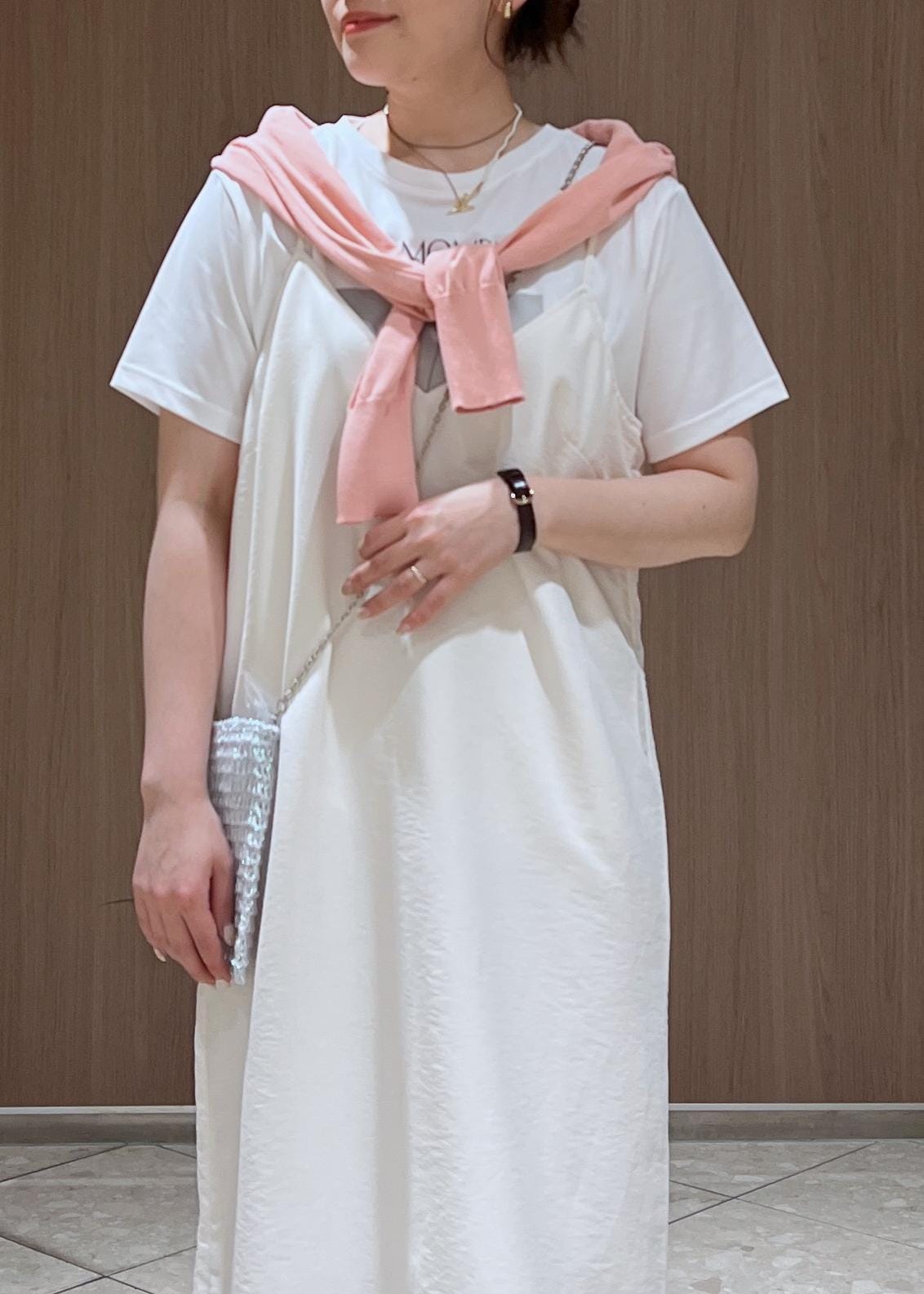 着用しているキャミワンピース、トップス、カーディガンどれとは機能性素材で涼しく着られる夏に嬉しいアイテムです!