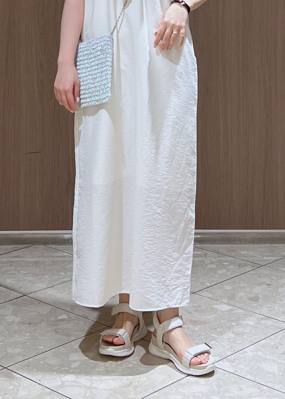 素材感:合皮素材でゴールドのパーツもポイントになるので、スニーカーサンダルでも女性らしく着用で着るデザインです。
