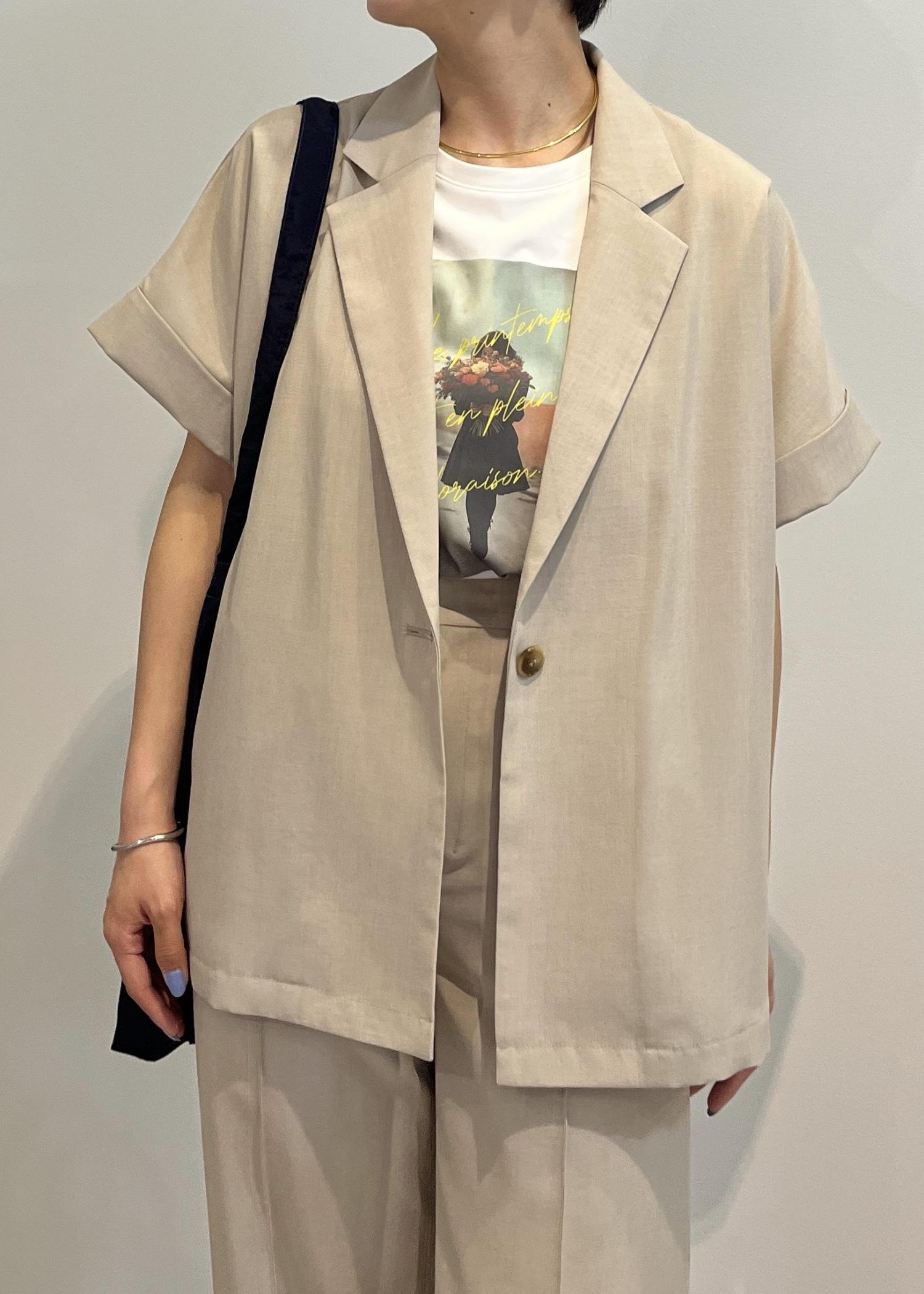 中にTシャツを合わせましたが、袖口から見えることが無かったので、オーバーなTシャツ以外は袖口を折る一手間無く、ジャケットを羽織って頂けると思います! -