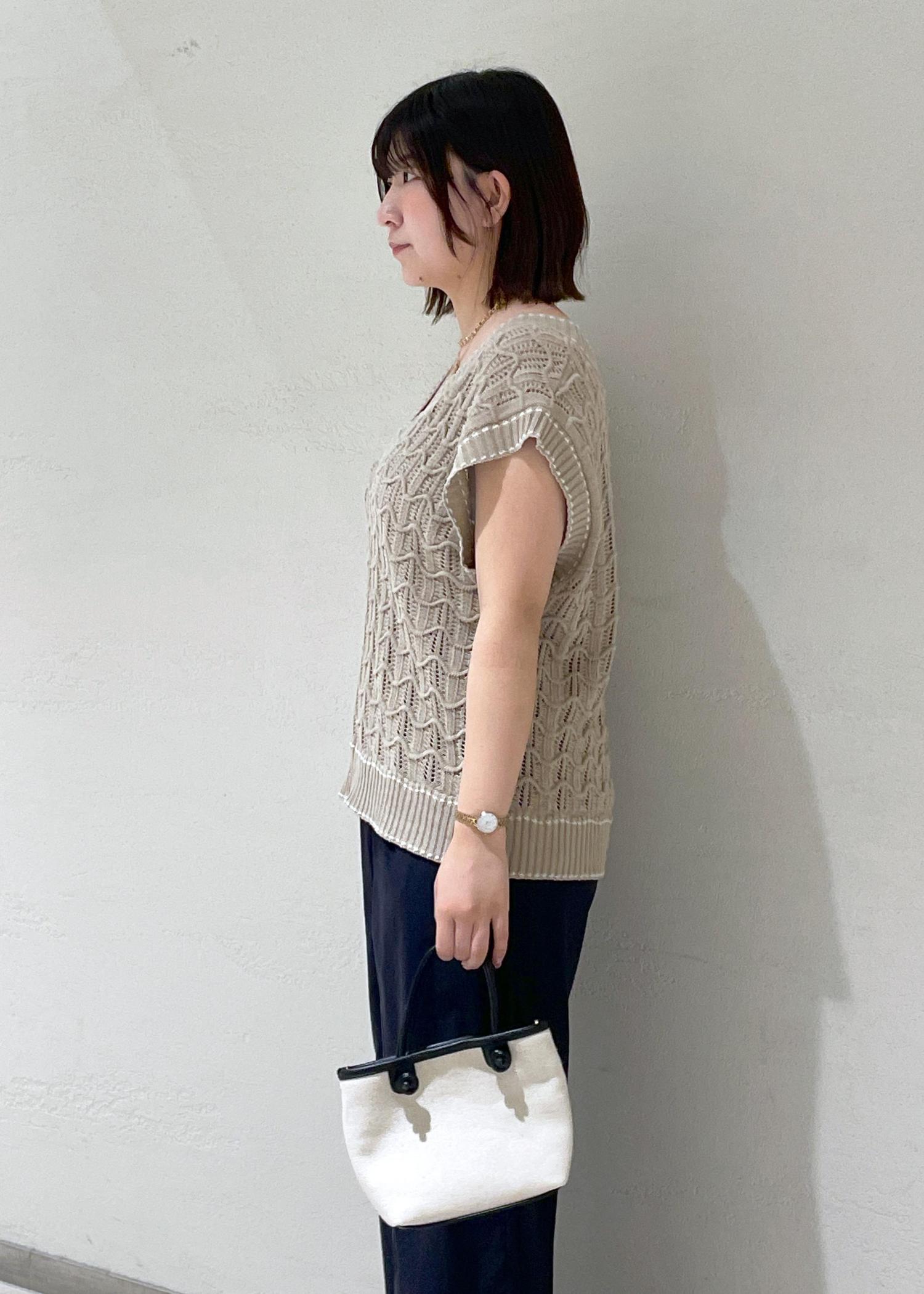 ROPÉ PICNIC配色ステッチ透かし編みニットベストベージュ / 38¥4,389レビューゆったり着れて腰周りもカバーしてくれます!