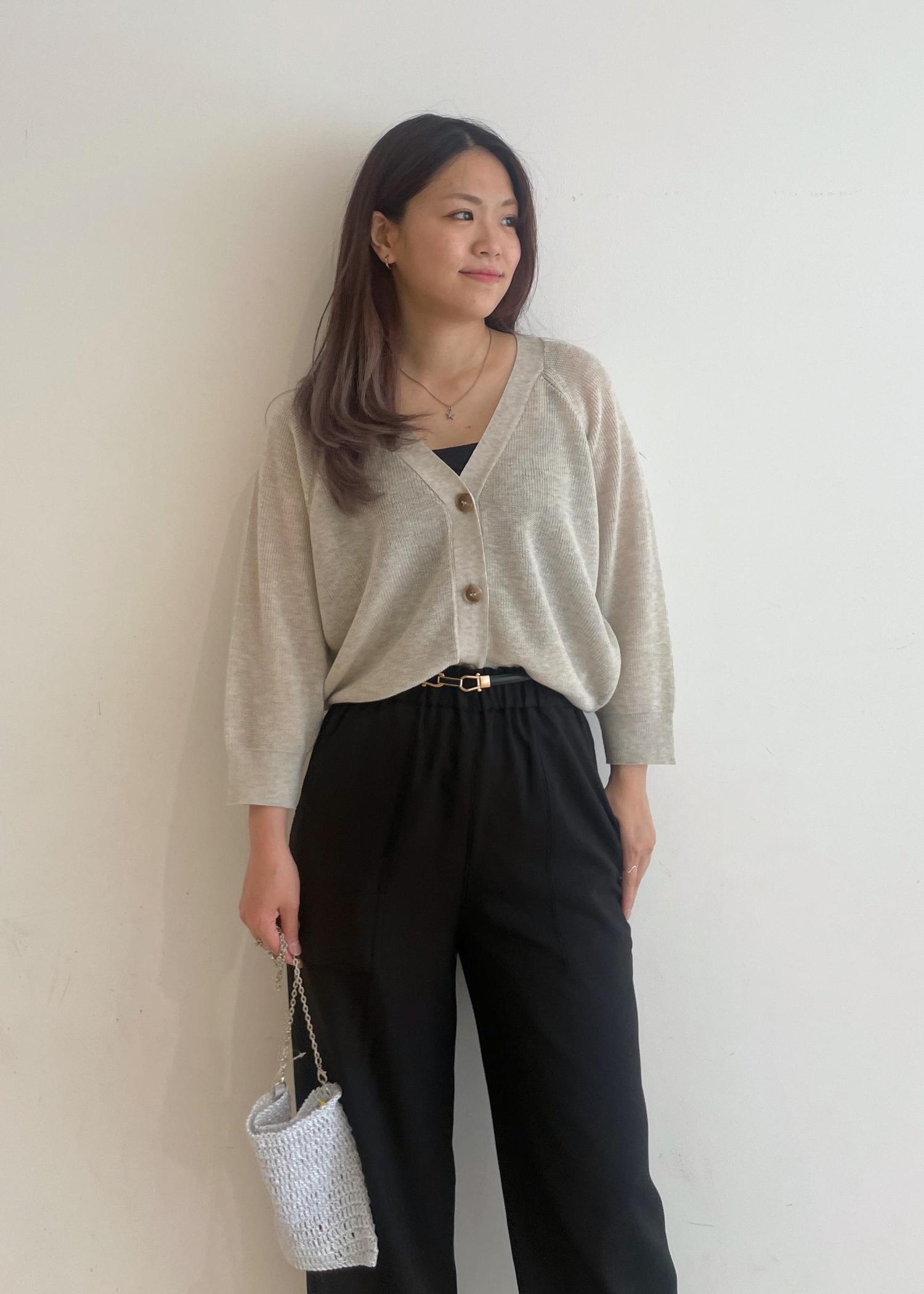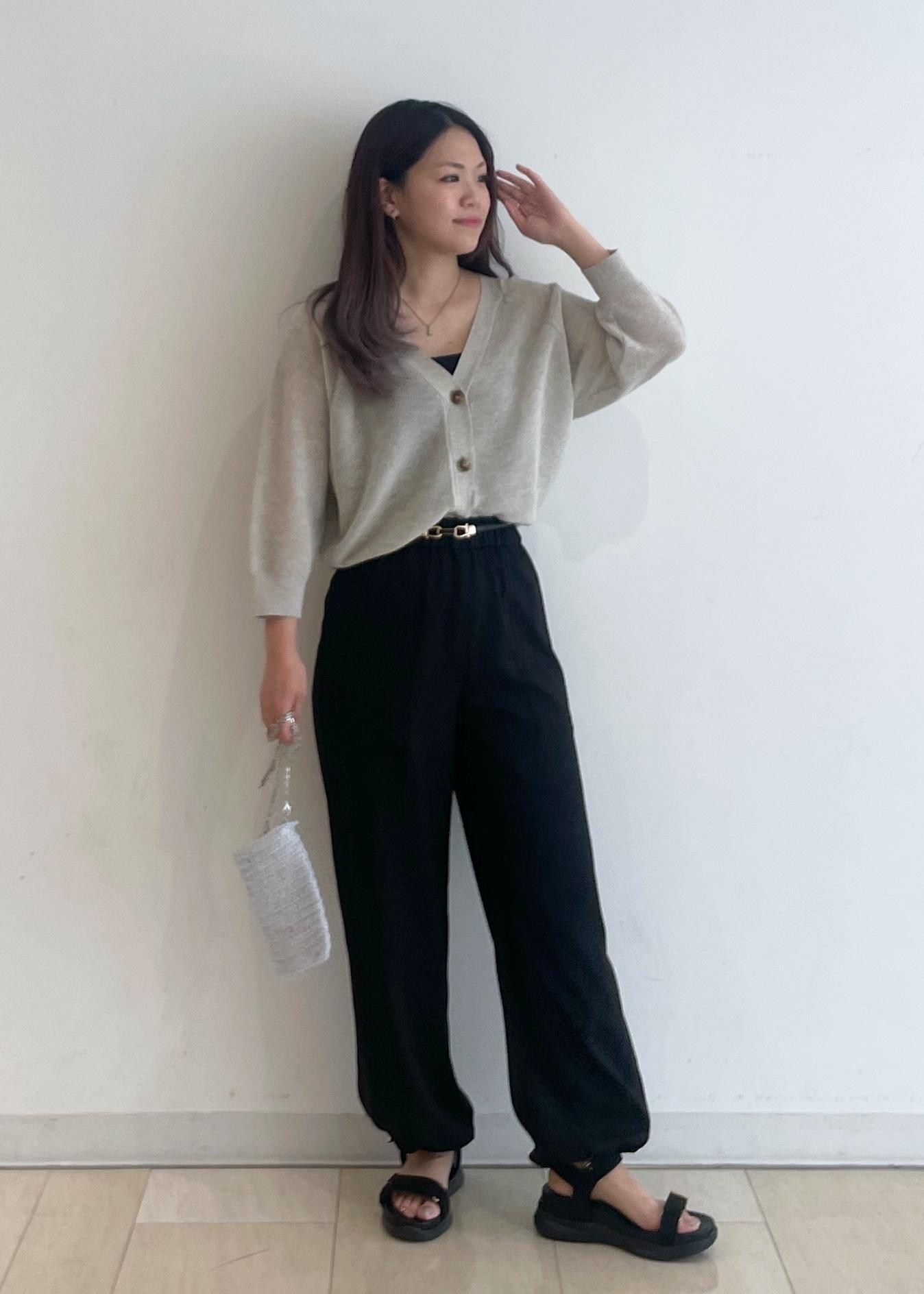 シンプルなカーディガンとイージーパンツを合わせたコーディネートです!