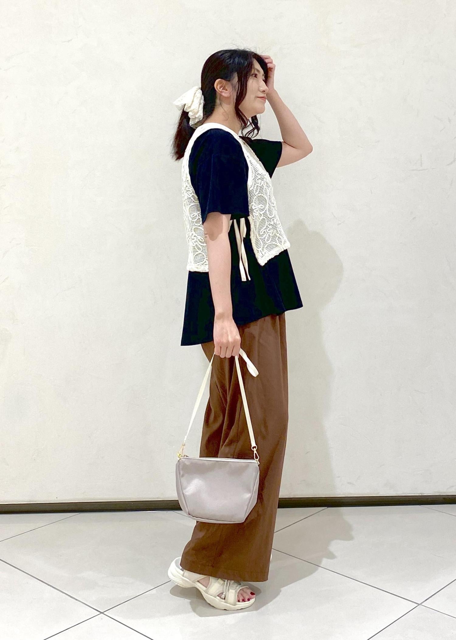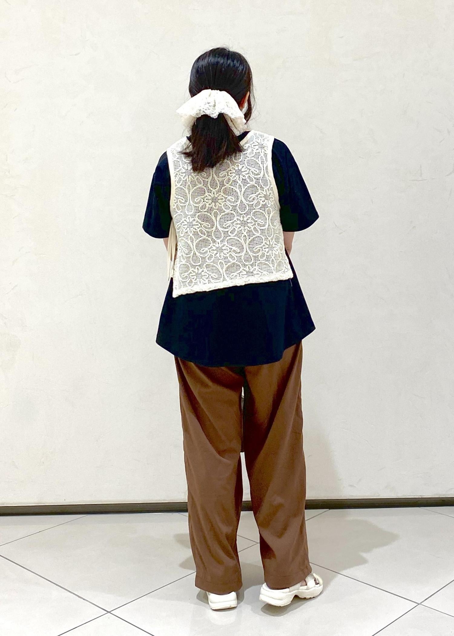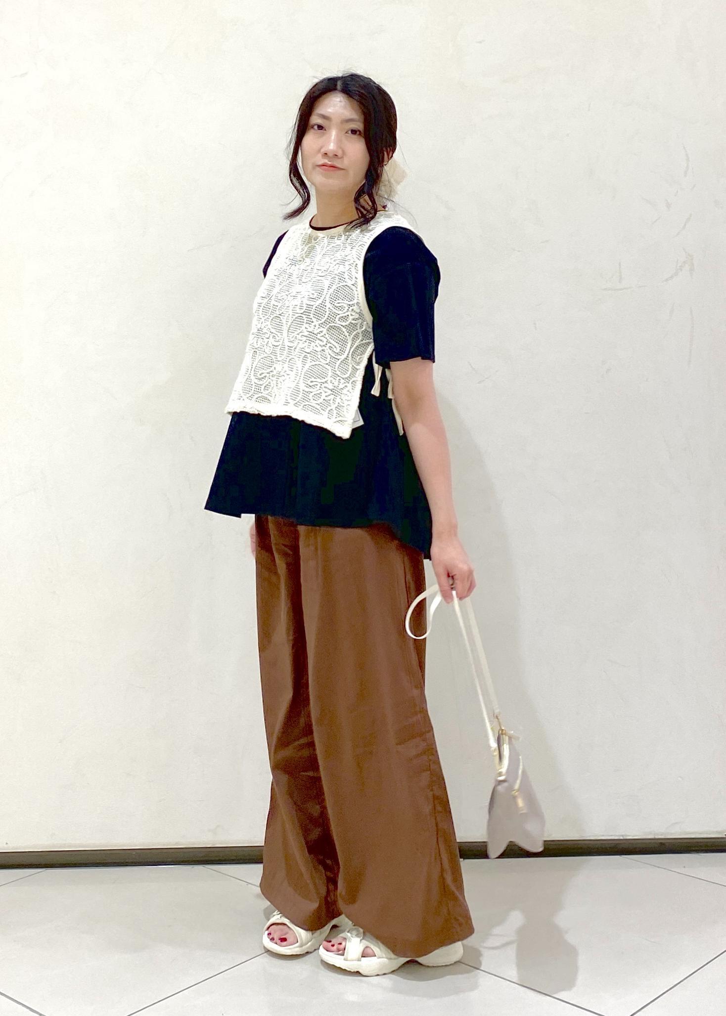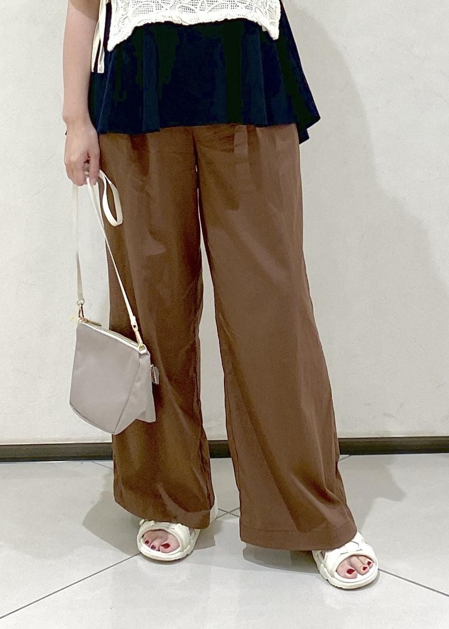 カラーは濃いめですが、接触冷感機能アイテムと肌離れする履きやすいワイドパンツでとにかく涼しく着られます♪