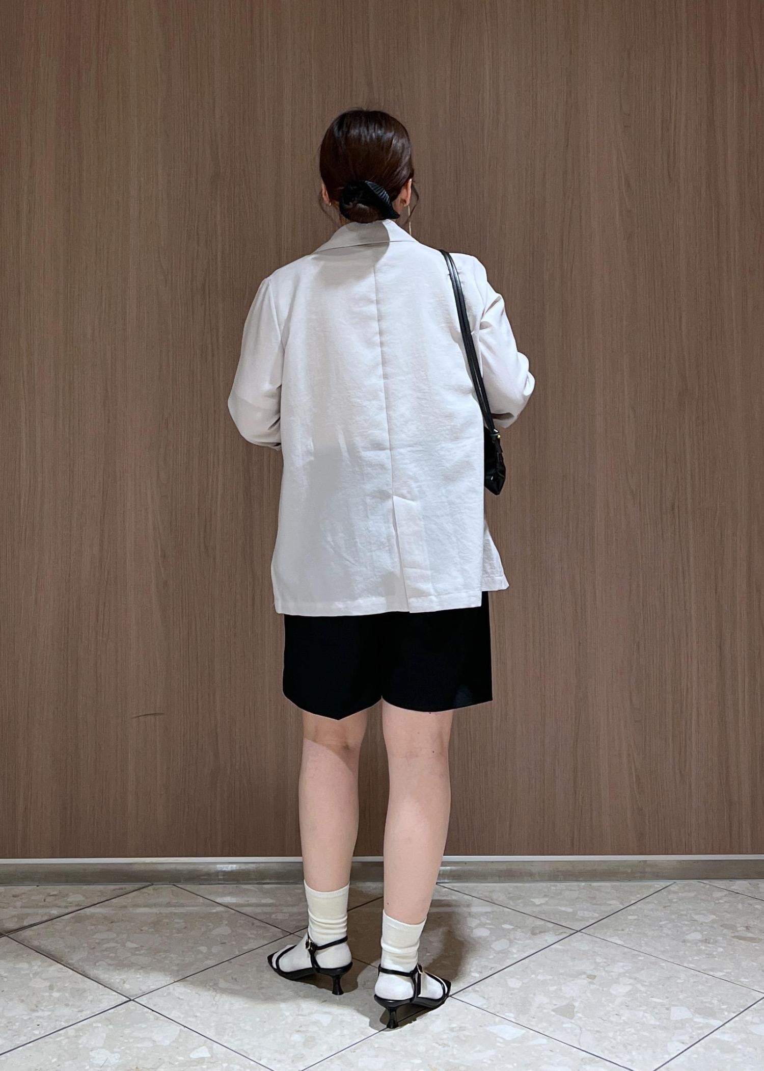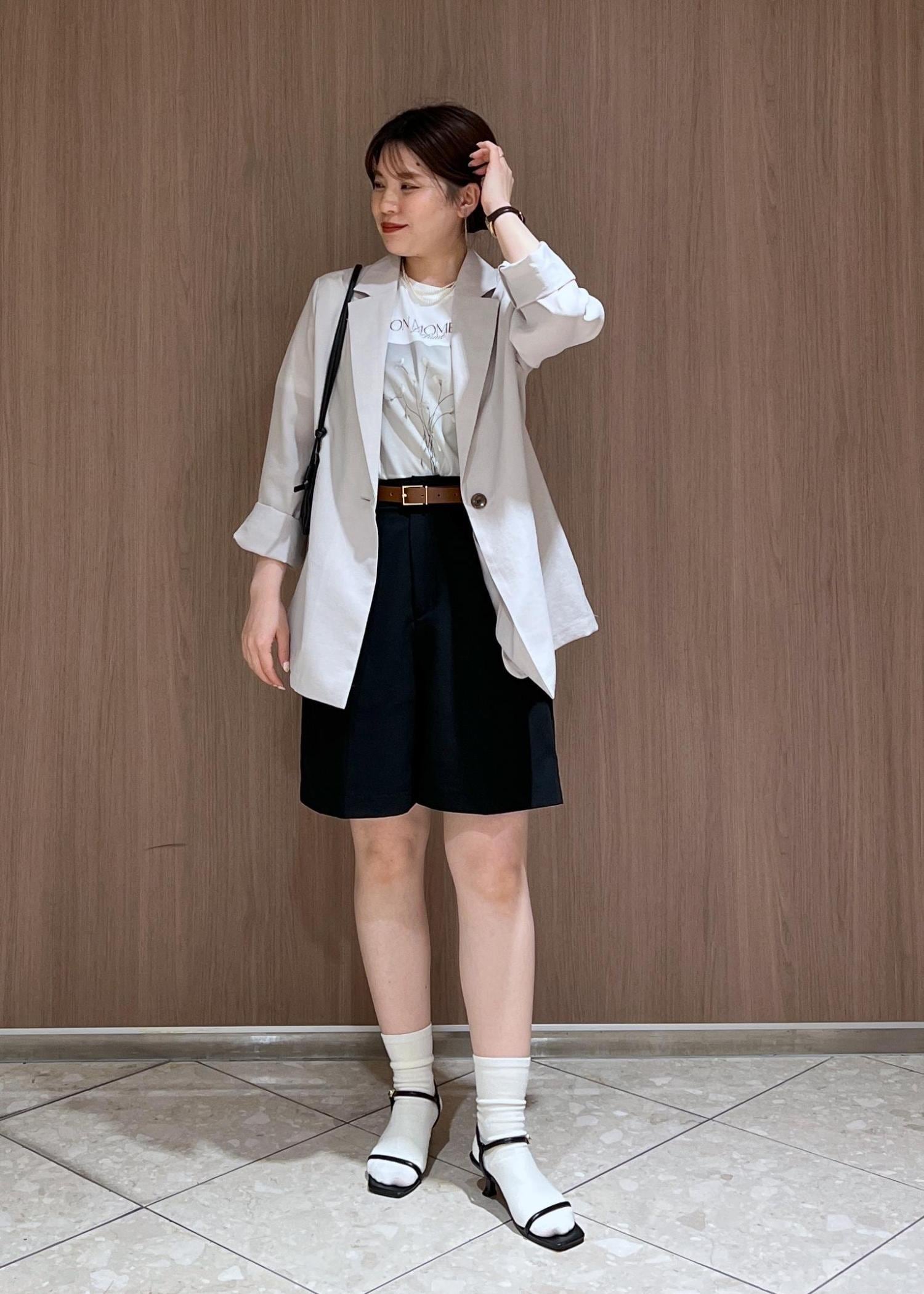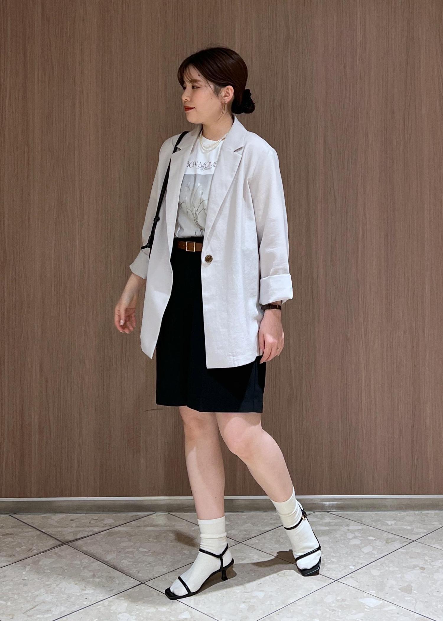 ジャケットとヒールなどきれいめアイテムと合わせて