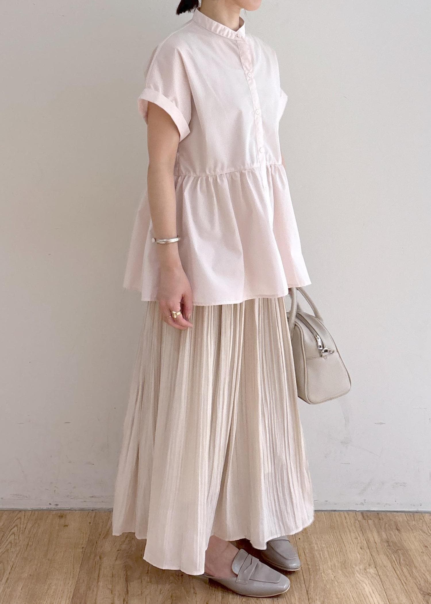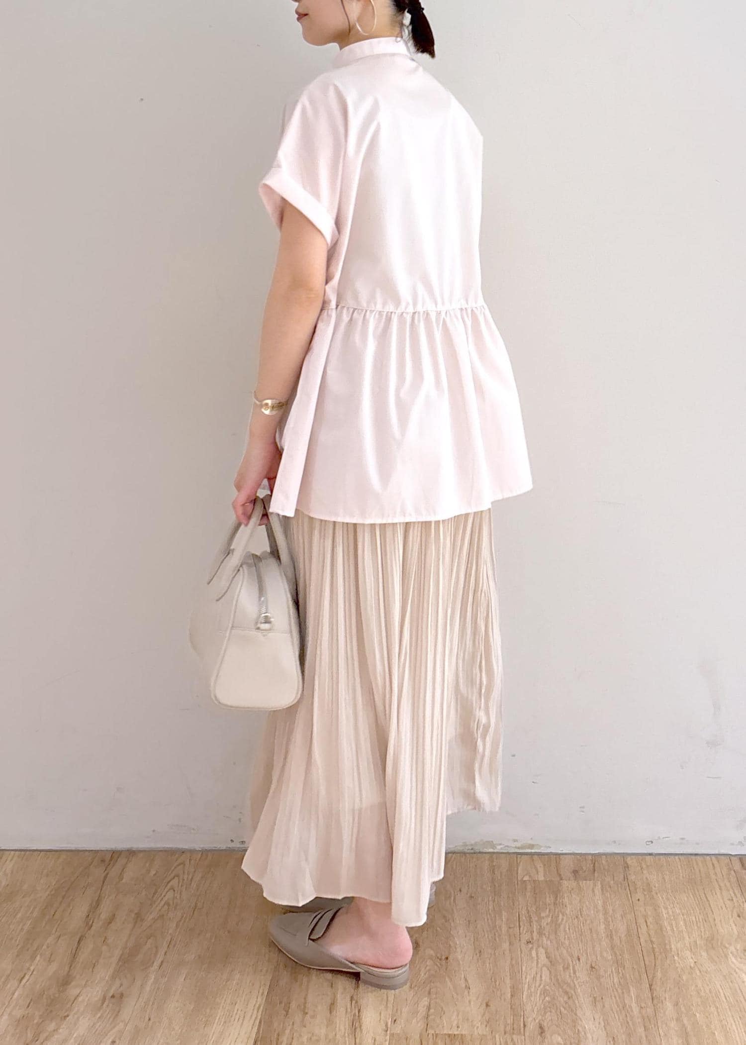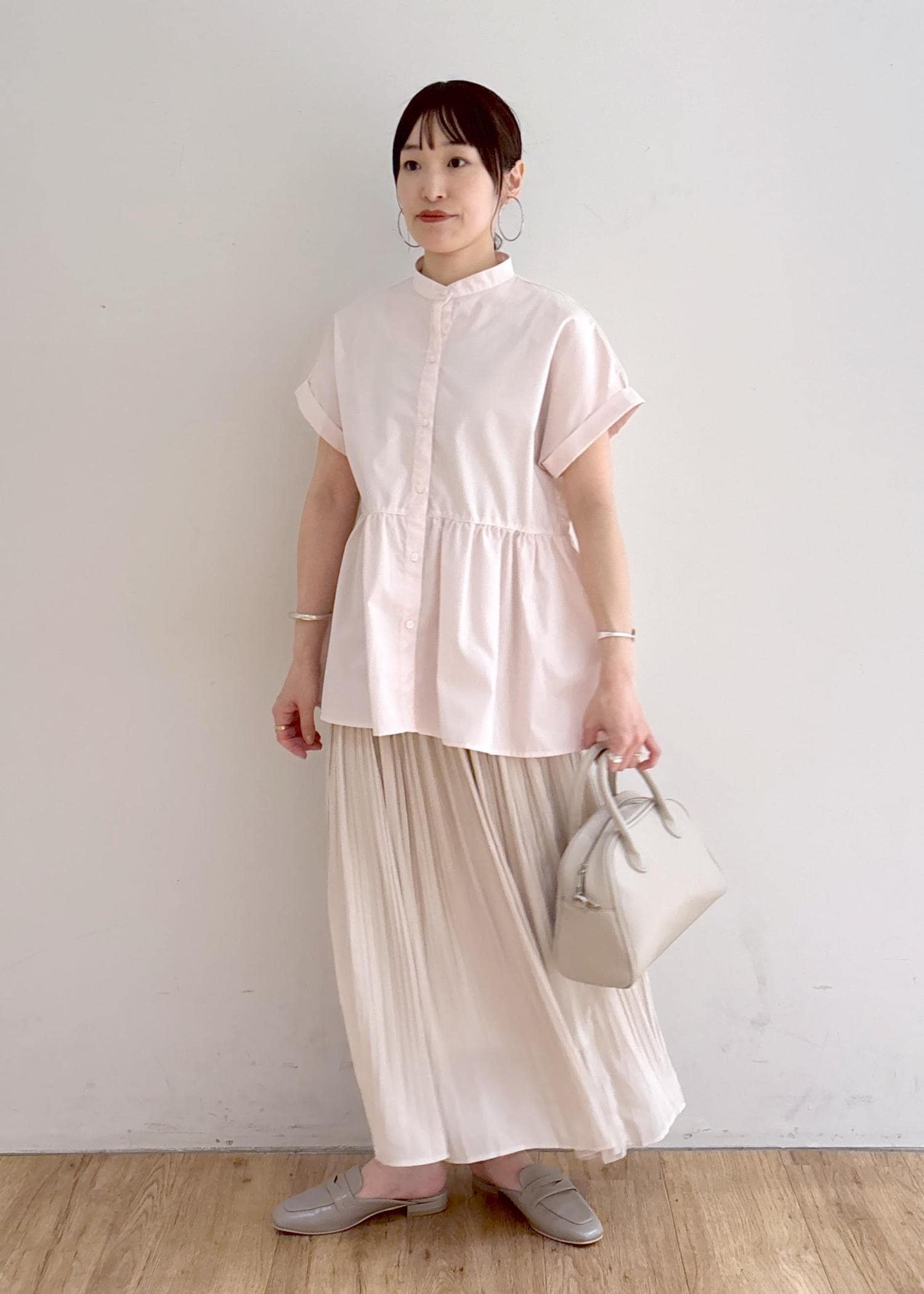 ピンクは普段着用は少ないですが、こちらのブラウスは甘すぎない上品な大人ピンクで着やすいです。顔周りもパッと明るくなるのでおすすめです◎