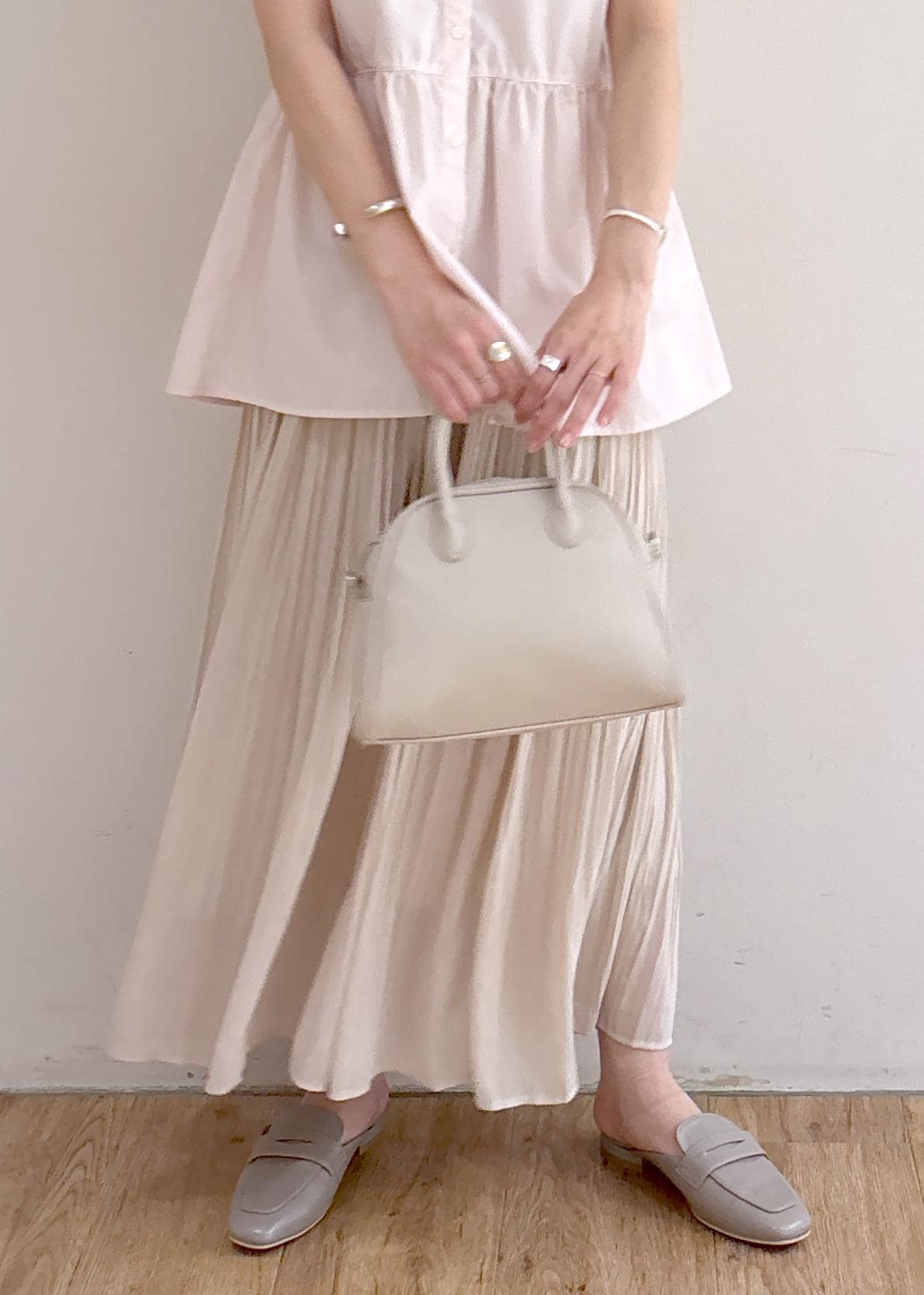 ROPÉ PICNIC着丈が選べるエアリープリーツスカートベージュ / 38T¥3,993レビュー定番のプリーツスカートです。ウエストはゴムですが、若干緩い感じがします。155cmで足首くらいの丈です。