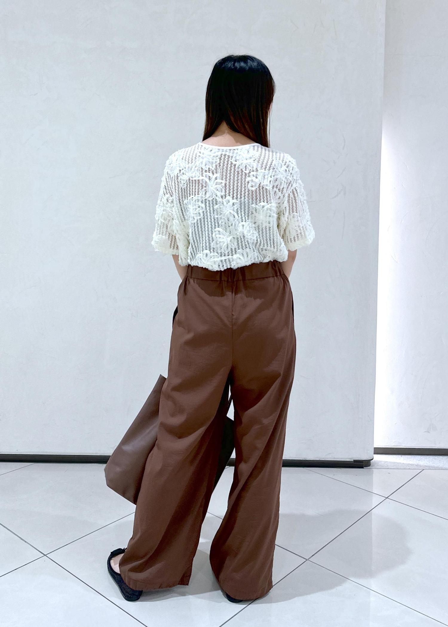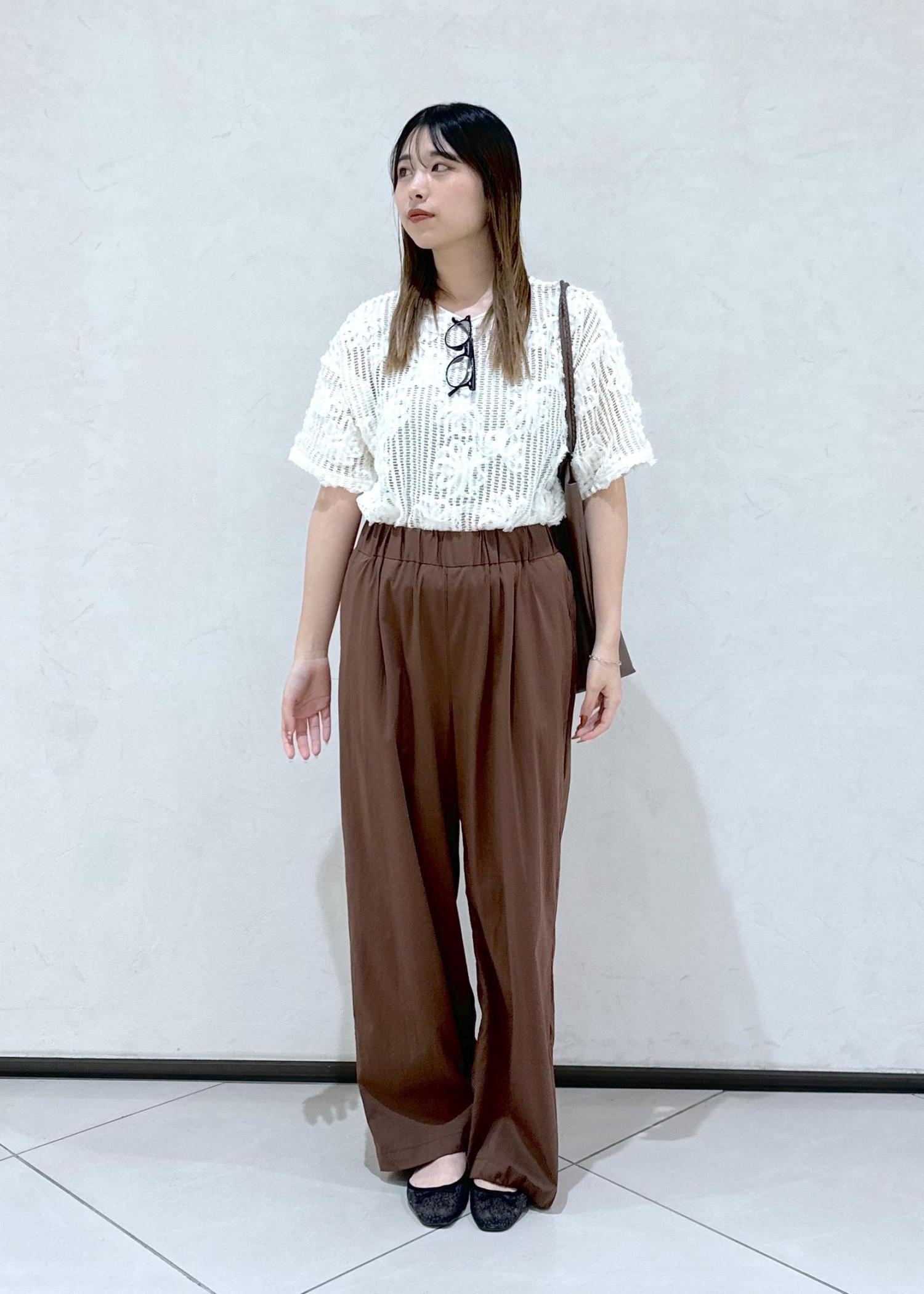 トップスはキレイめでパンツは総ゴムのイージーワイドで楽ちんに♪