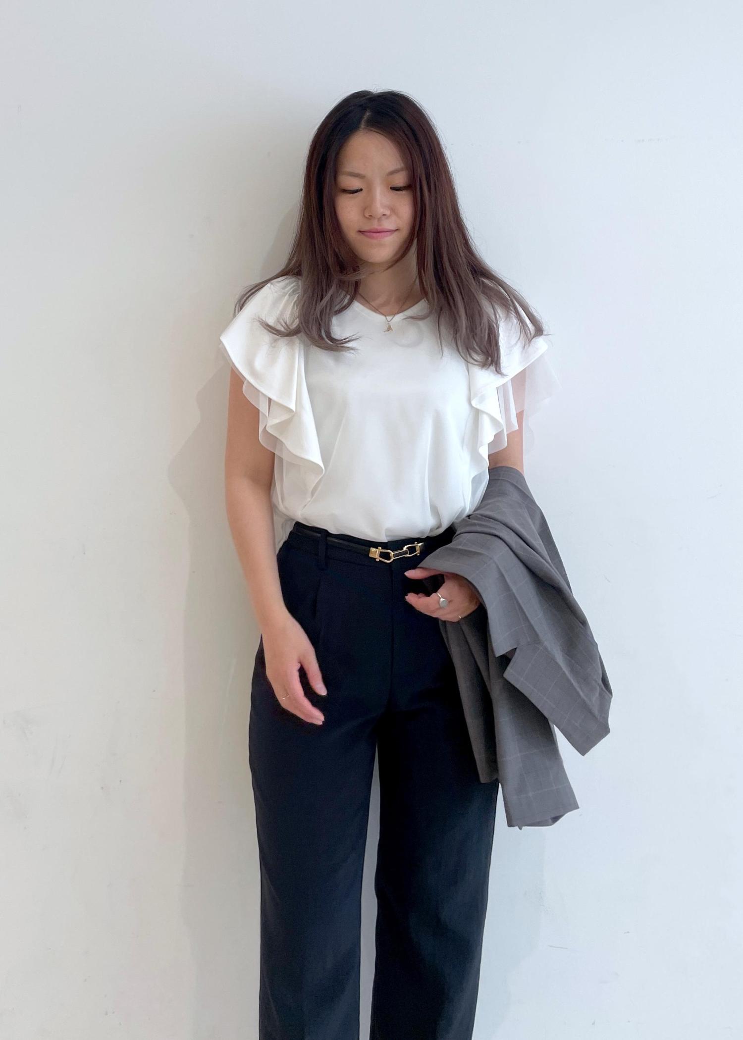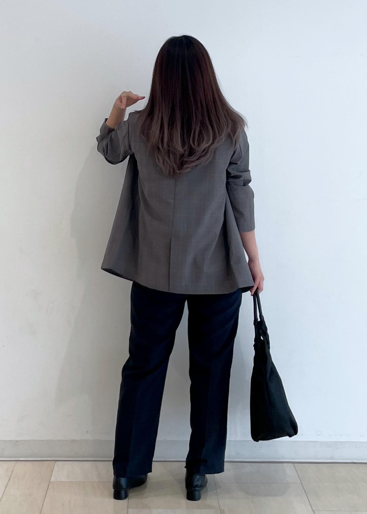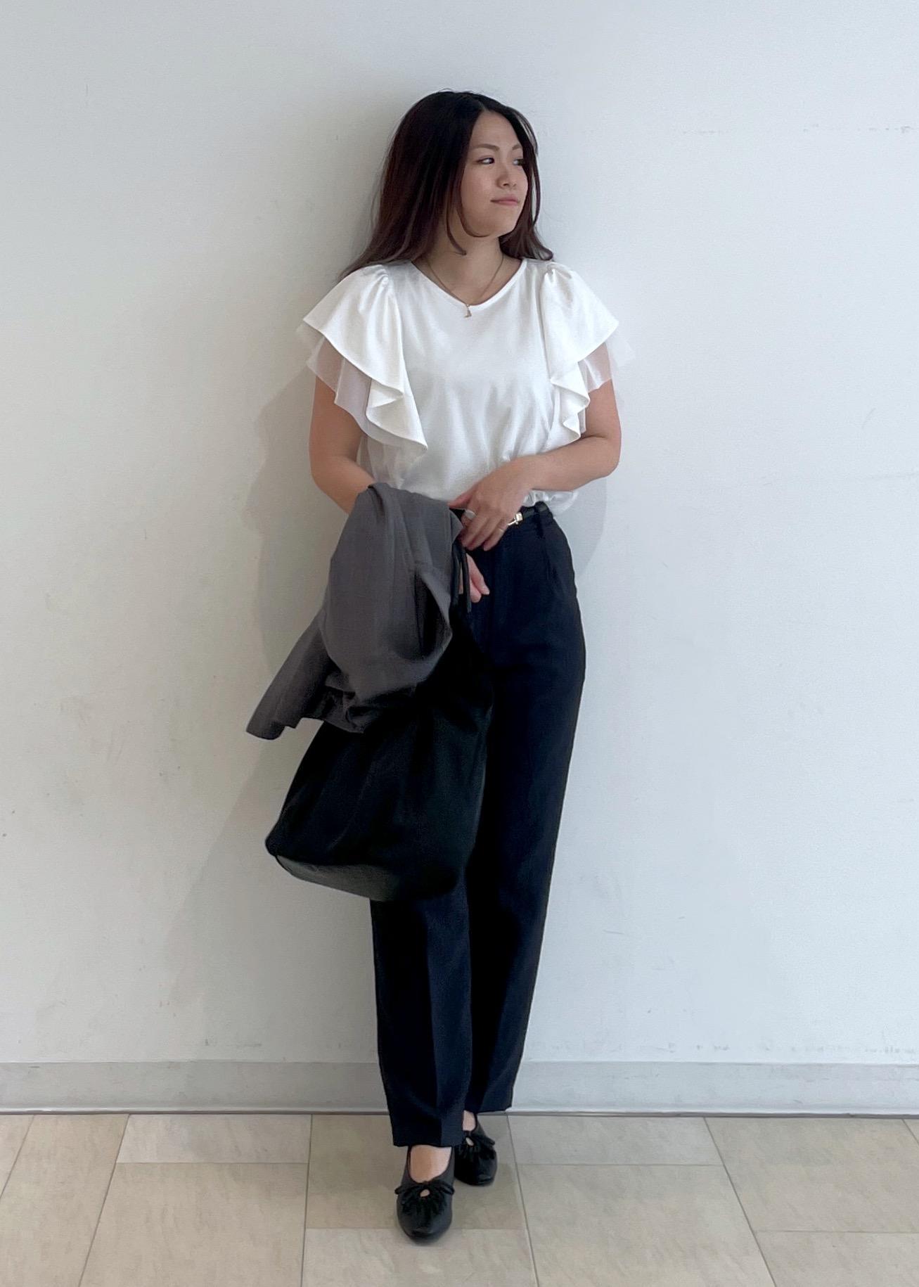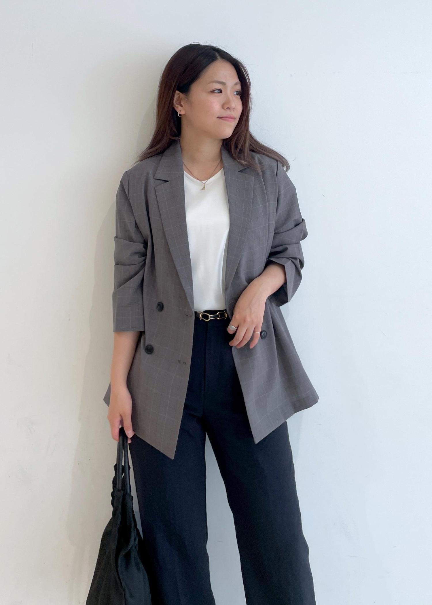 インナーはフレア袖のトップスを合わせていますが、柔らかい素材なのでジャケットも着やすいです!