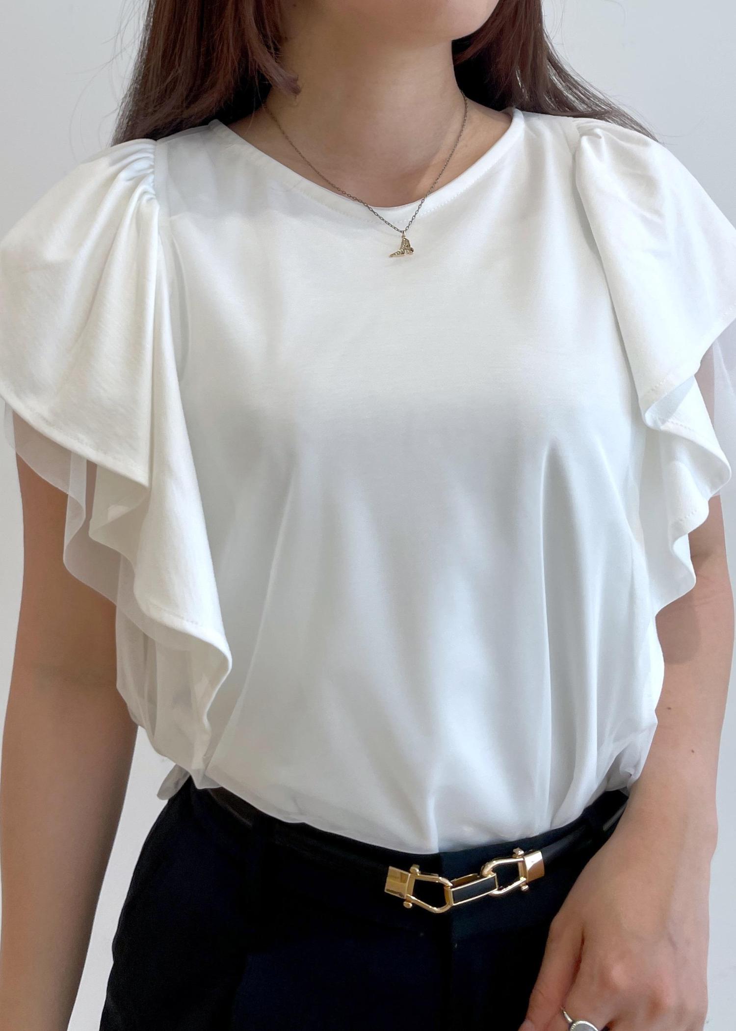 ROPÉ PICNIC【UVカット・接触冷感】Cutee チュールレイヤード風フリルトップスホワイト / 38¥3,993レビュー首元がゆるやかなVネックなのでスッキリ見えます!