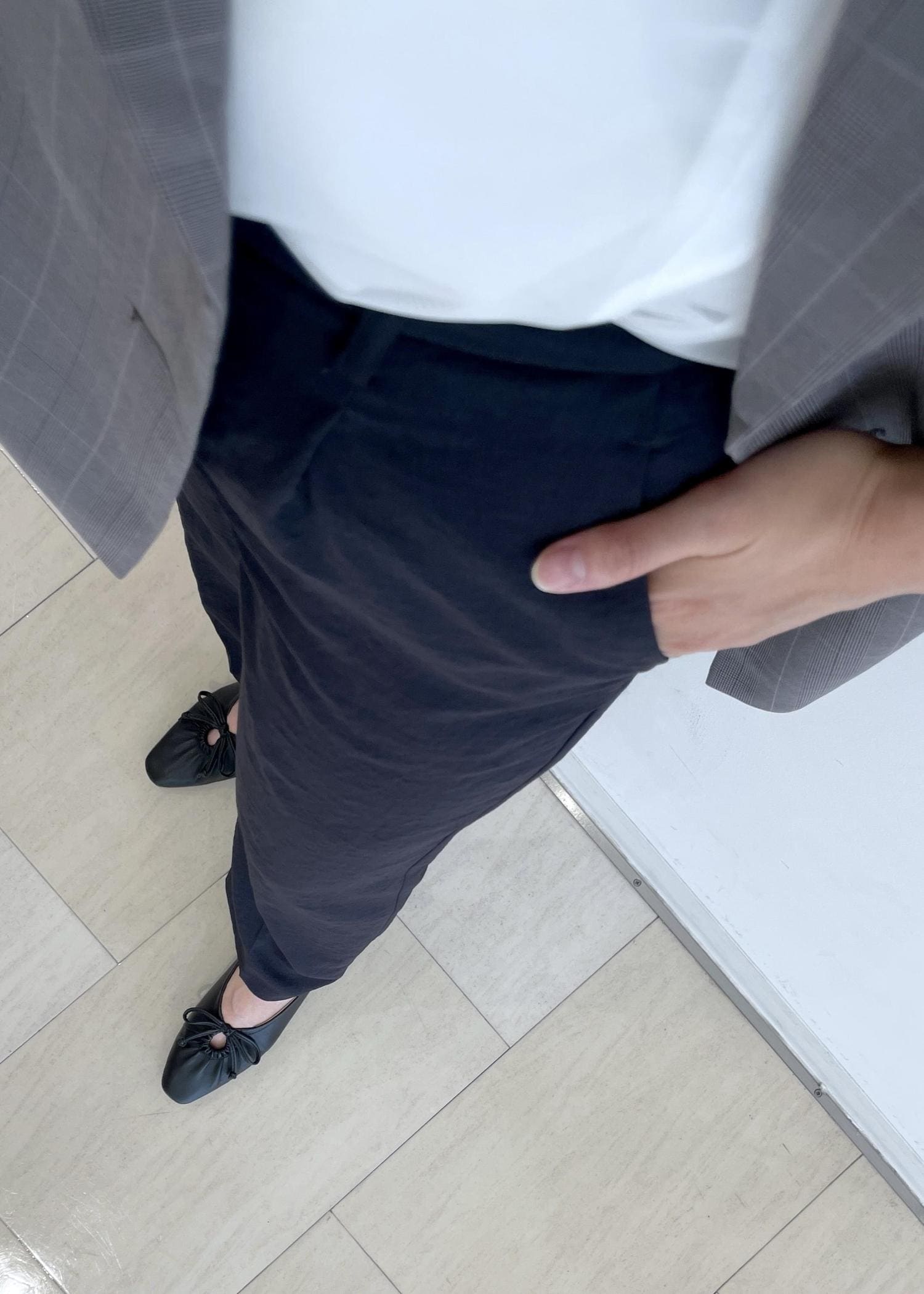 ストレートに近いシルエットなので、脚のラインは拾いにくいです!