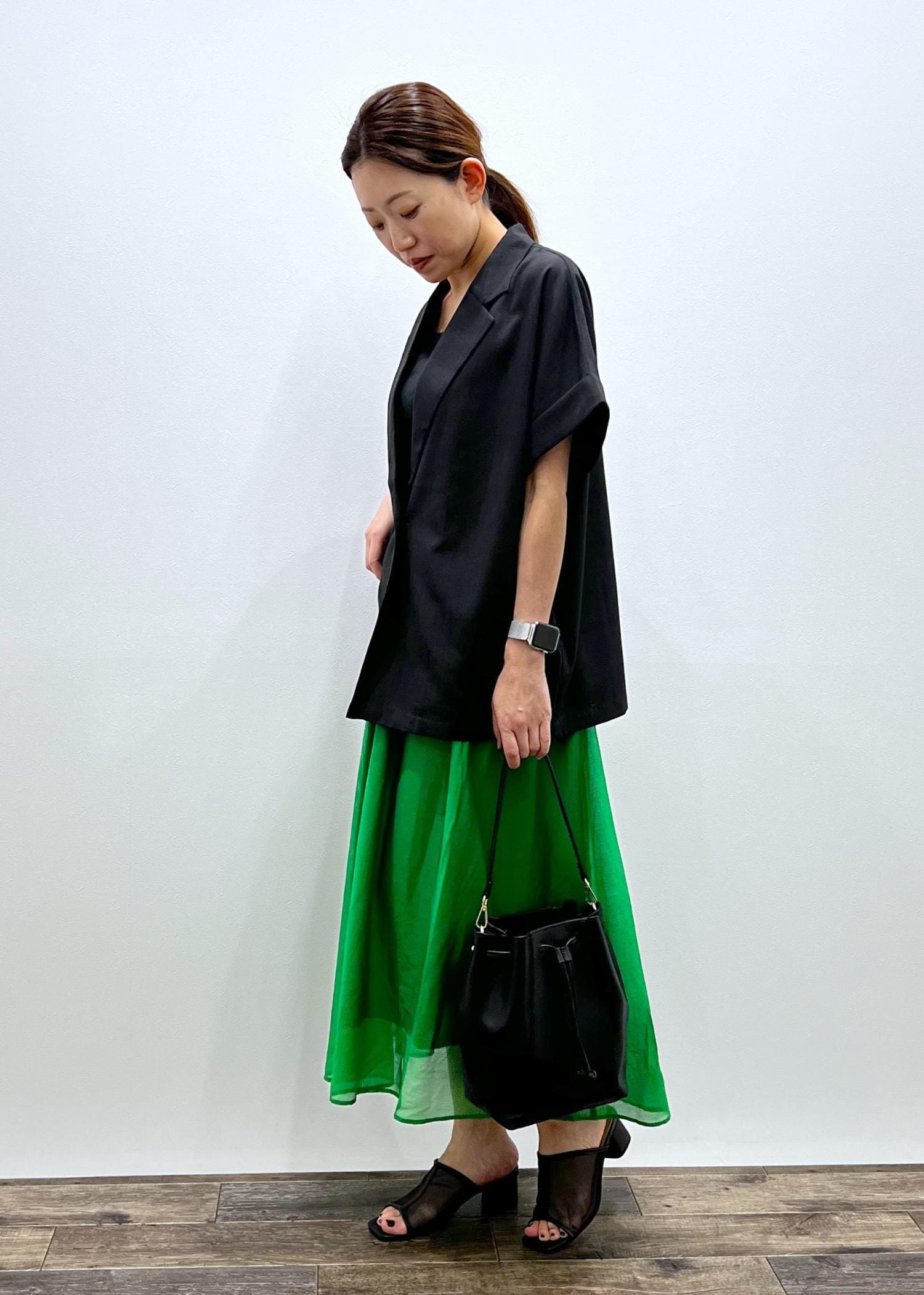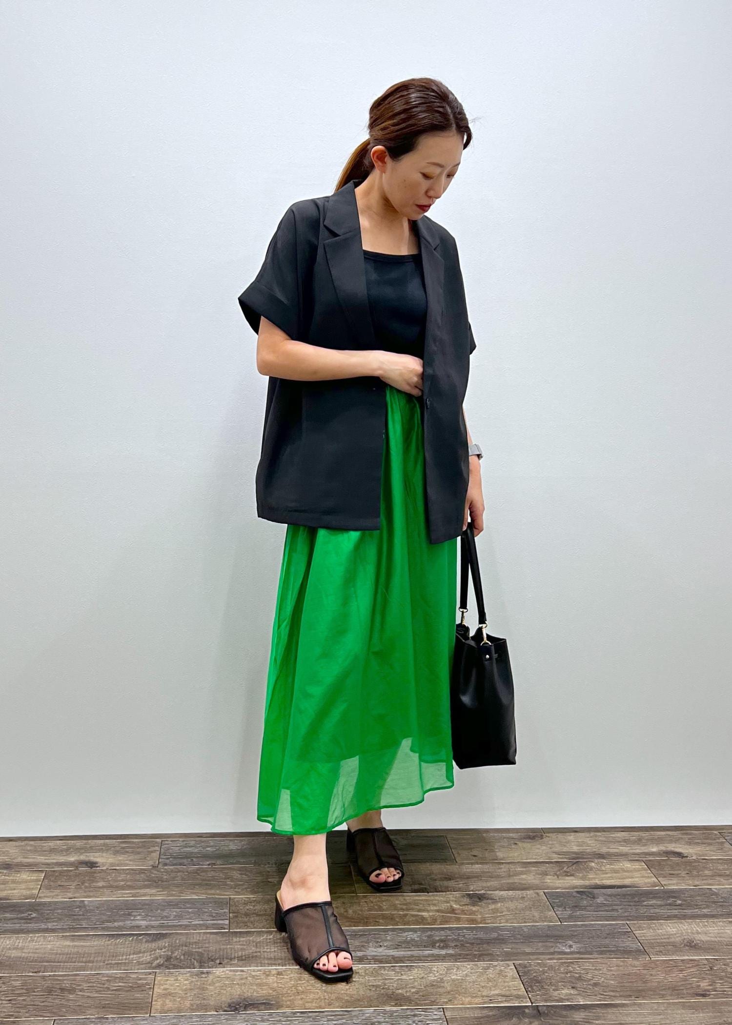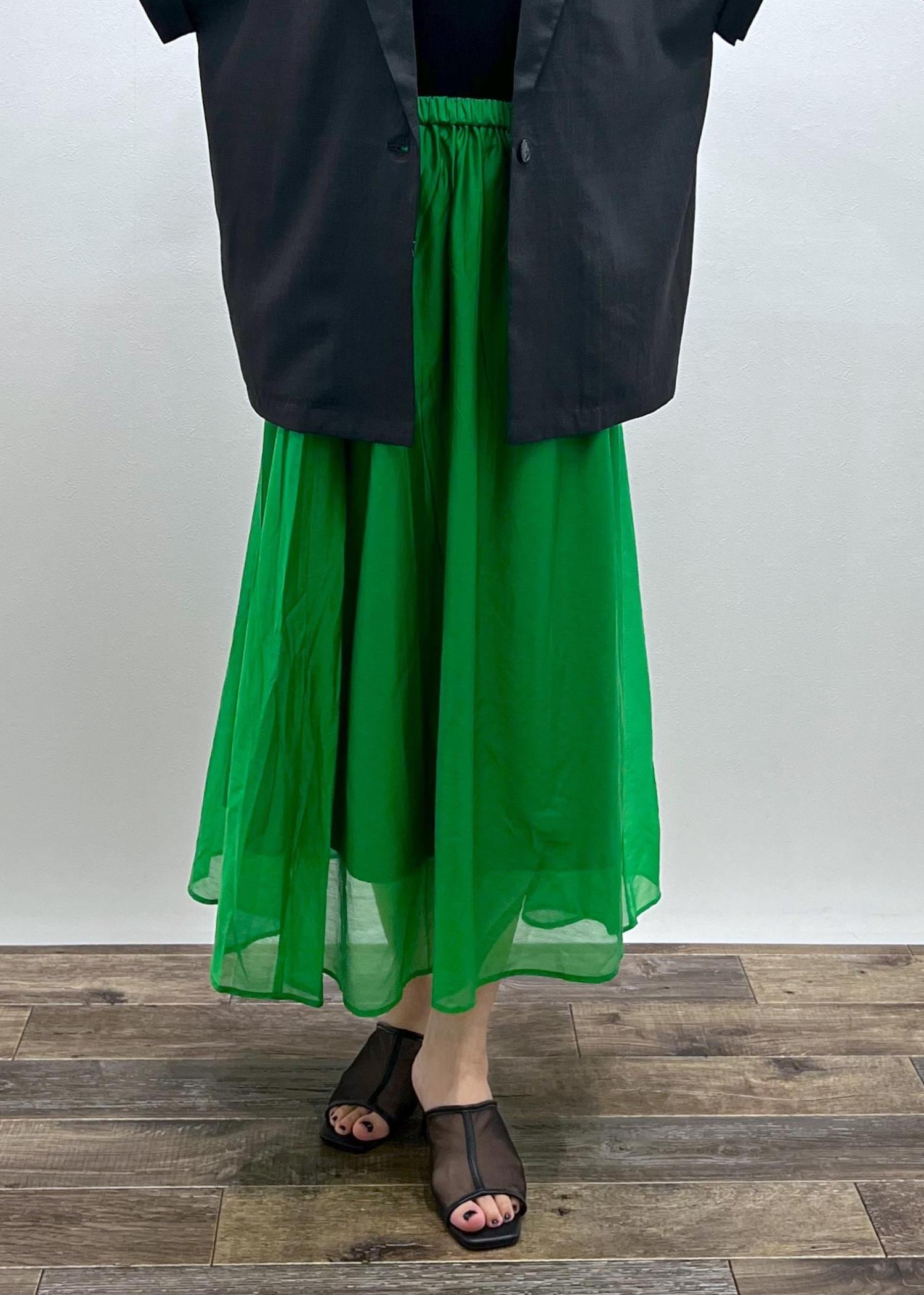 今回はシアーロングスカートを使ったコーディネートのご紹介です。