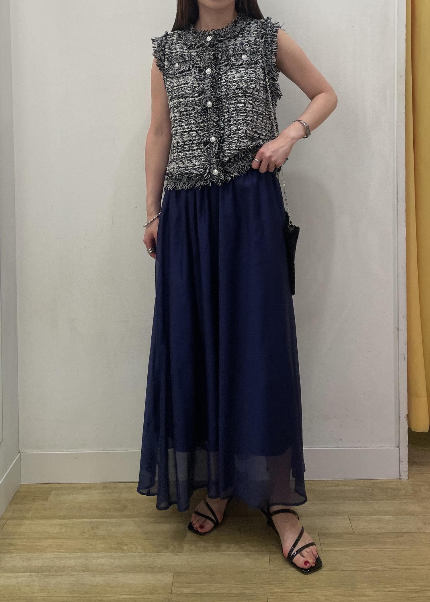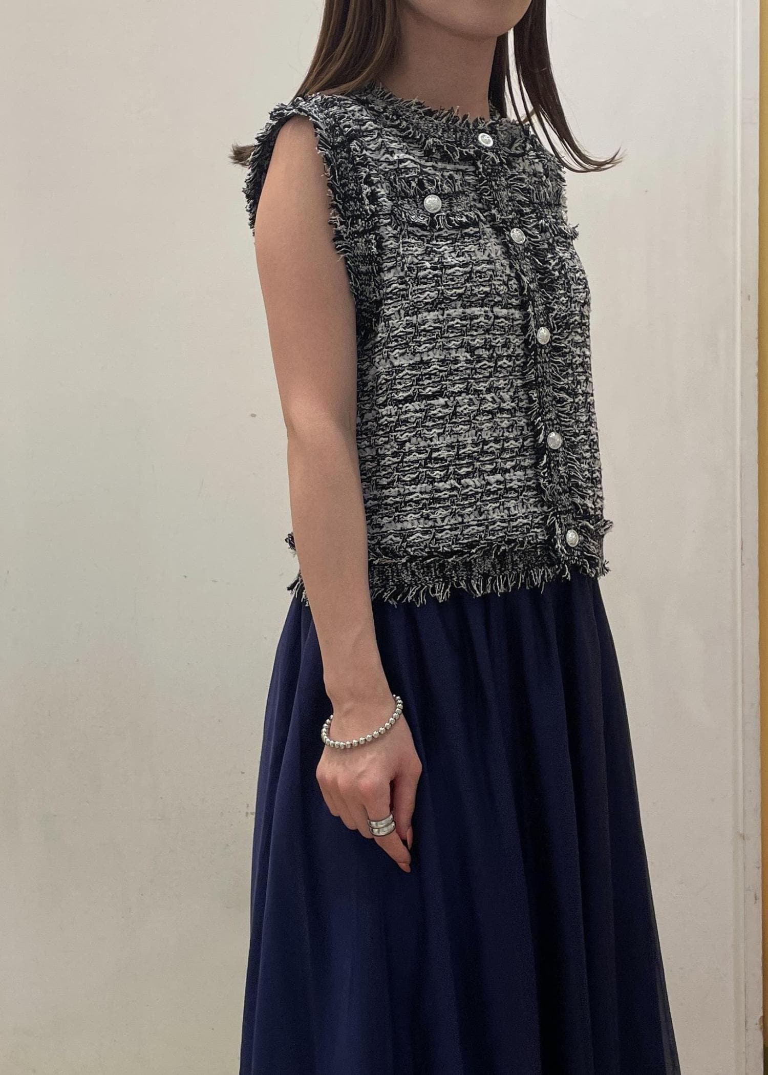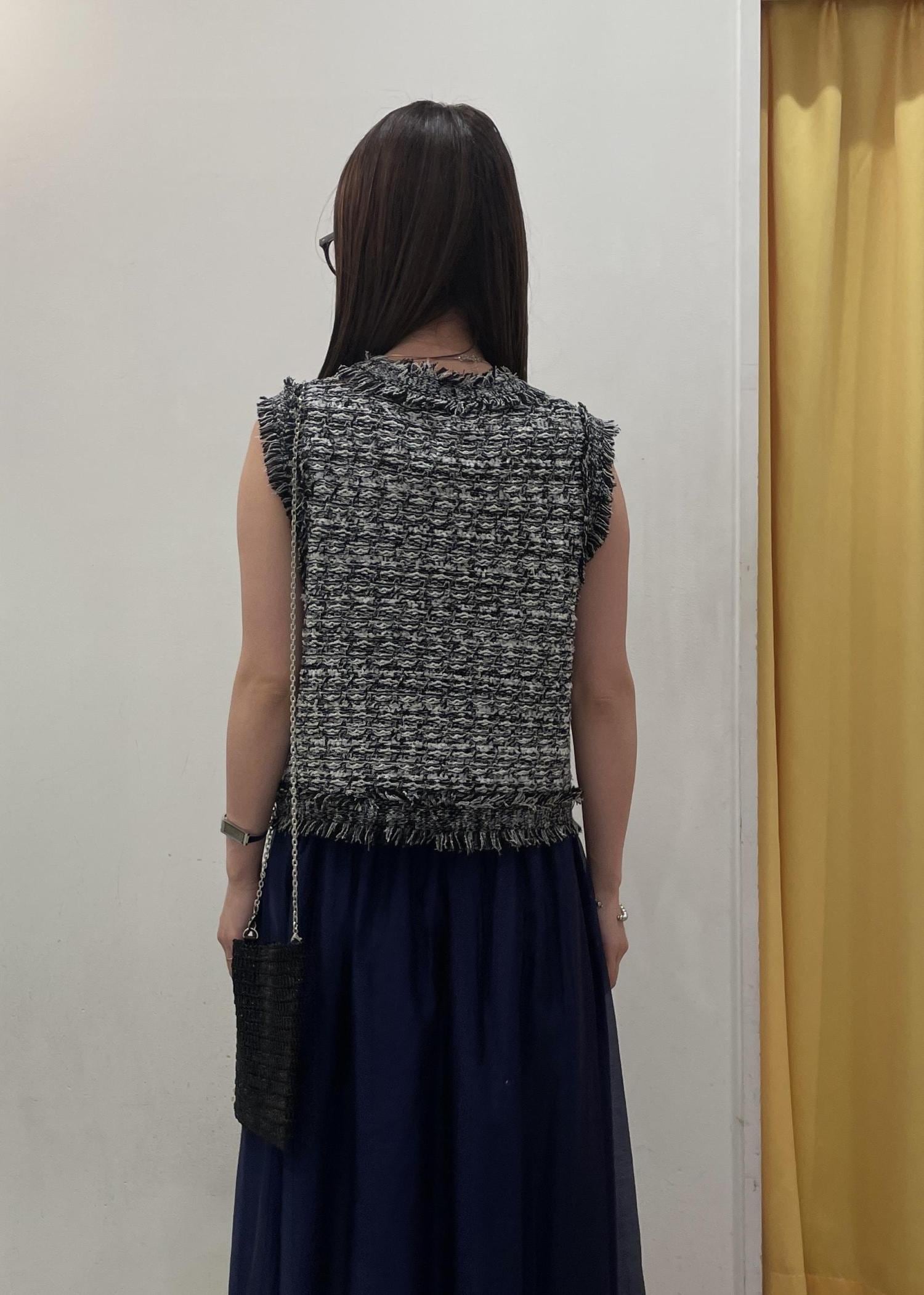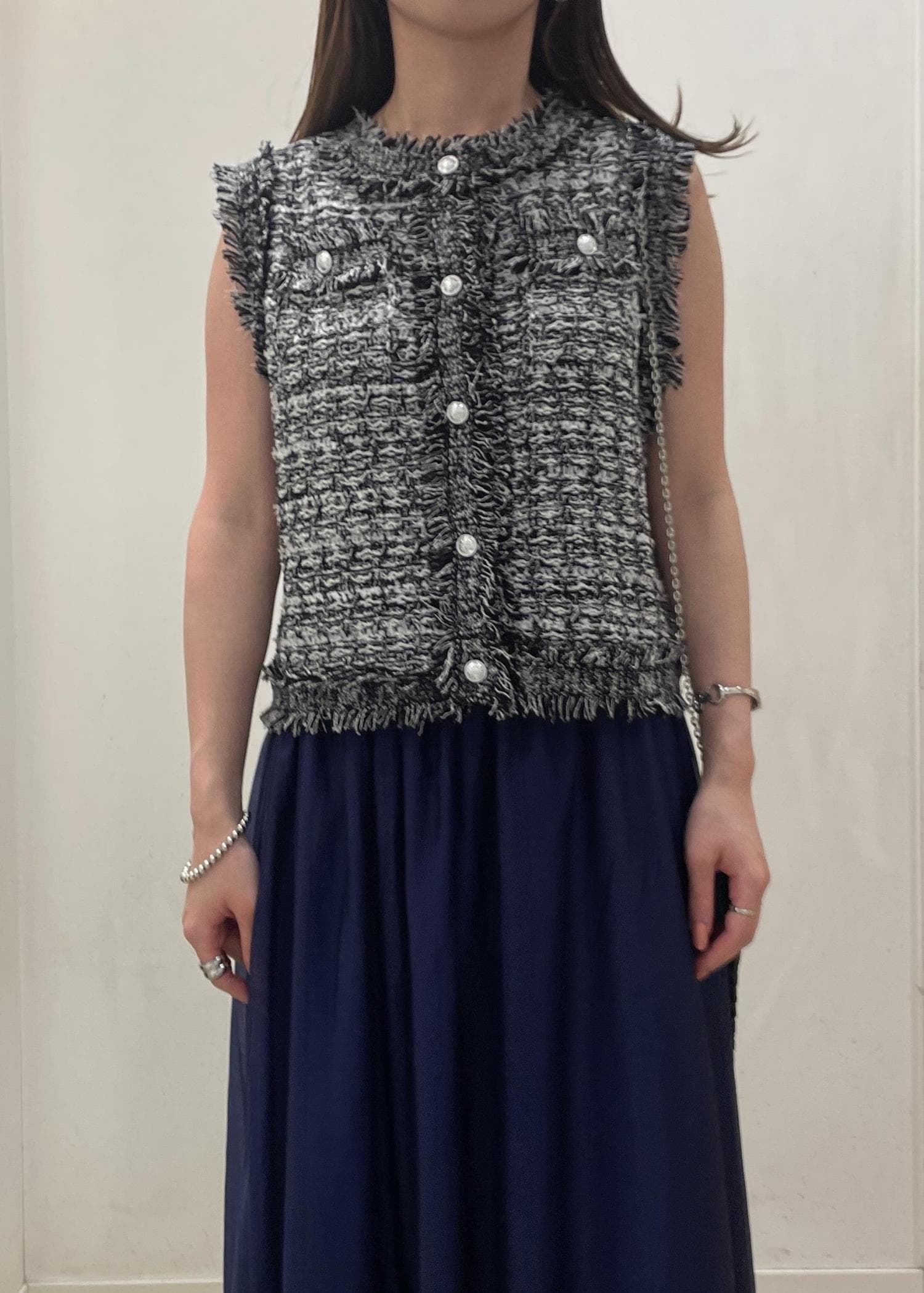 ツイードライクスリーブレスジレカーディガン