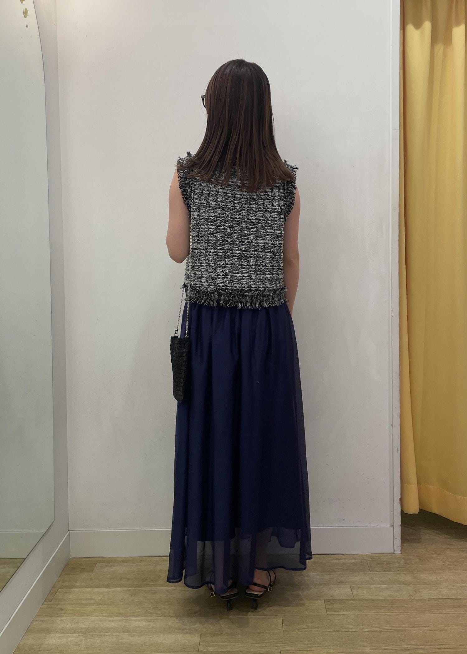 ツイードで甘くなり過ぎないように色味を落ち着かせモード感のあるコーディネートに☺︎
