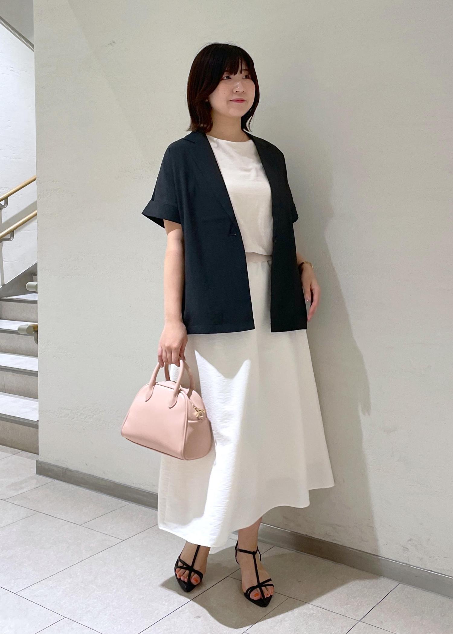 可愛いけど大人っぽさも欲しかったので、足元はストラップサンダル、チャコールのジャケットを合わせました。