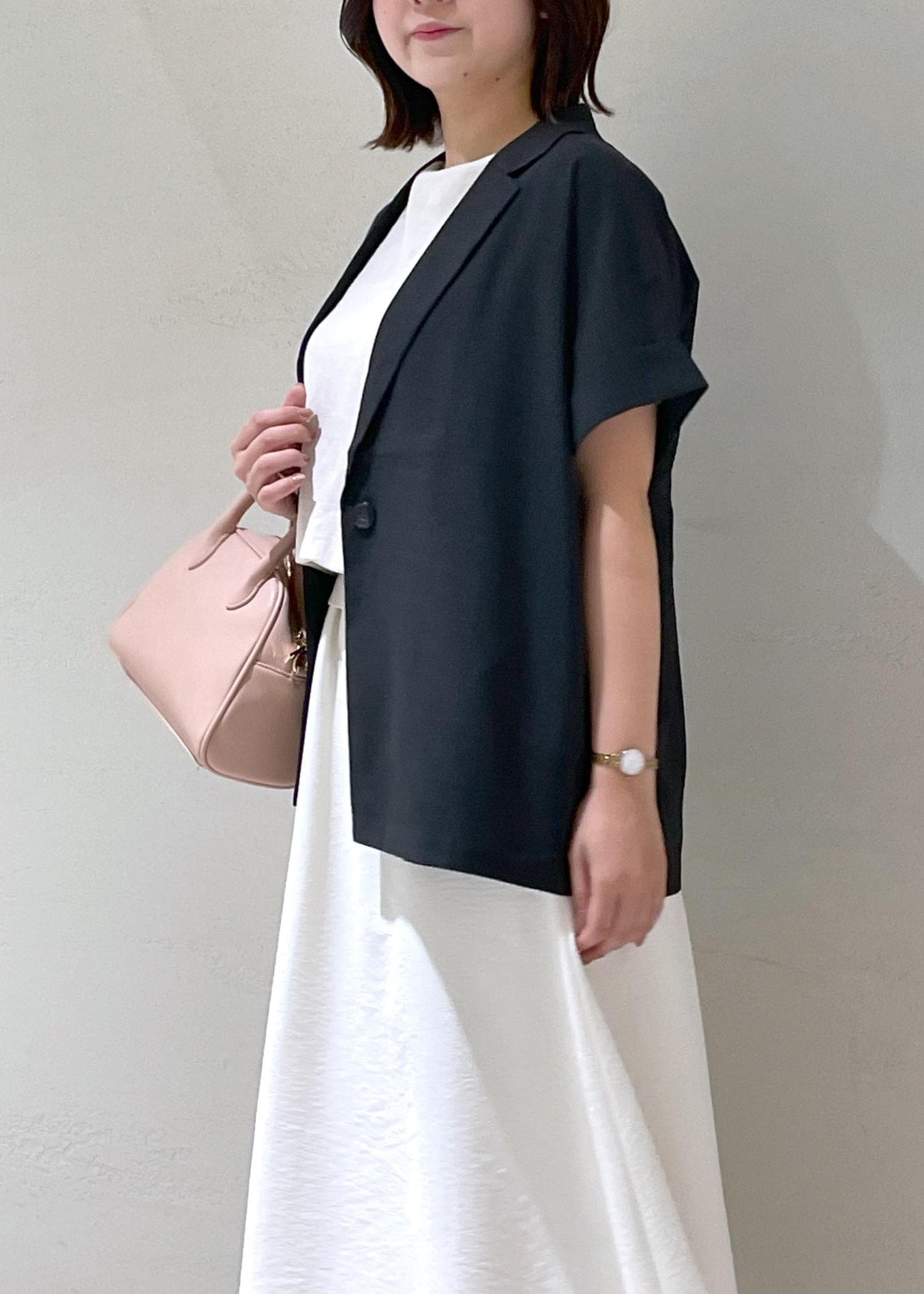 ホワイトコーデ×半袖ジャケット