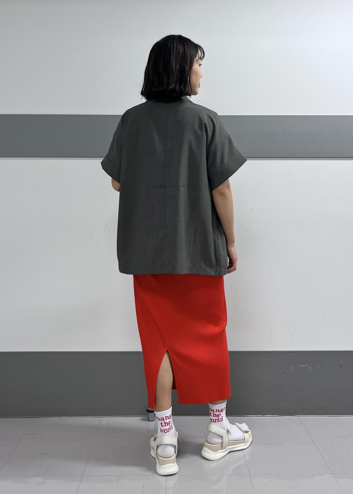 ハーフスリーブの方はシングルボタンなので前開きの際にキレイな縦ラインができ、すっきり見えします。 -