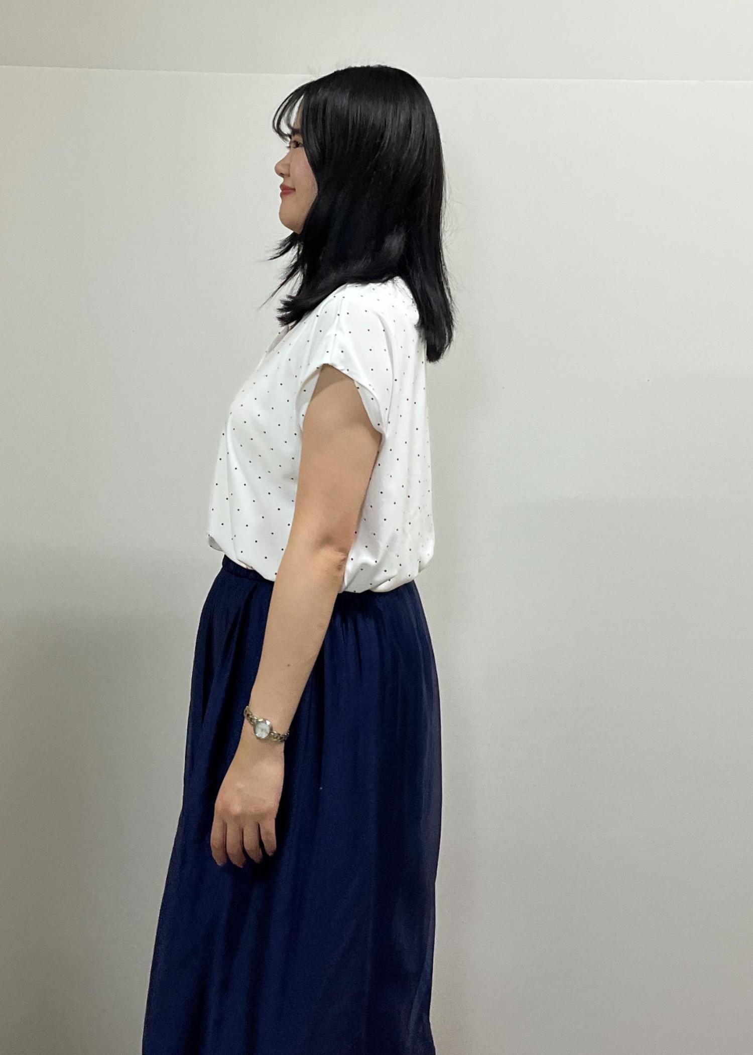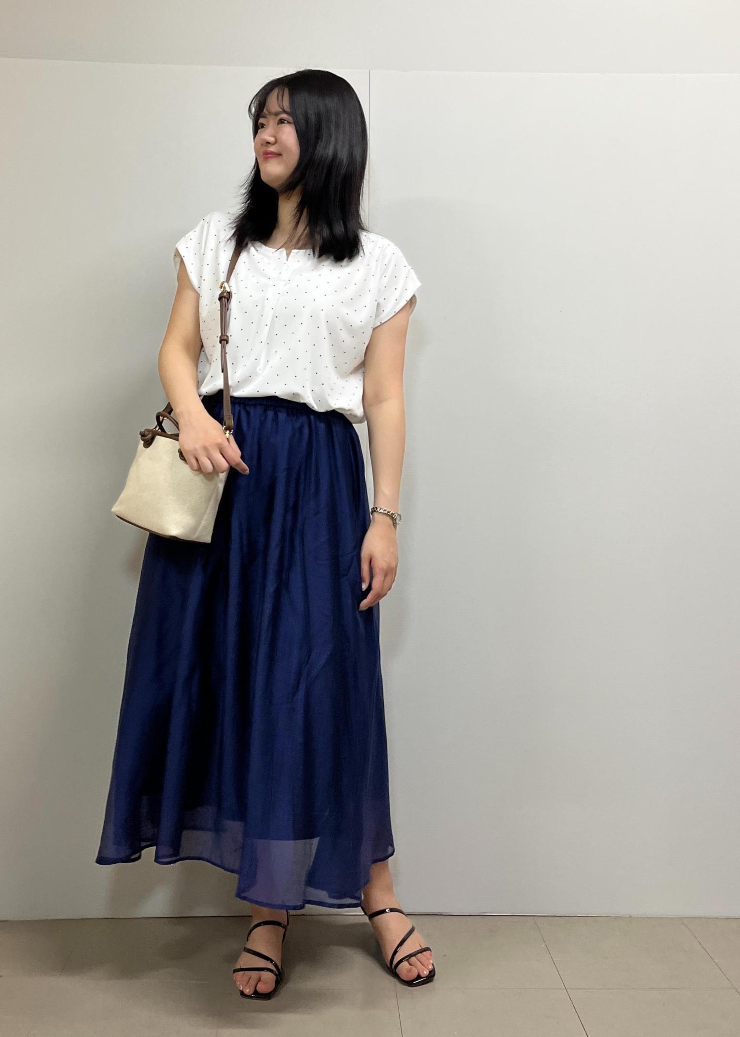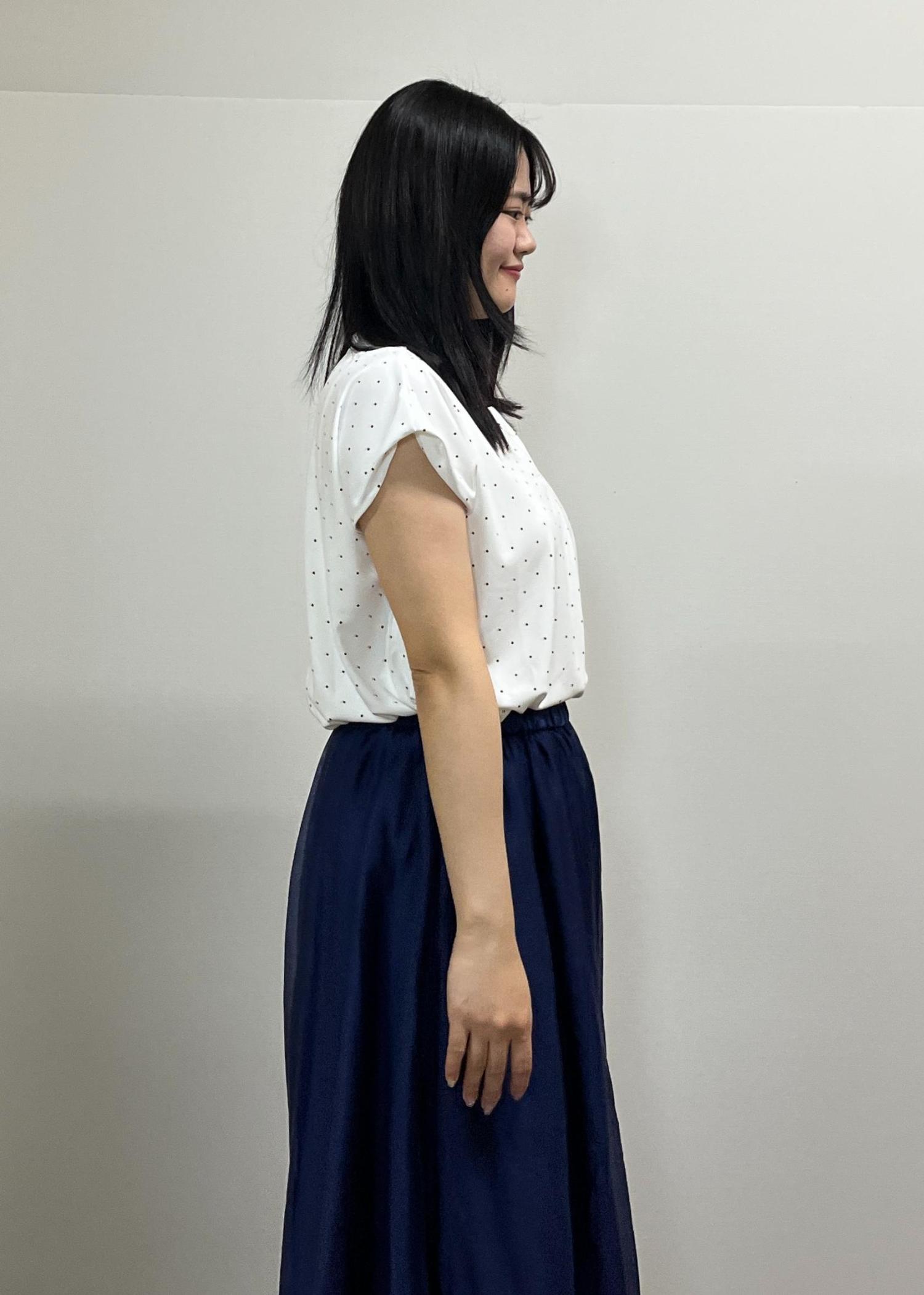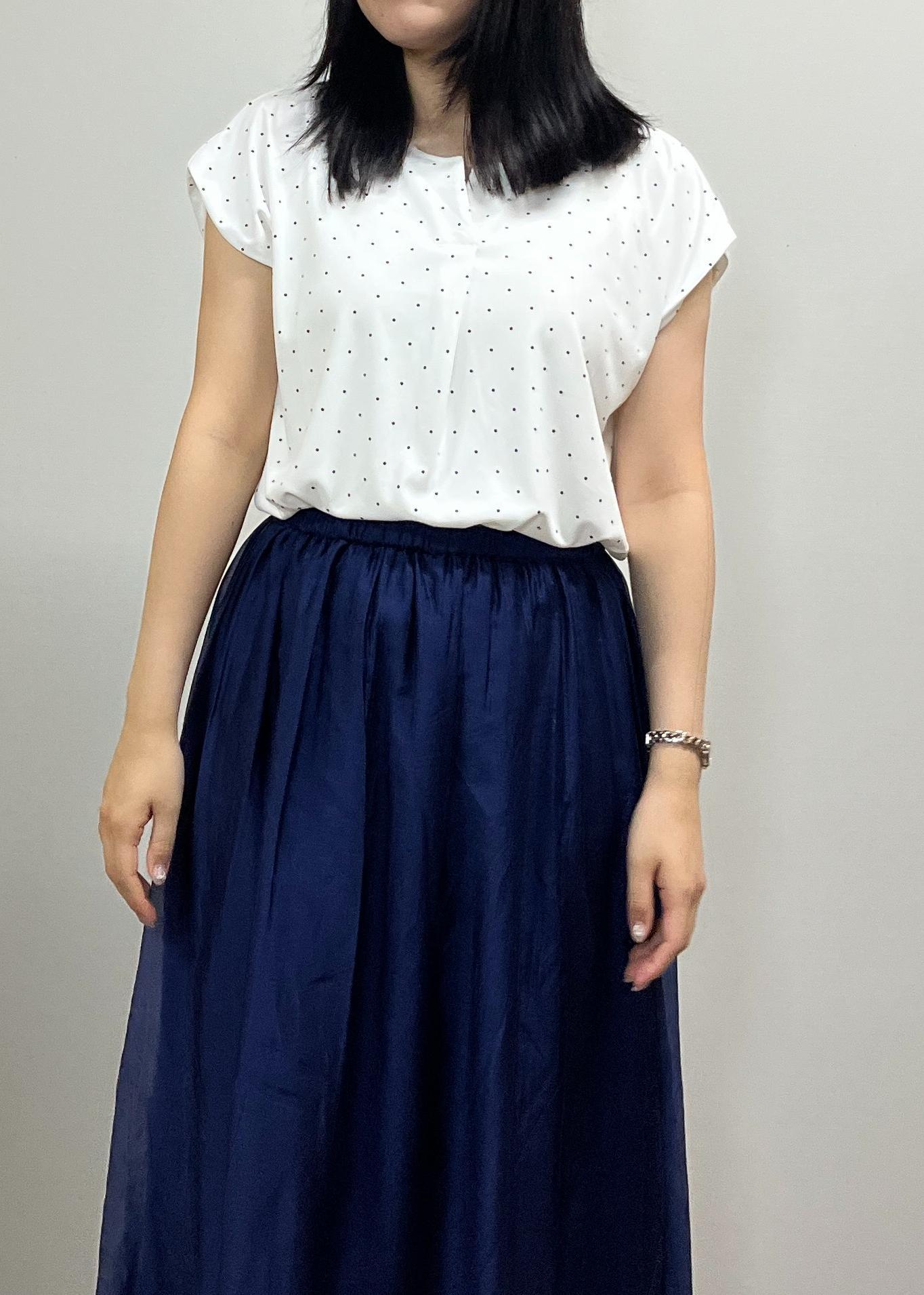 ギャザースカートですがほどよく落ち感があるので骨格ストレートでも着やすかったです。