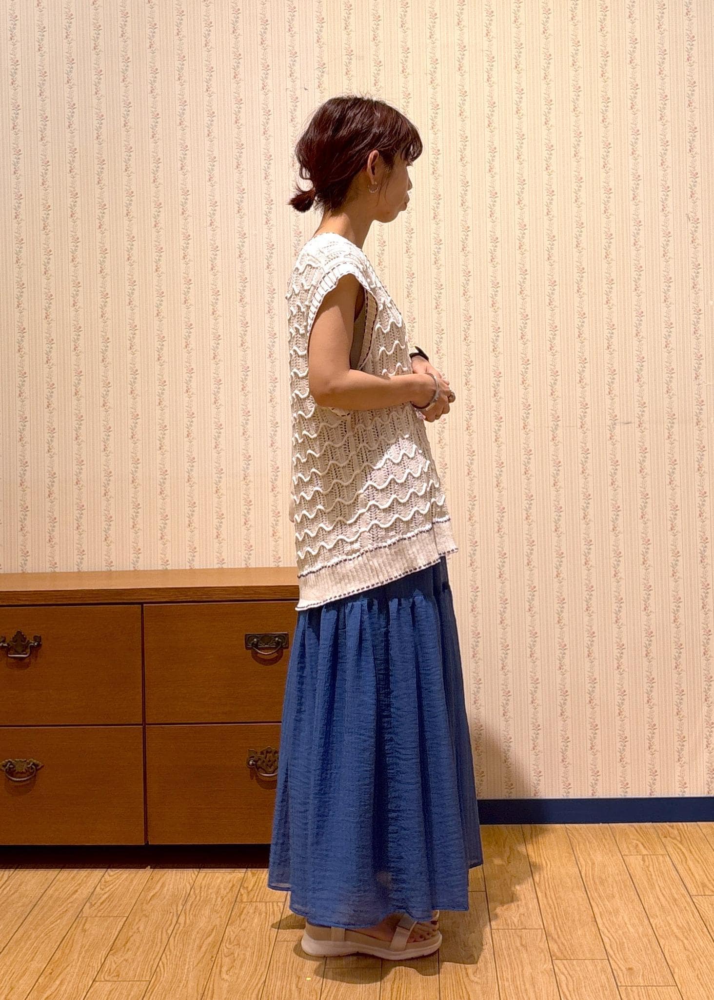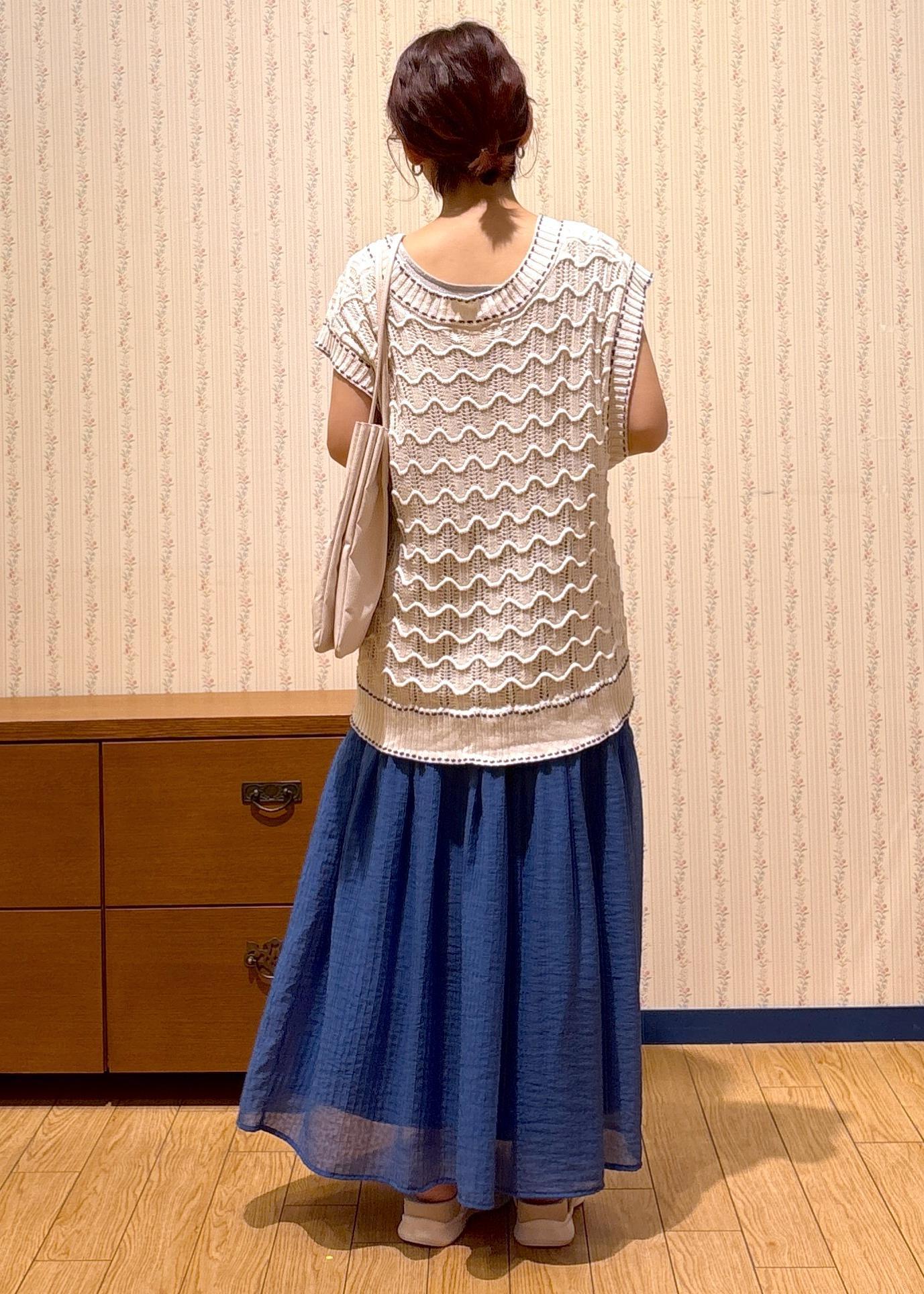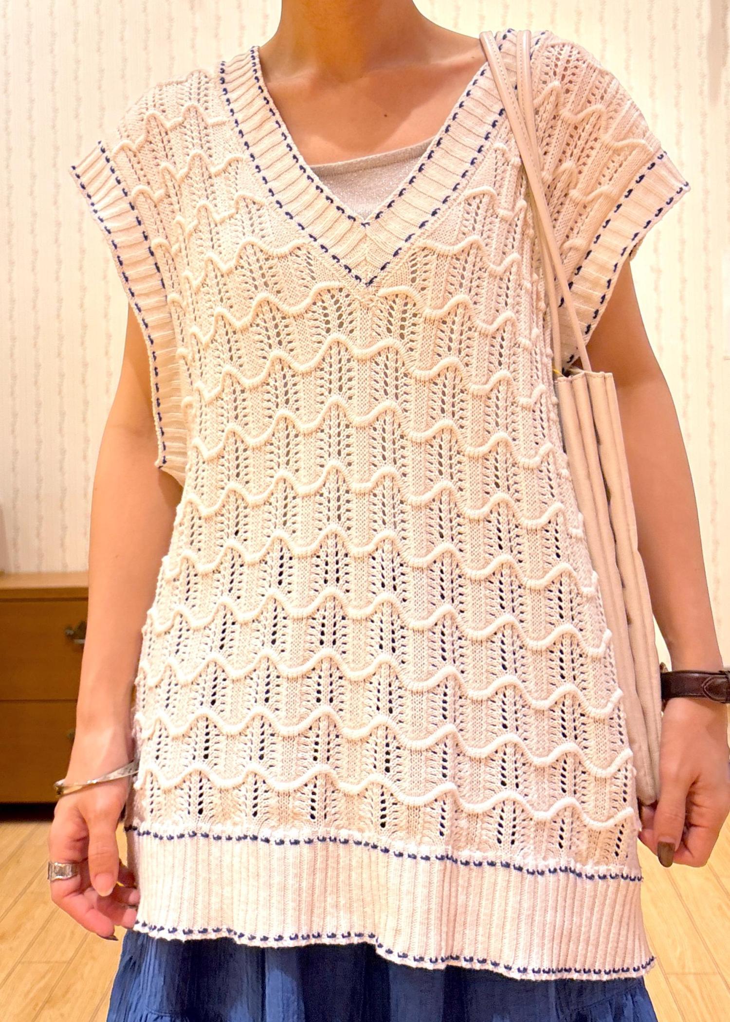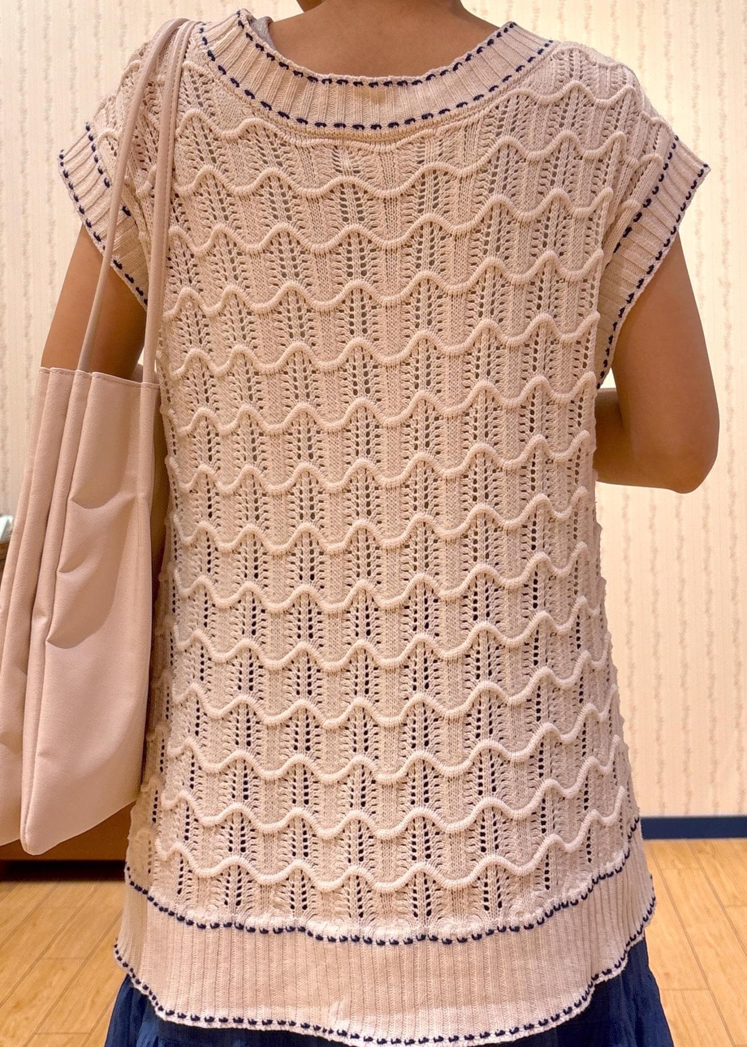 ROPÉ PICNIC配色ステッチ透かし編みニットベストオフホワイト / 38¥4,389レビューゆったりとしたシルエットで重ね着もしやすいです。