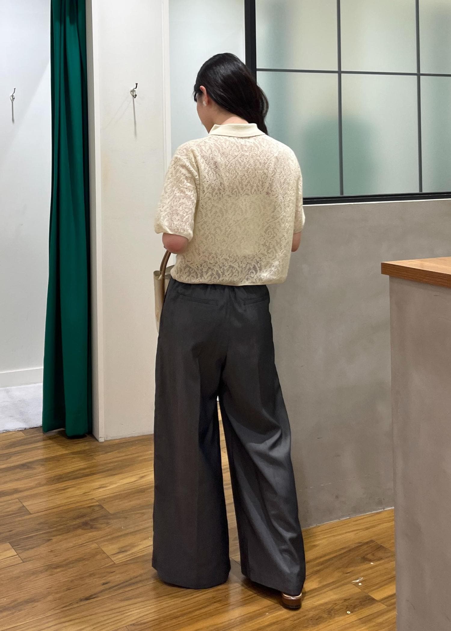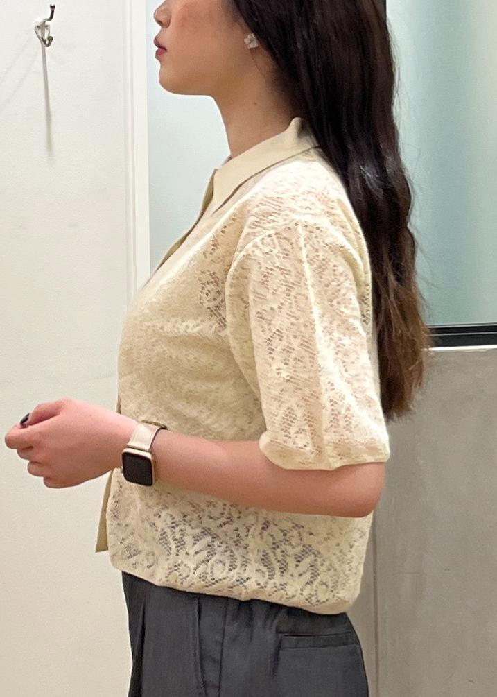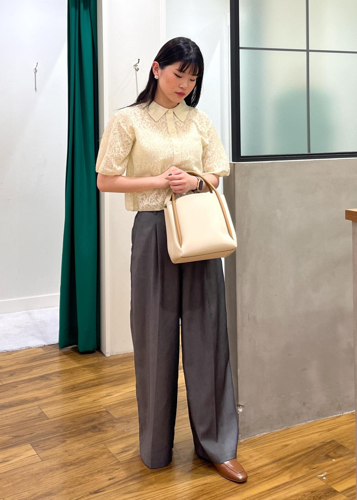 レース生地が好きで可愛くてリアルバイしたトップスと、ゆったりシルエットのパンツのコーデです。