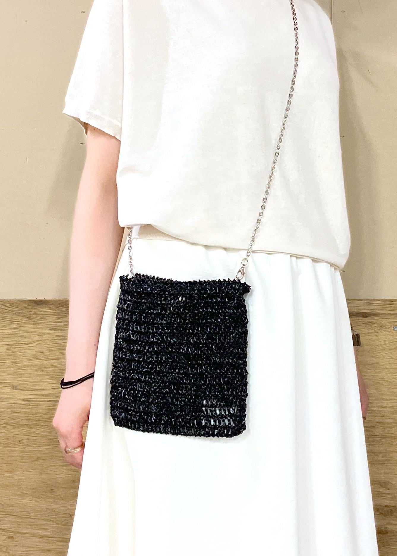 アウトレットROPÉ PICNIC PASSAGEメタリックヤーンミニチェーンショルダーバッグブラック / F¥1,997レビュー柔らかな素材のメタリックヤーンで編まれたミニショルダーは、アクセサリー感覚でお使い頂けますよ♪