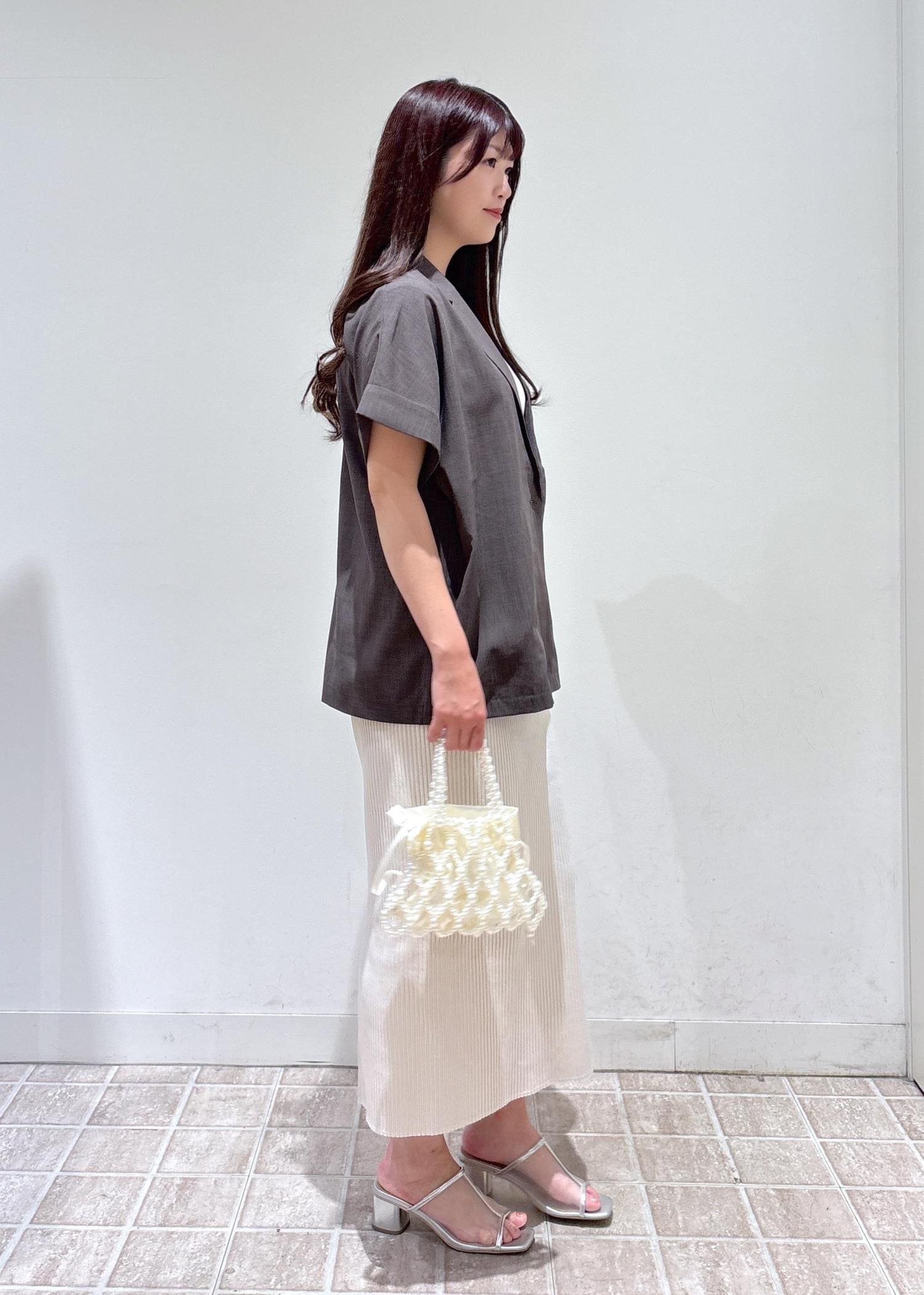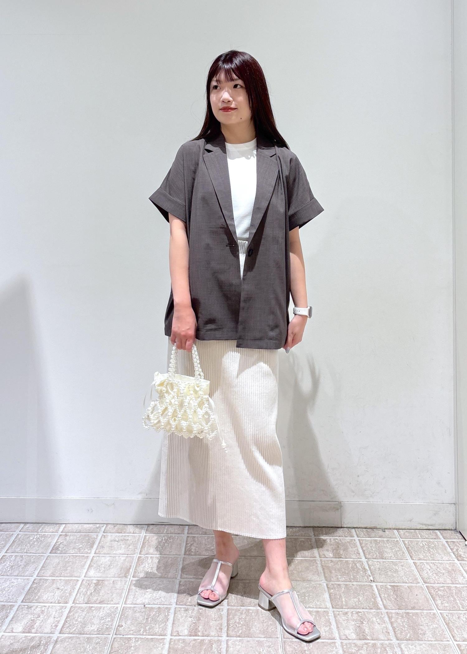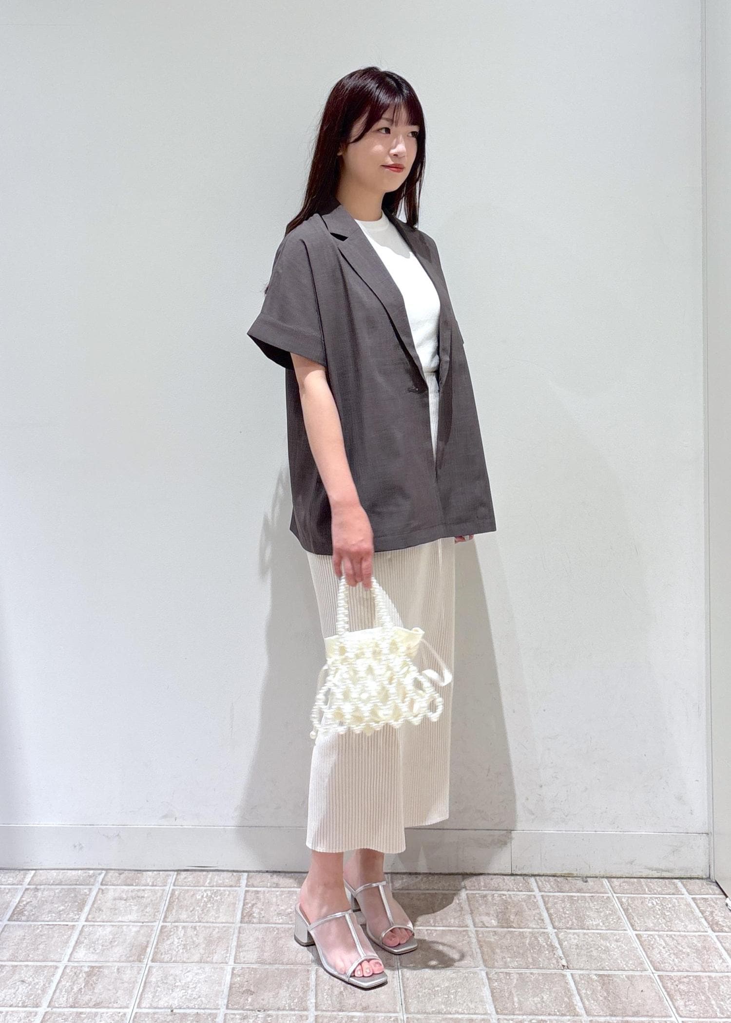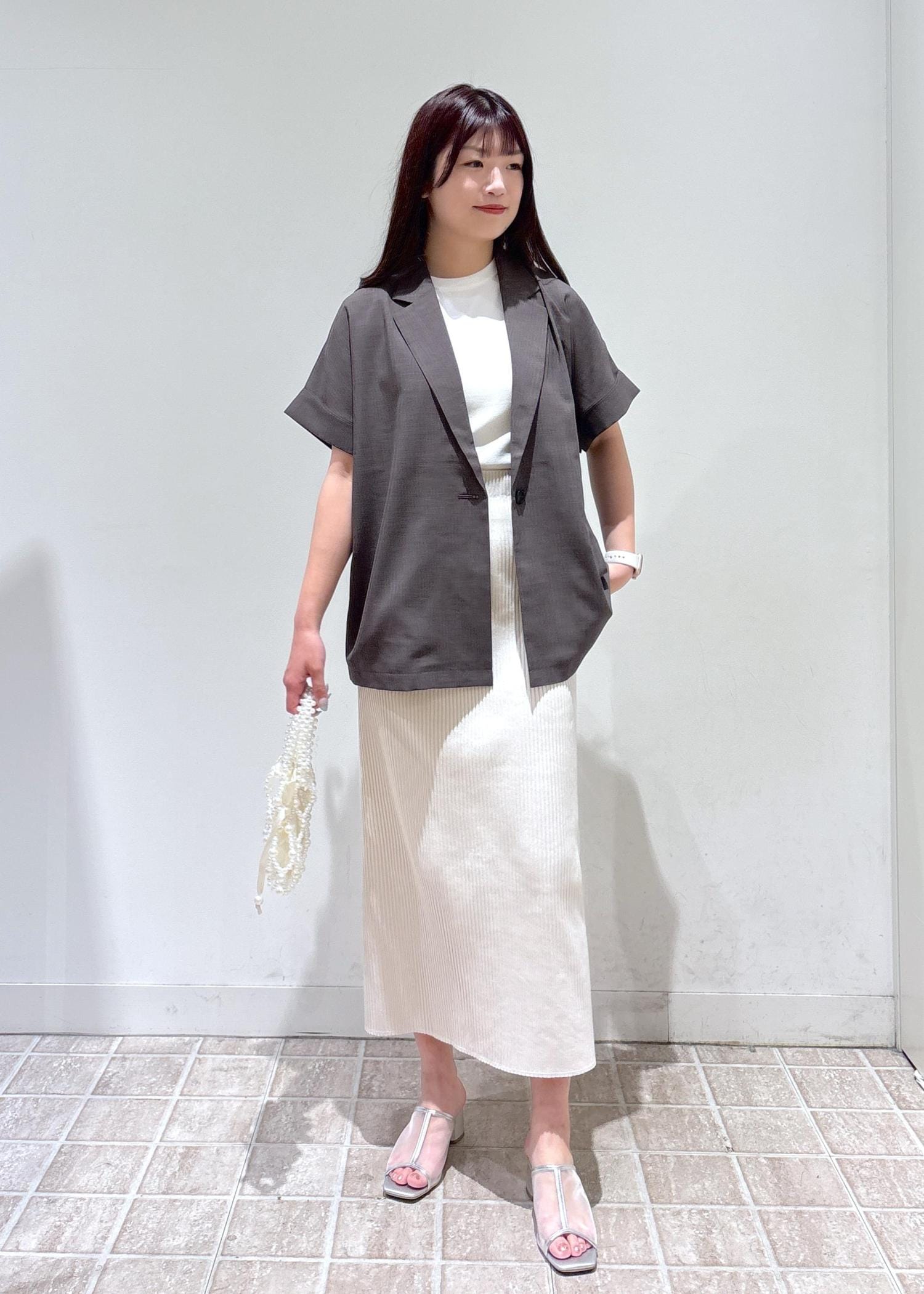 夏でも使いやすい薄手のジャケットを羽織った、夏のきれいめコーデです◎