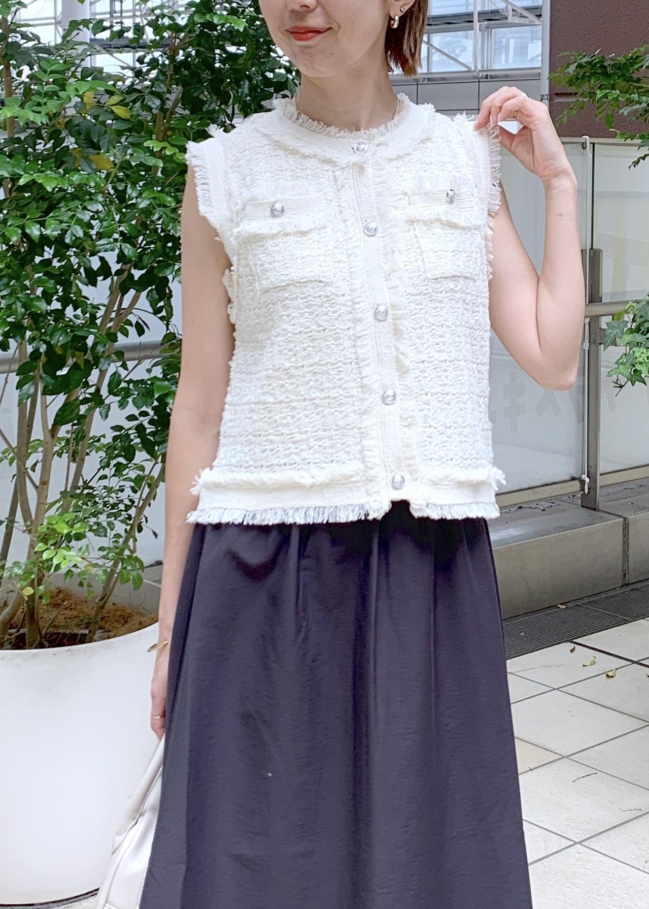 ROPÉ PICNIC【WEB限定カラー】【サマー・ツイード】着丈が選べるジレベスト/スリーブレスカーディガンキナリ / 38¥4,994レビュー38サイズ(着丈の短い方)着用