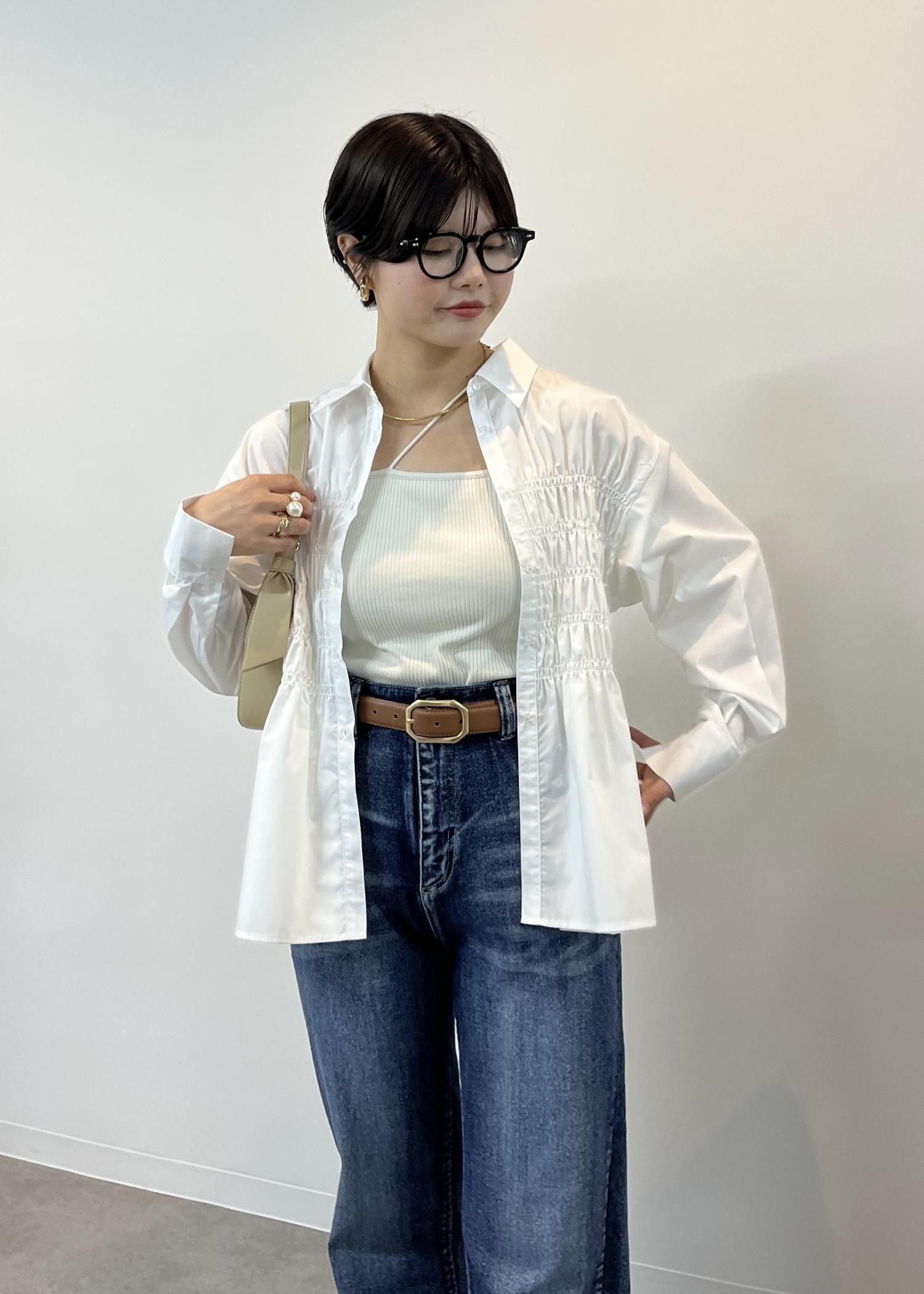 ROPÉ PICNIC【WEB限定】【emur/エミュール】シャーリングシャツオフホワイト / 38¥6,996レビュー体のラインを拾わないややゆとりのあるシルエット。