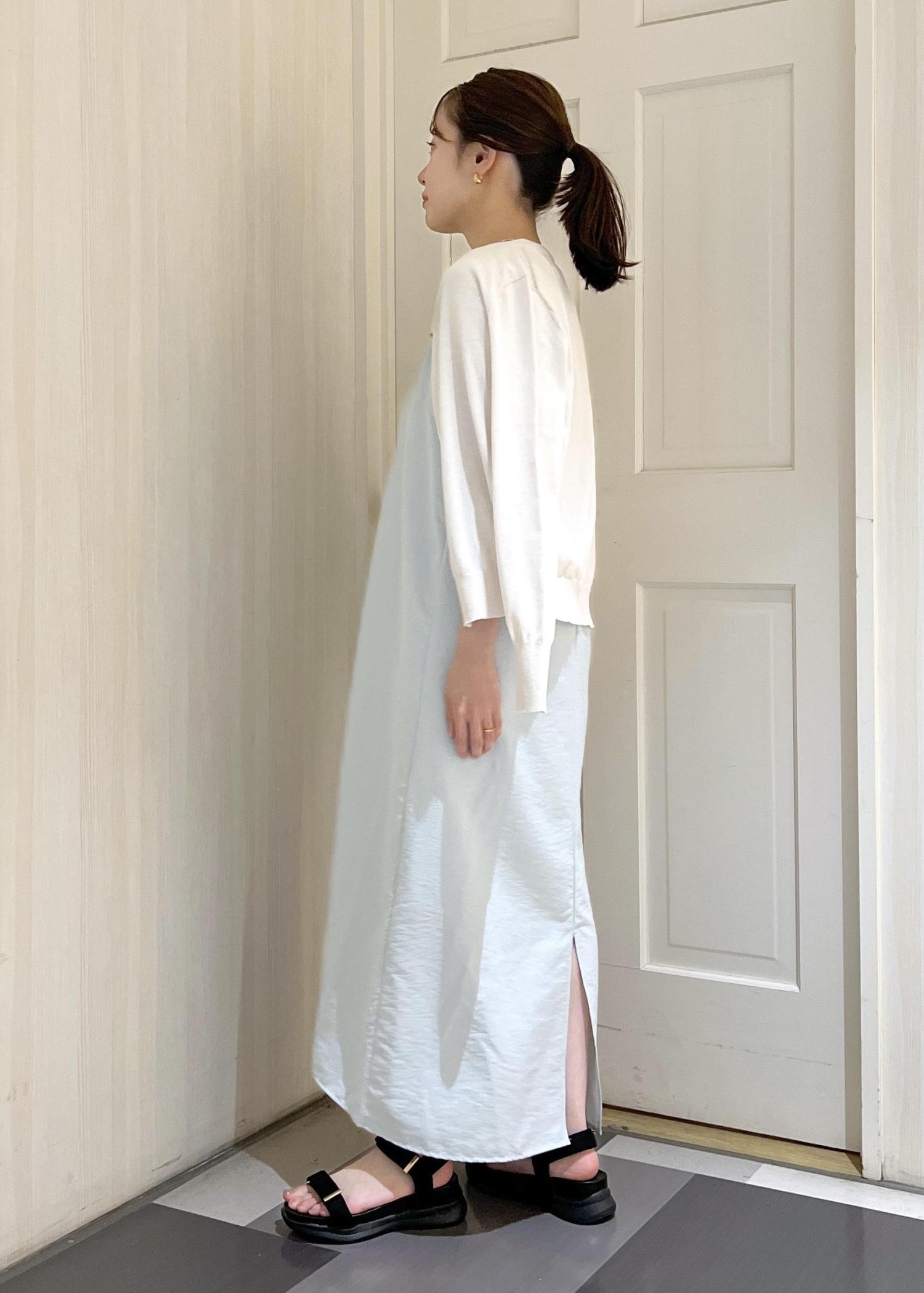 タンクトップで肌見せしたり、Tシャツでカジュアルにしたりと、様々なインナーで楽しめます。 -