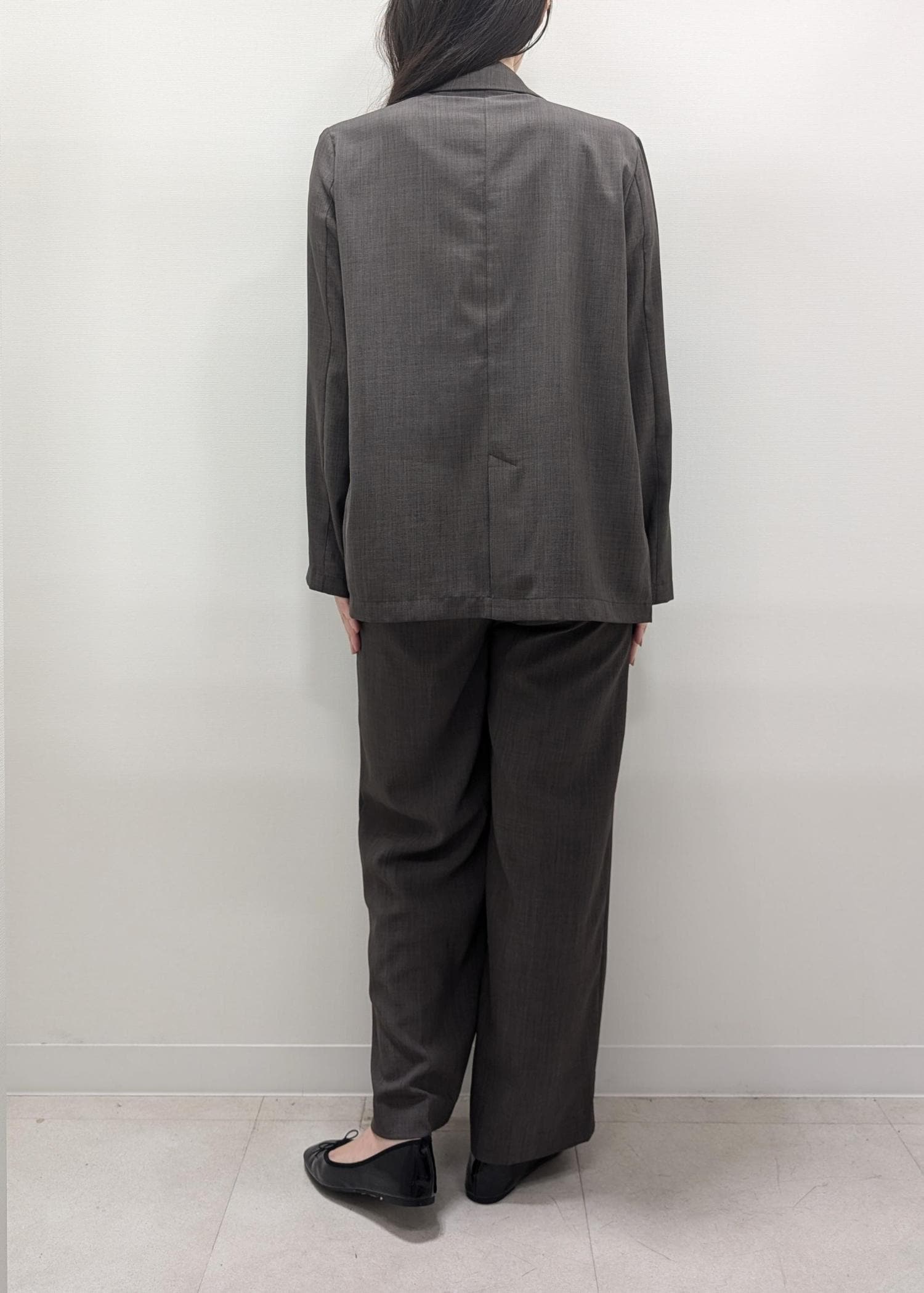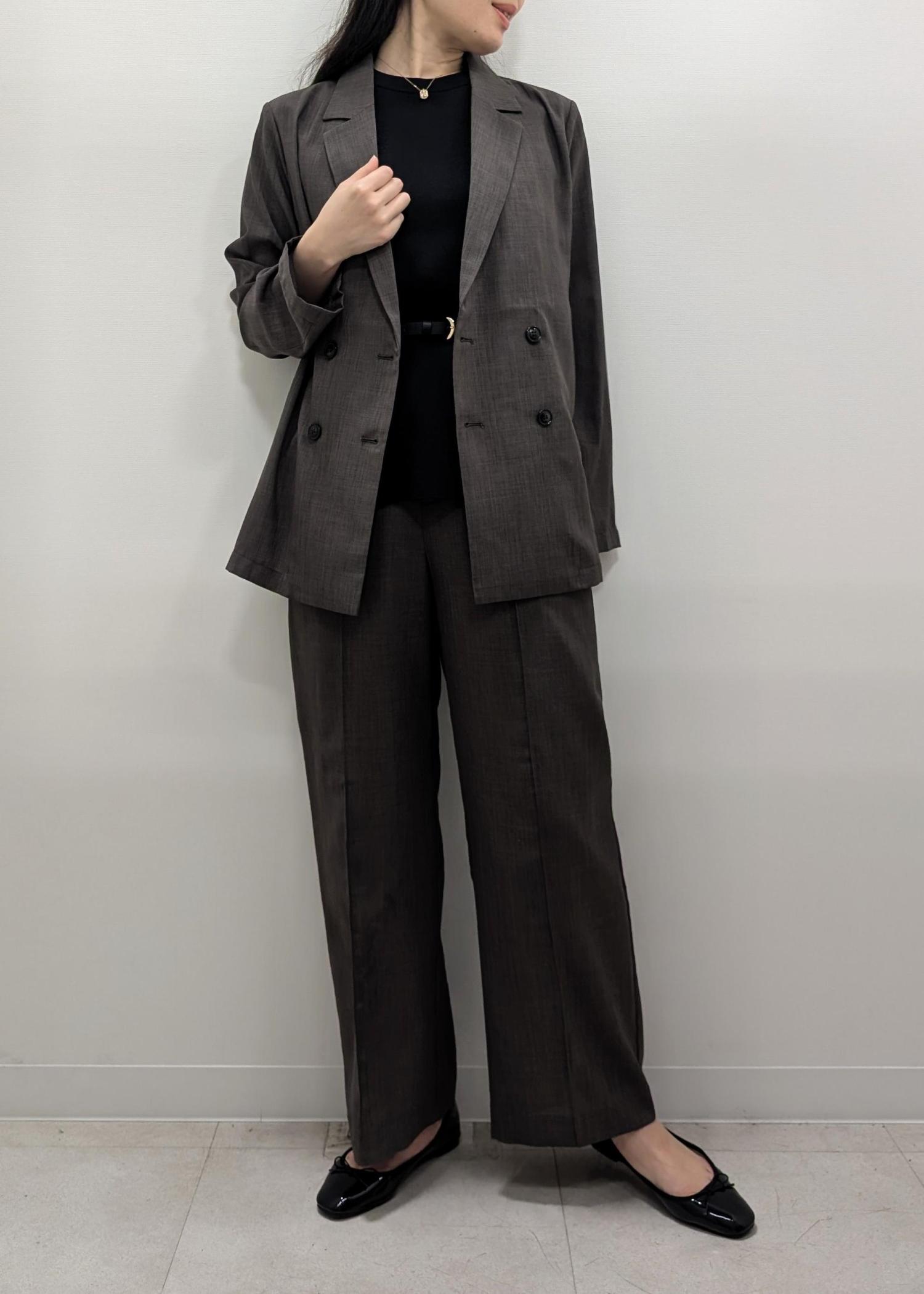 セットアップできちんと感があるのでお仕事は勿論、ジャケットを脱ぐとノースリーブで程よい女らしさがあるのでデートにもおすすめのコーディネートです(^.^)