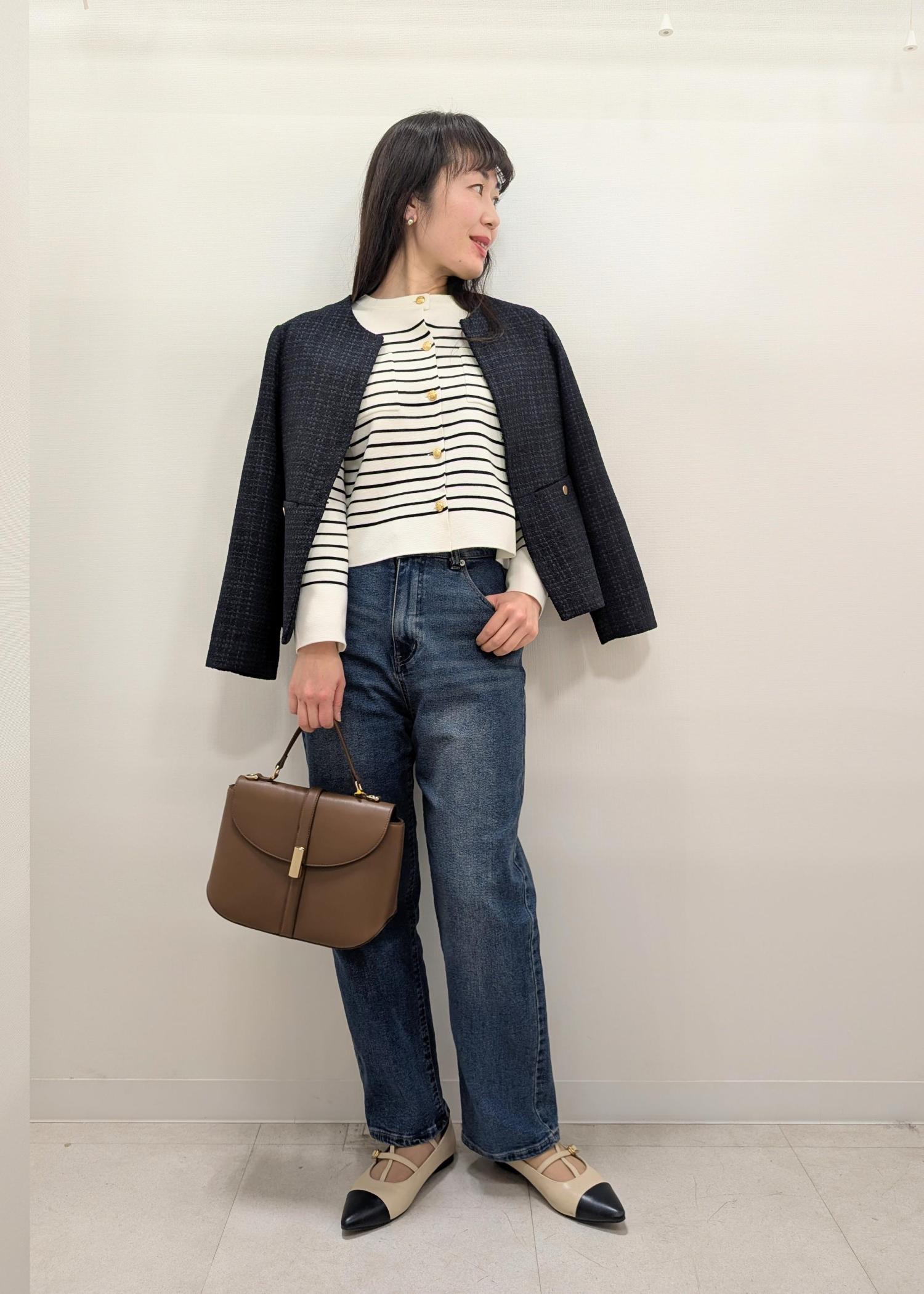 ボトムはハリがあるワイドパンツなどよりは落ち感のある(広がらない)生地のボトムがおすすめです(^.^) -
