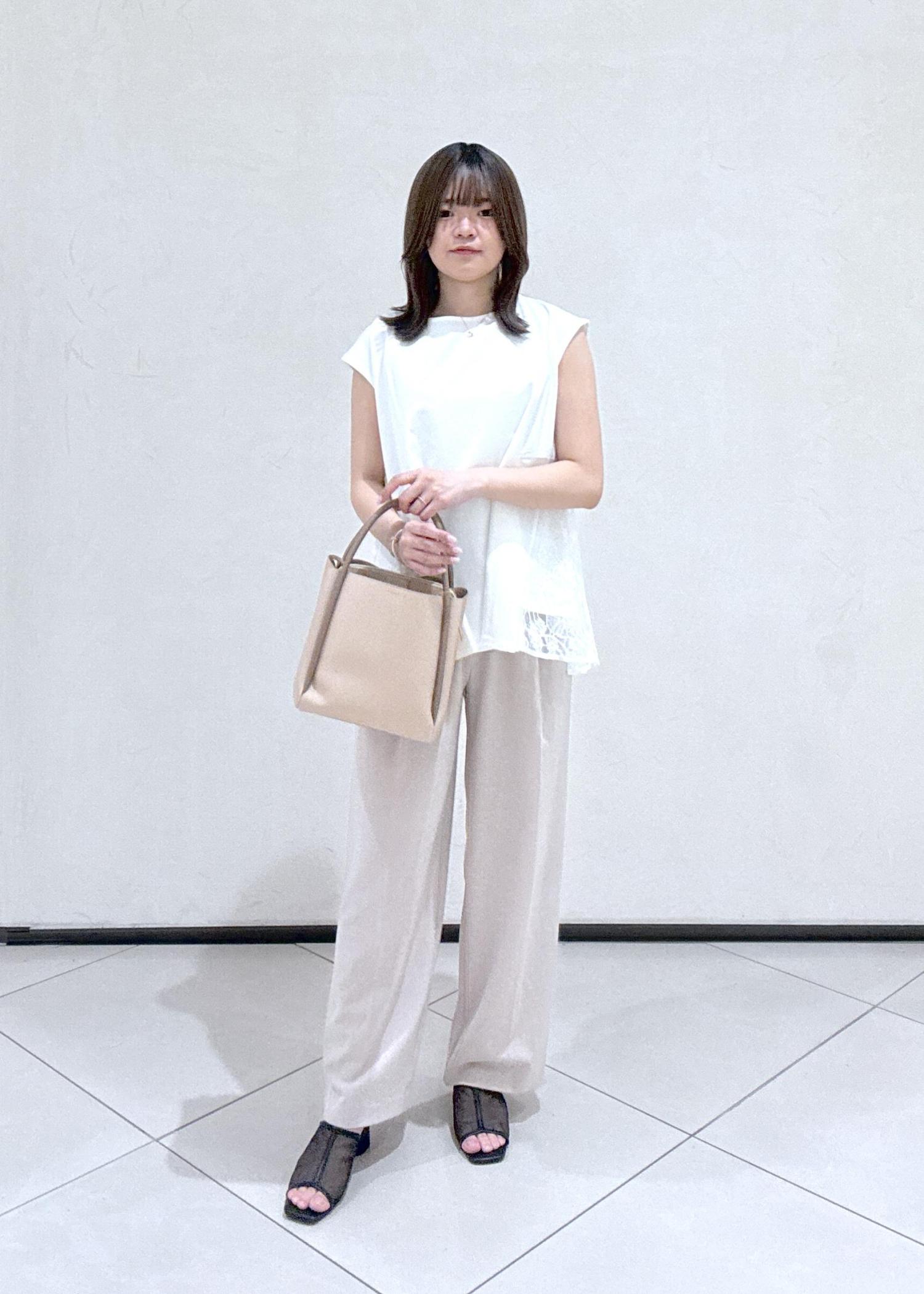 トップスは背中がドッキングレースなので、シンプルすぎず女性らしさも取り入れられます!