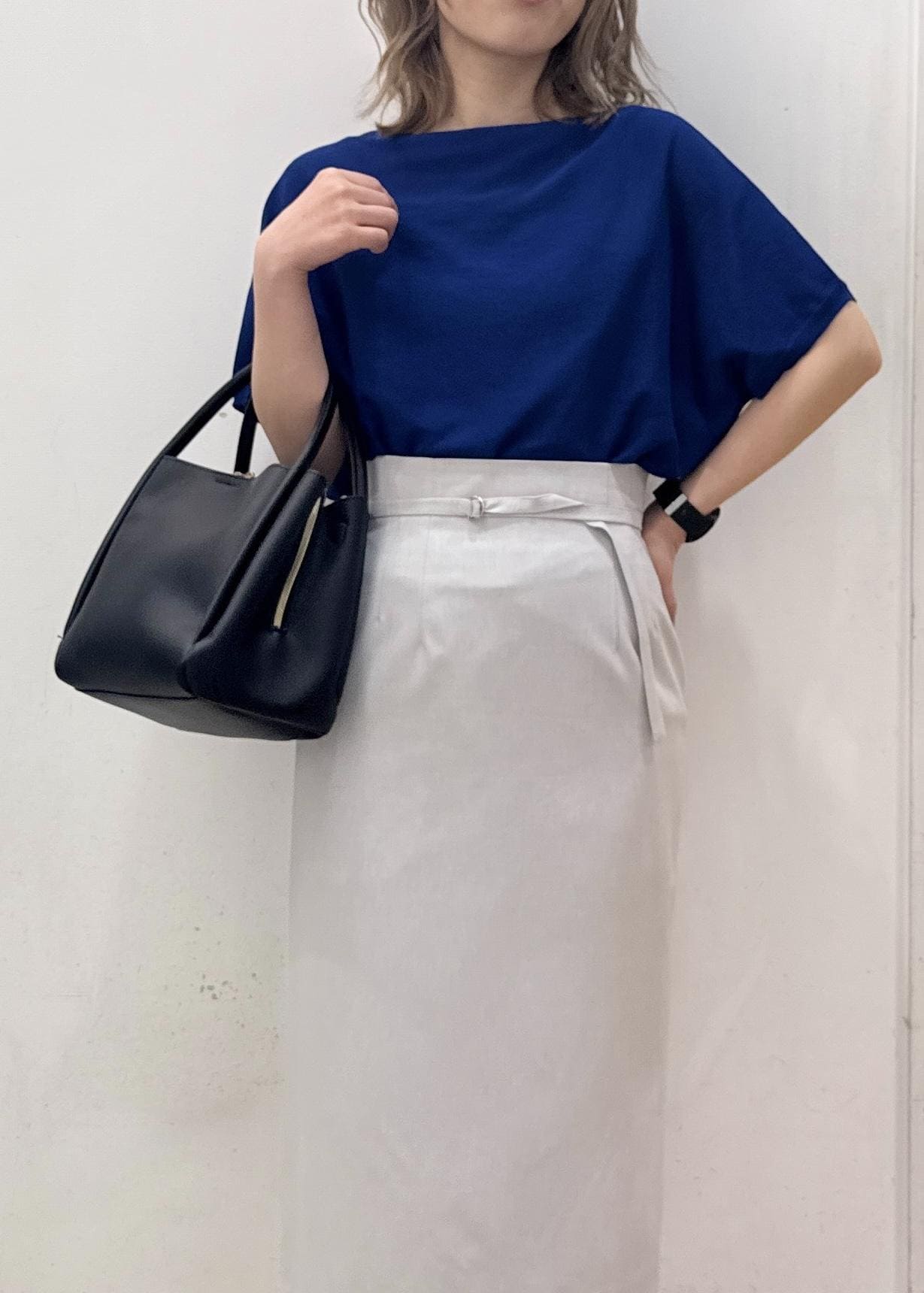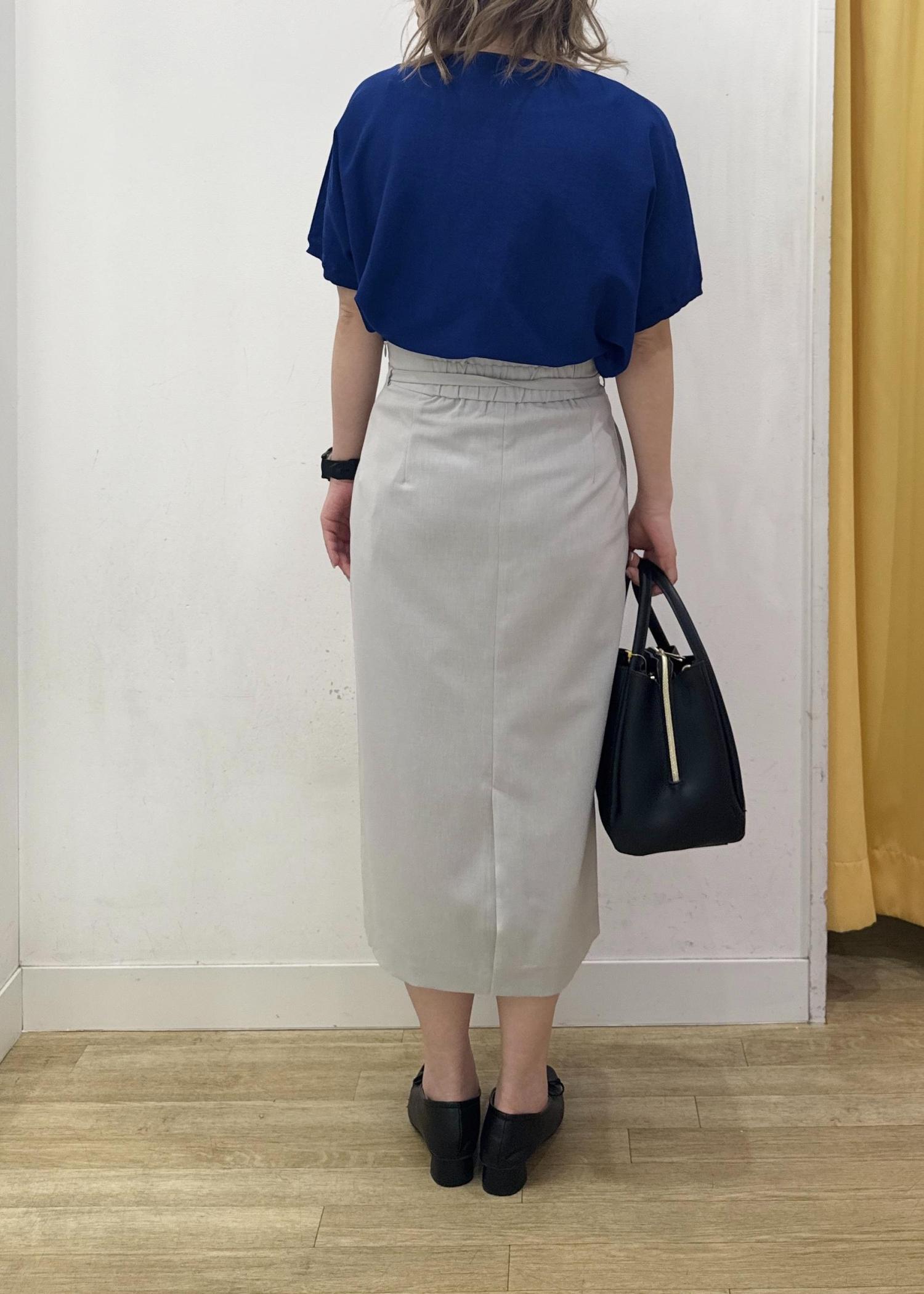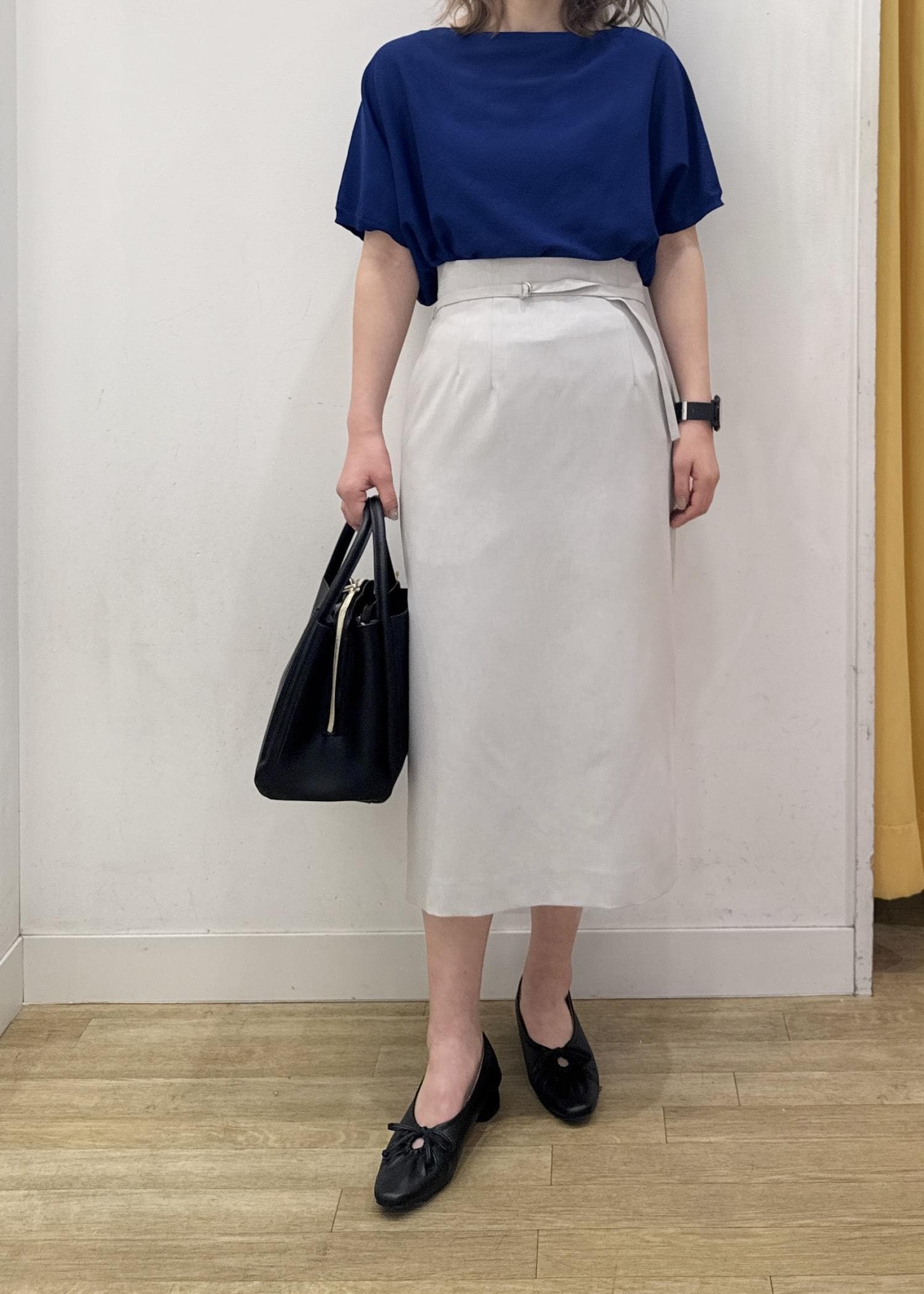 スッキリとキレイなシルエットのアイラインスカートに、ゆったりシルエットのニットトップスを合わせてメリハリのあるキレイ見えコーディネートに☺︎