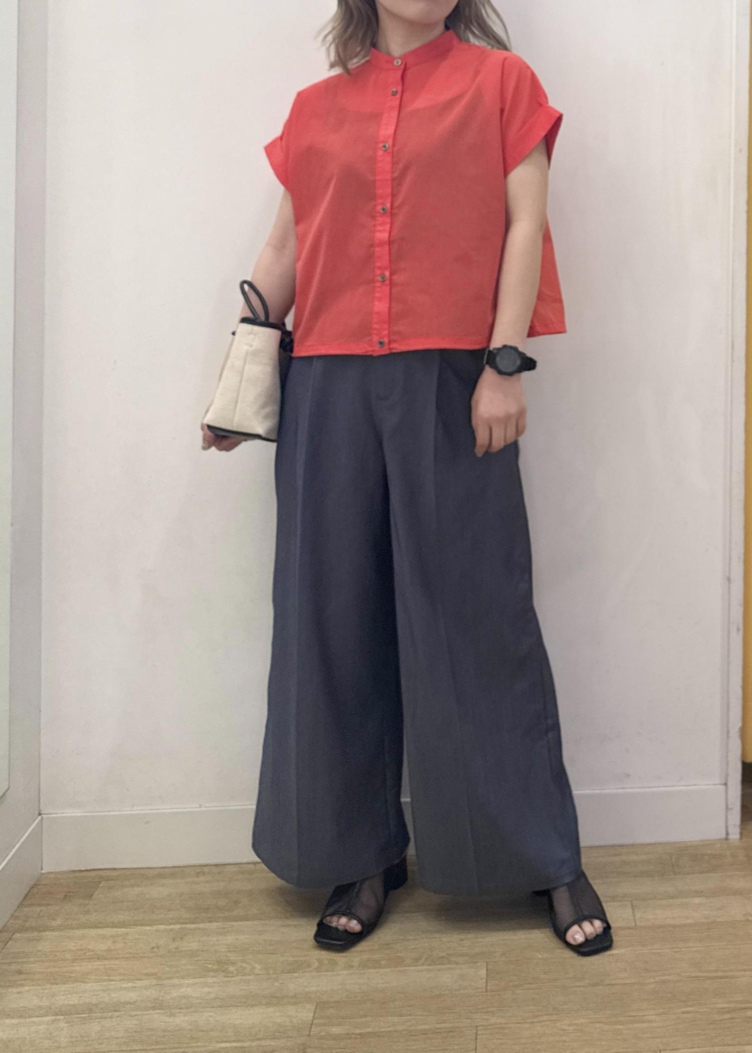 薄手の涼しげな素材感と肌ばなれするシルエットが暑い季節にもオススメです。 -