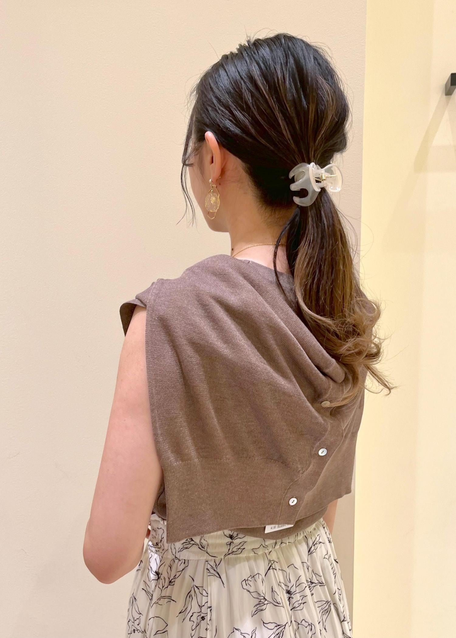セットアップでカーディガンの展開もあるので、アンサンブルで合わせるのもオススメ。