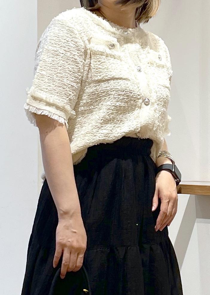 ROPÉ PICNIC【サマー・ツイード】ハーフスリーブカーディガンキナリ / 38¥5,489レビューとってもゴージャスな半袖ツイードカーディガンです。素材は地厚さは無く、柔らかく、着心地抜群です。羽織りとしてもトップスとしても着用して頂けます○