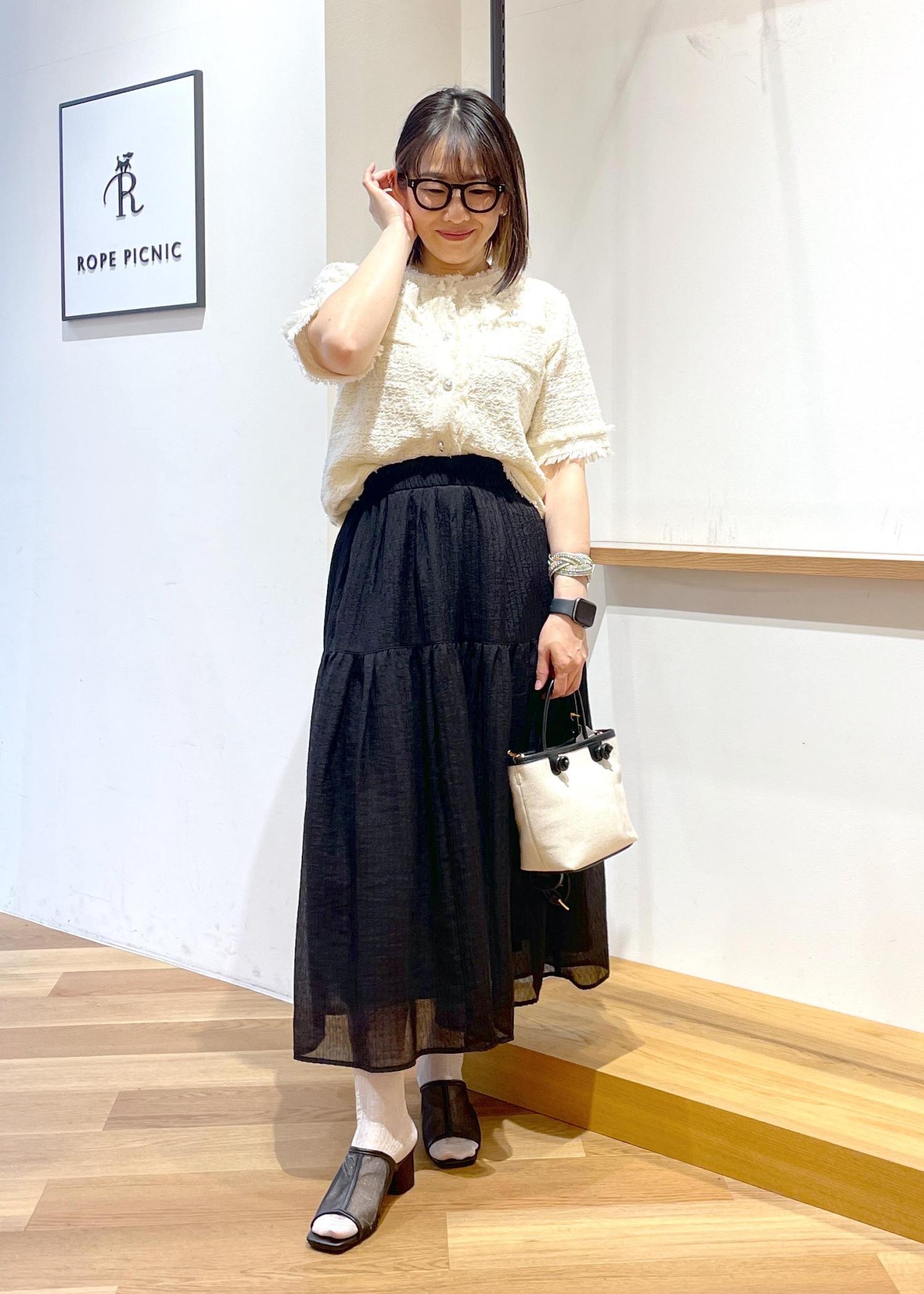 ROPÉ PICNICシアーティアードスカートブラック / 38¥5,995レビュー透け感のあるシアー素材のティアードスカートです。ふんわり軽い着心地です○