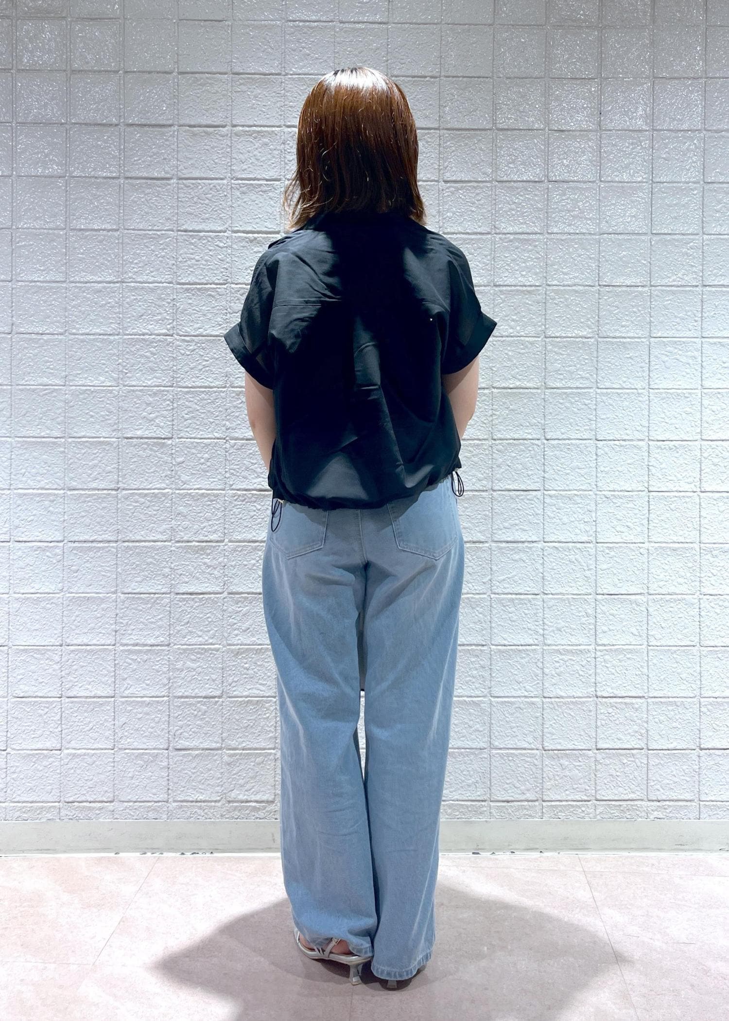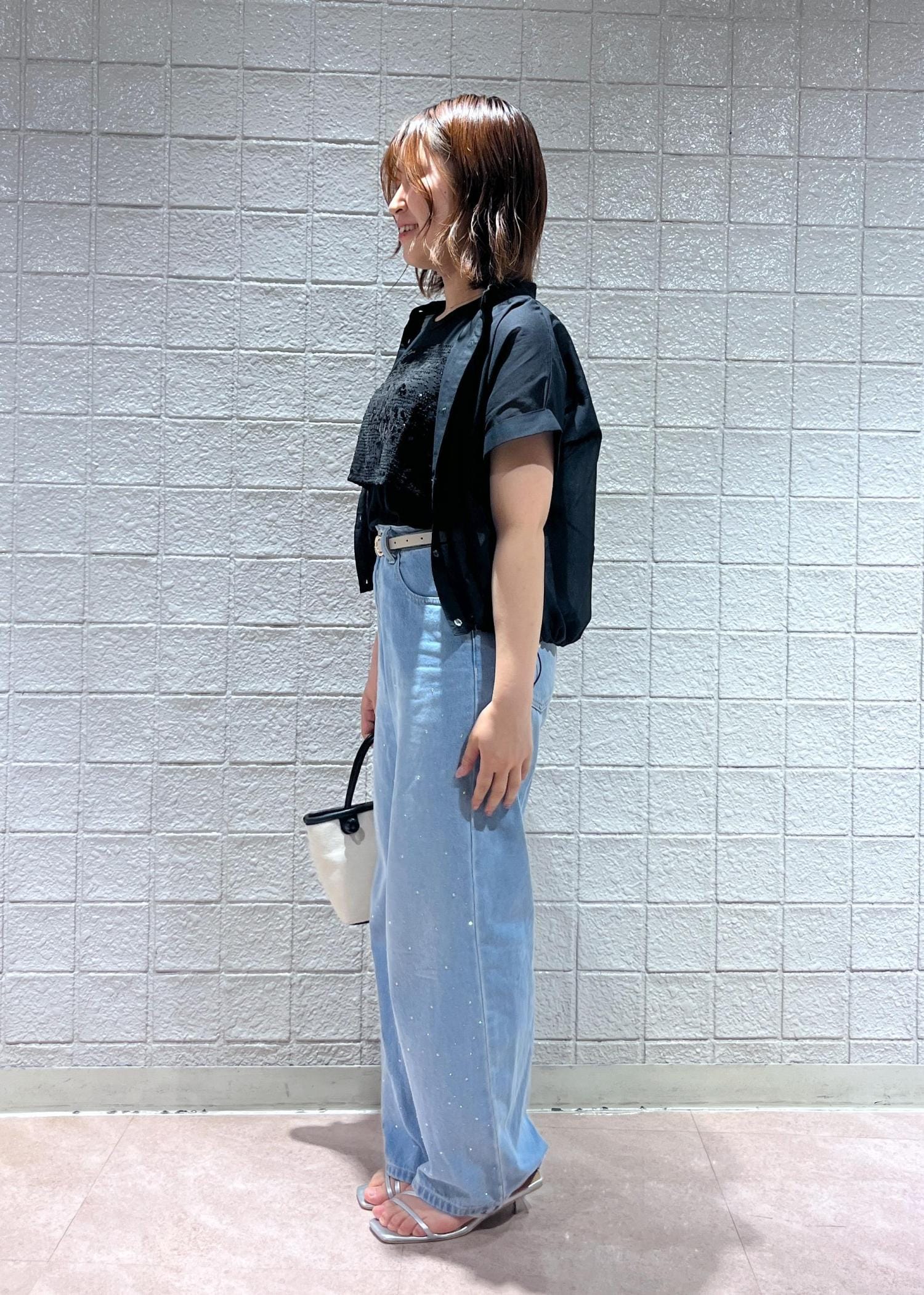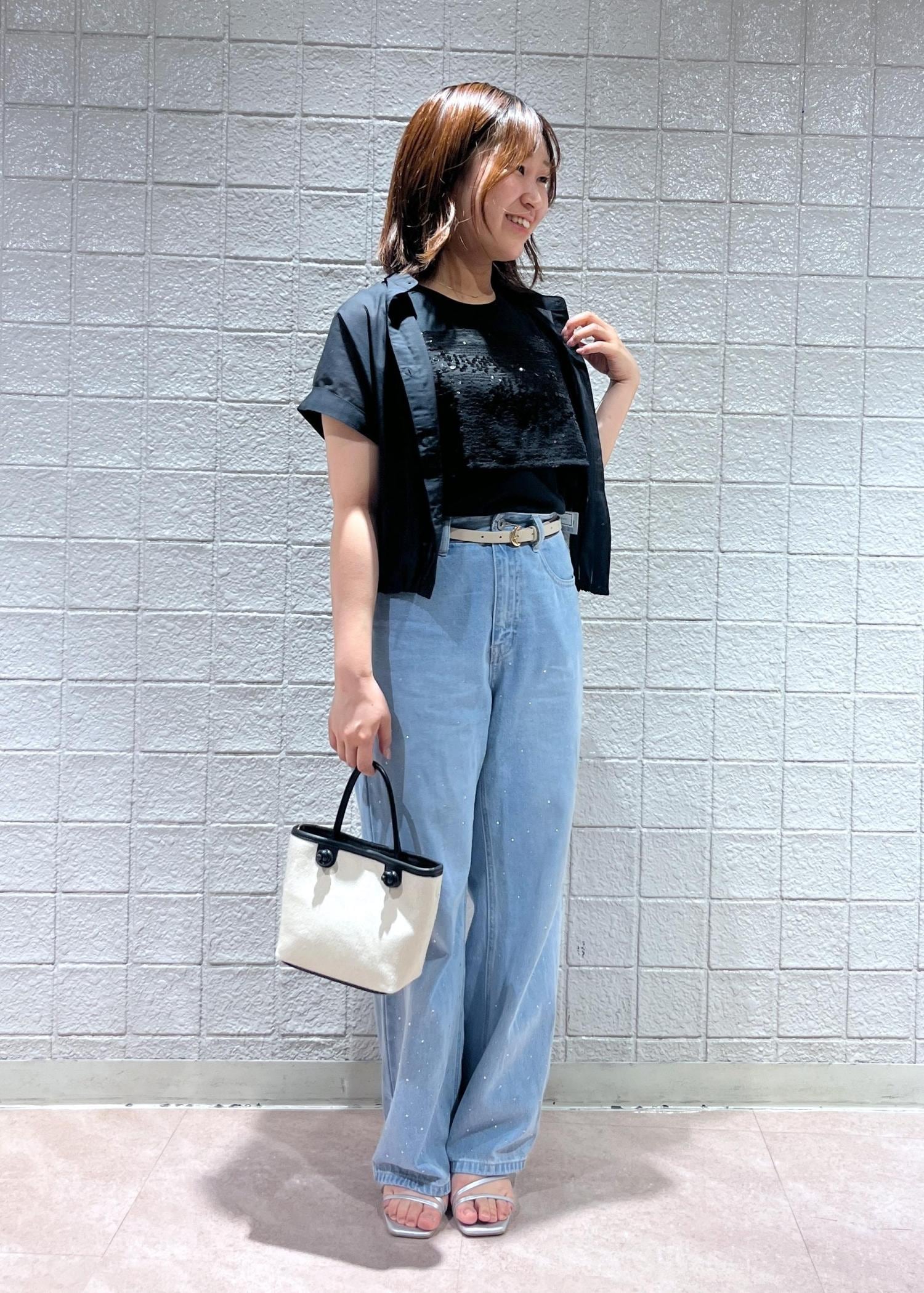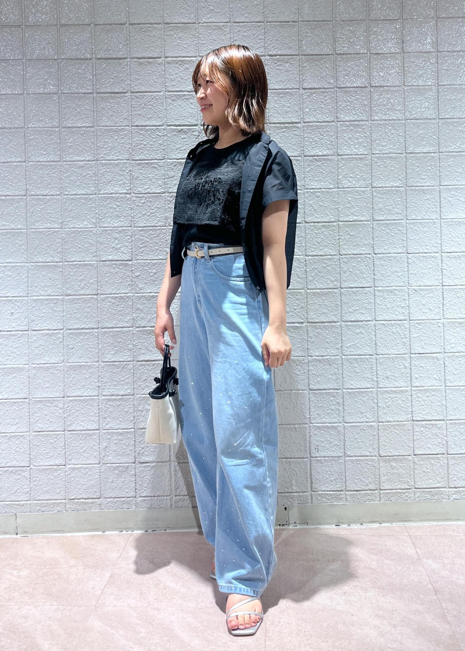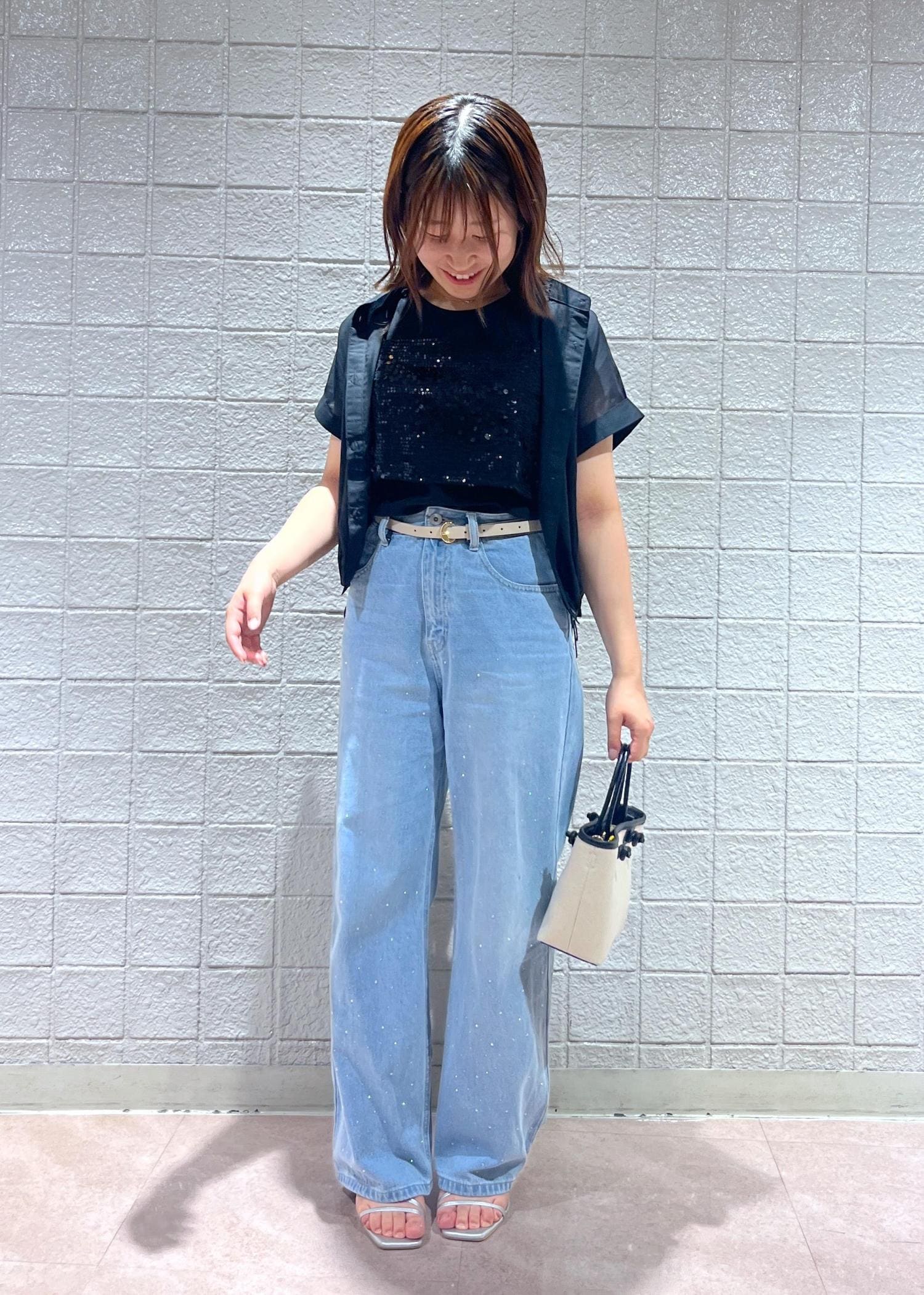 淡いカラーのキラキラデニムでカジュアルさプラスしてブラックコーデを涼しげになるようにしてみました〜