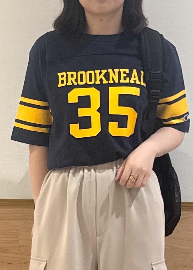 ナンバリングや袖のラインがトレンドのゲームTシャツのようでお洒落です。