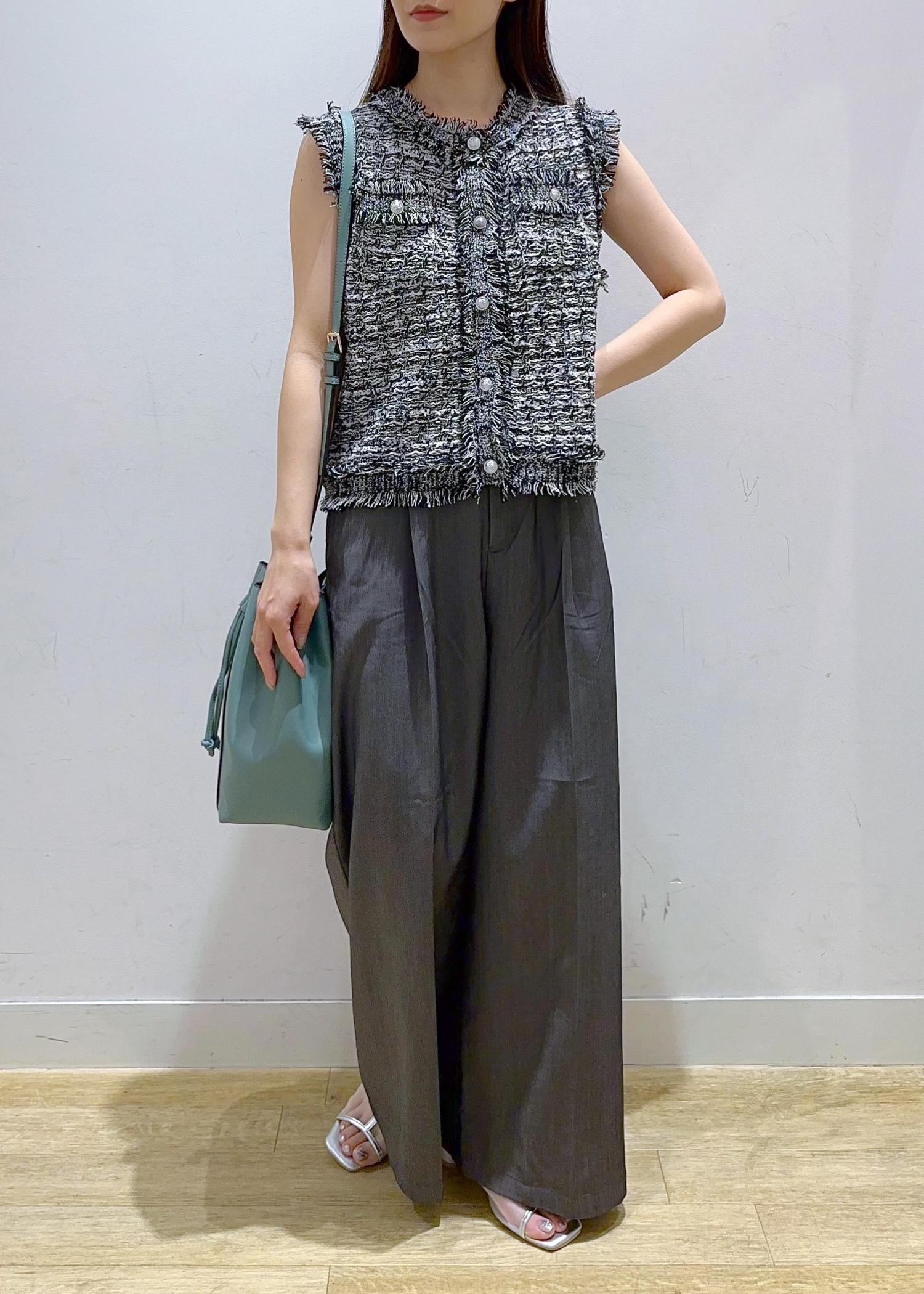 【WEB限定カラー】【サマー・ツイード】着丈が選べるジレベスト/スリーブレスカーディガン
