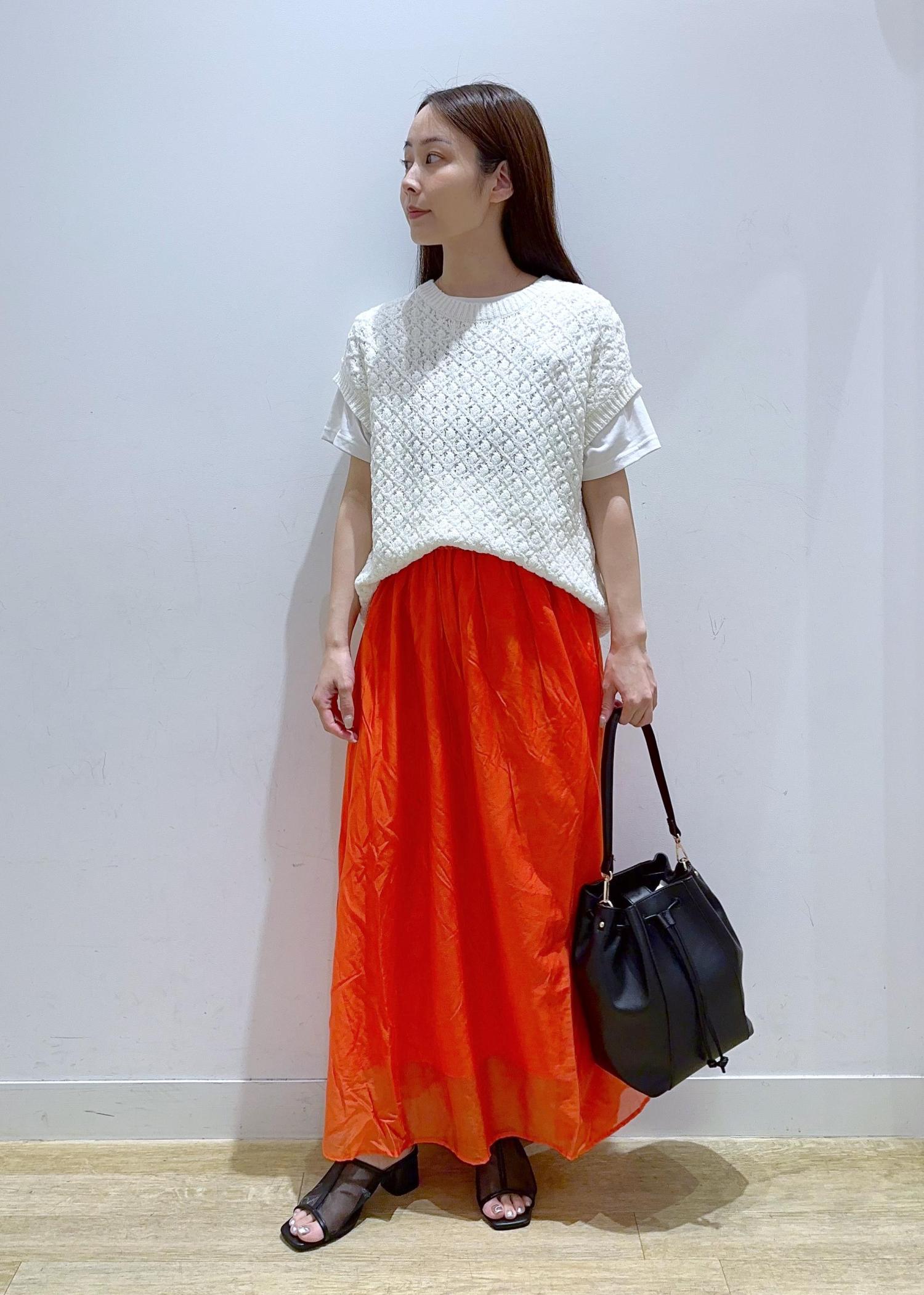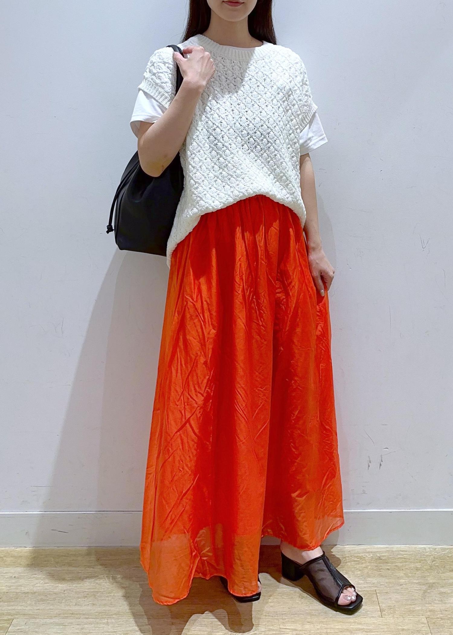 ROPÉ PICNICエアリーシアーギャザーロングスカートオレンジ / 38¥6,490レビューサラッとした薄め素材のスカートです。カラー展開も豊富でパキッとしたカラーも揃っているので夏におすすめ!ウエストゴムなので着脱もしやすくとても可愛いです。
