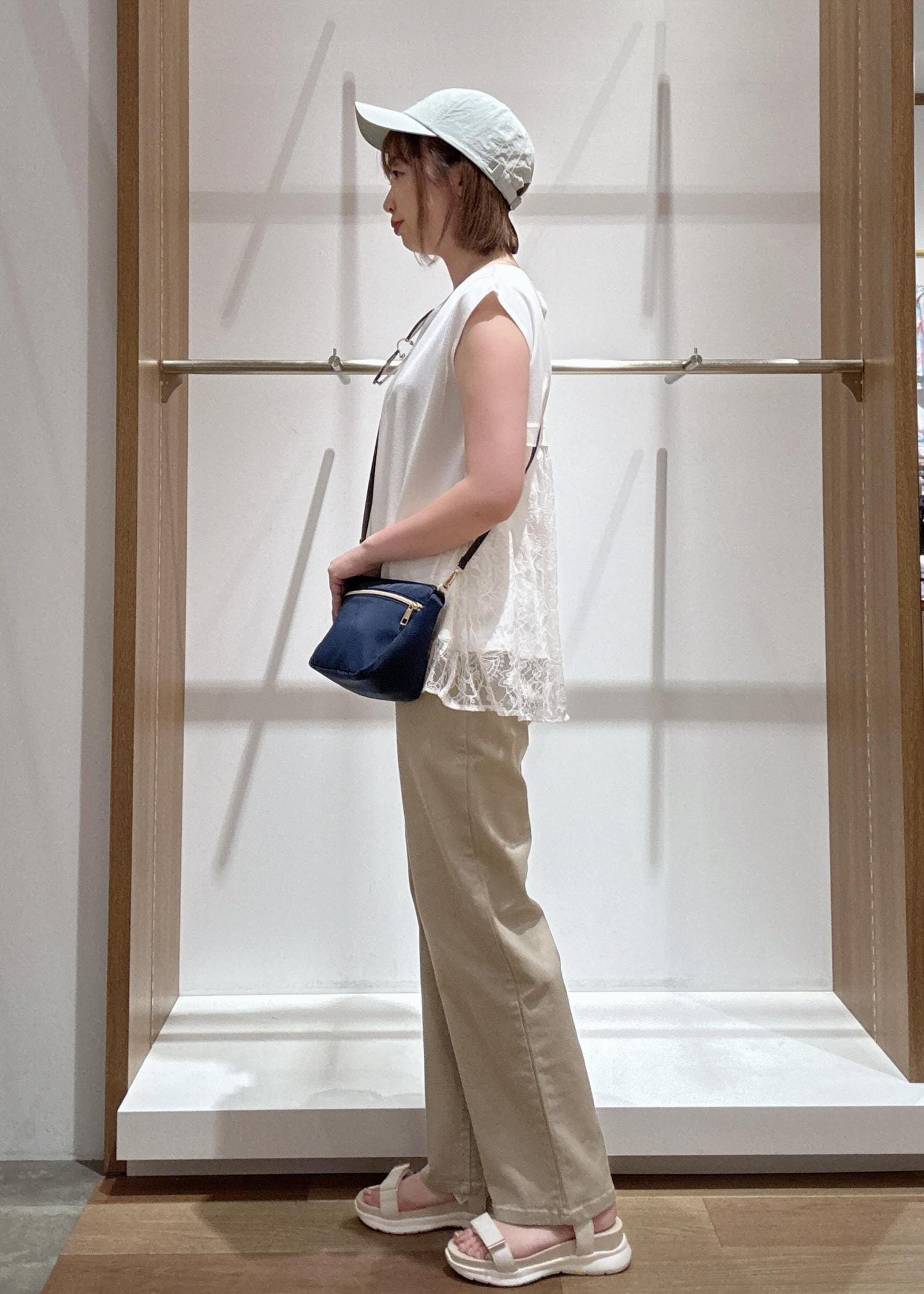 ベージュの色味は大人らしい落ち着いた印象になりながら、チノパンツのようなカジュアルさも感じられます。